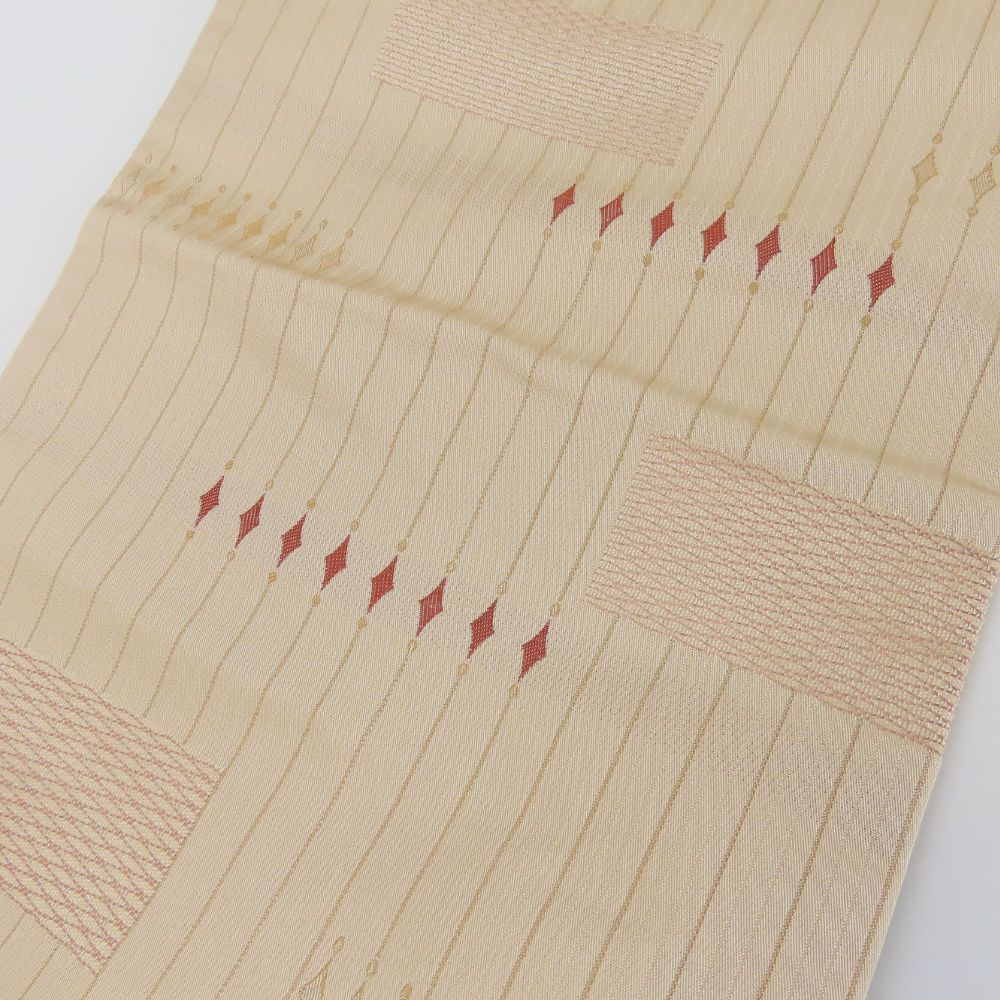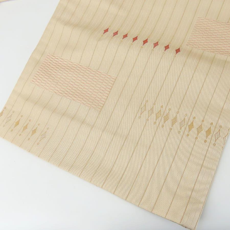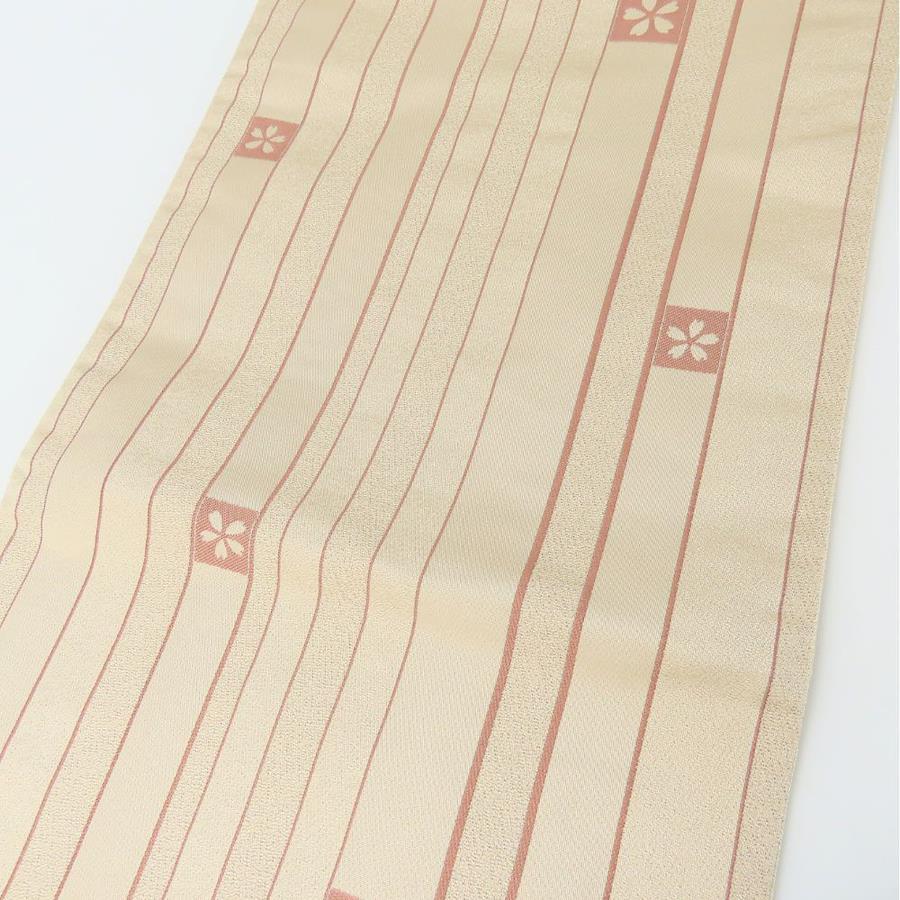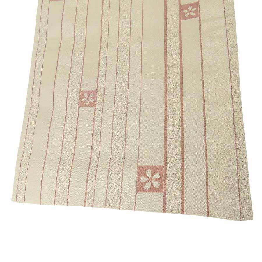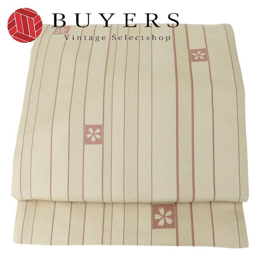 品名【中古】 袋帯 京袋帯 化学繊維 ベージュ 縦縞柄 桜文 フォーマル レディース 女性