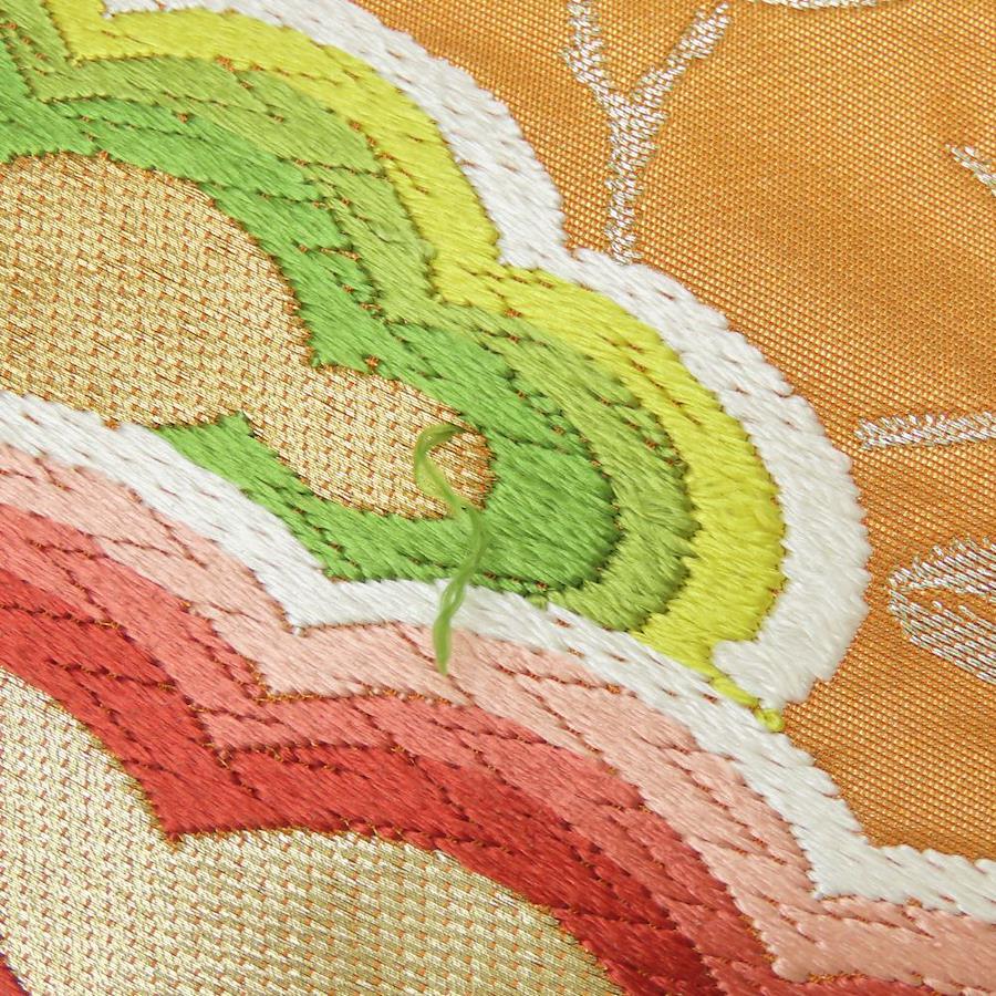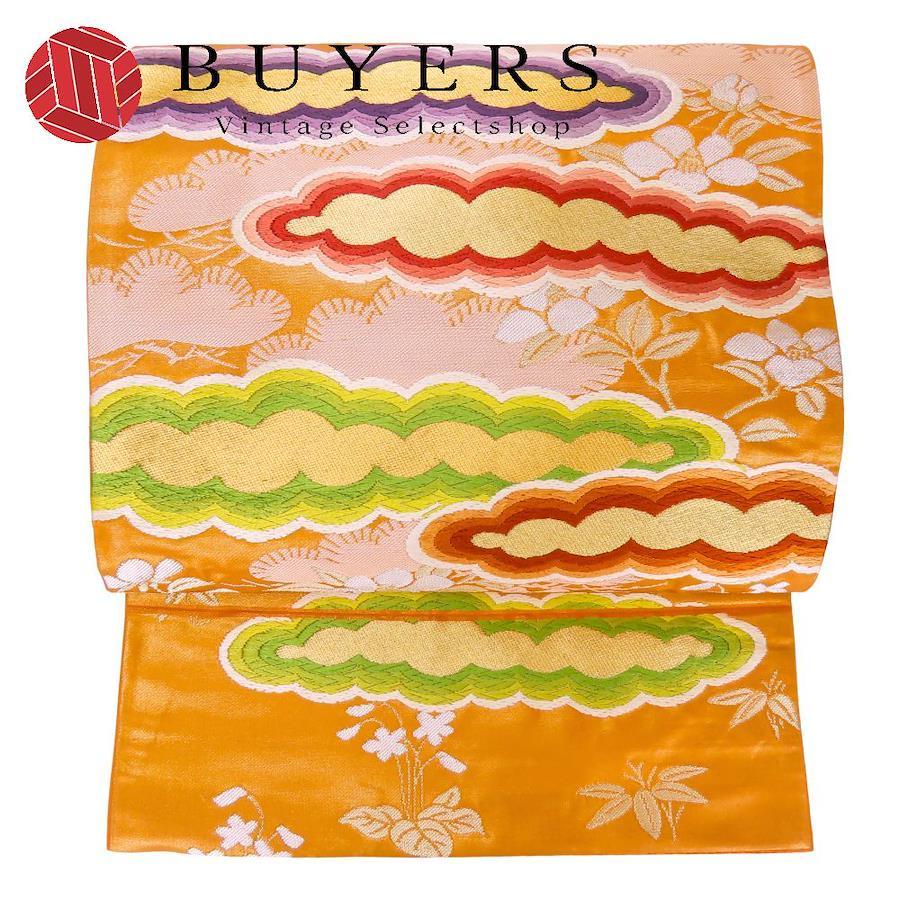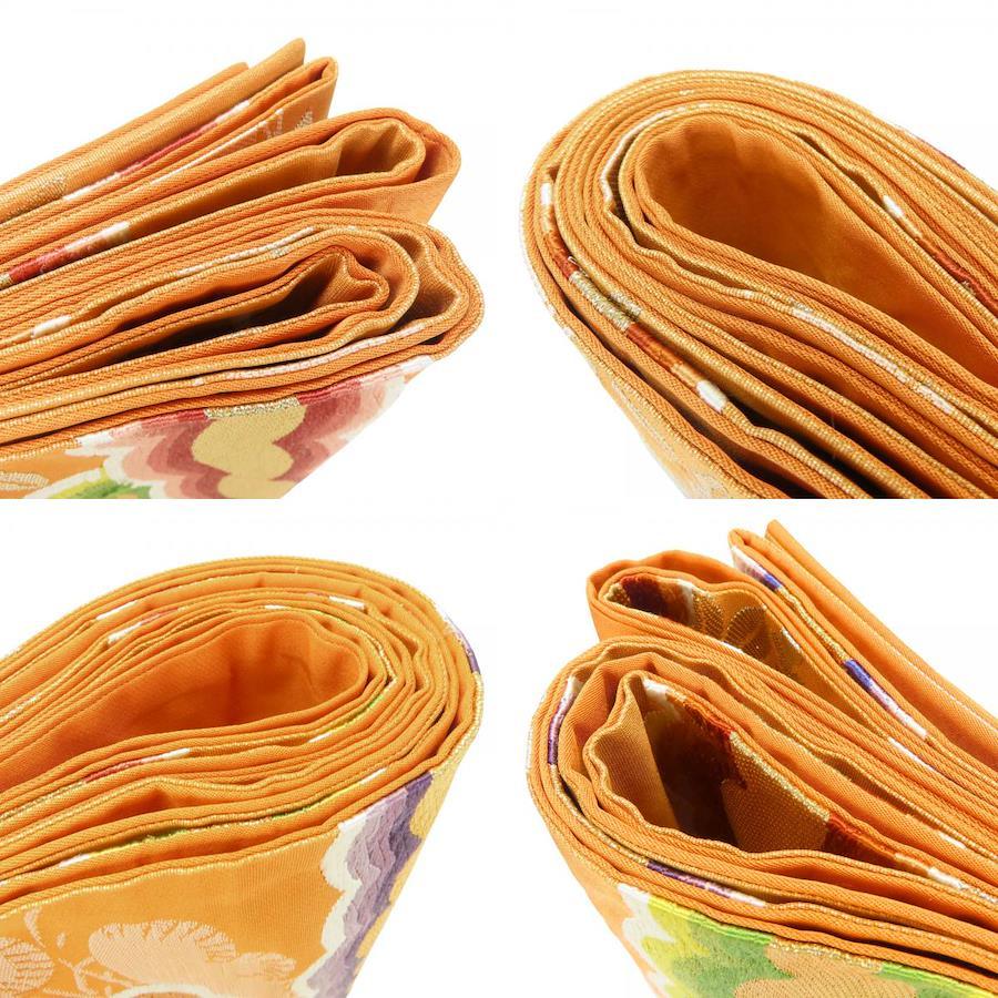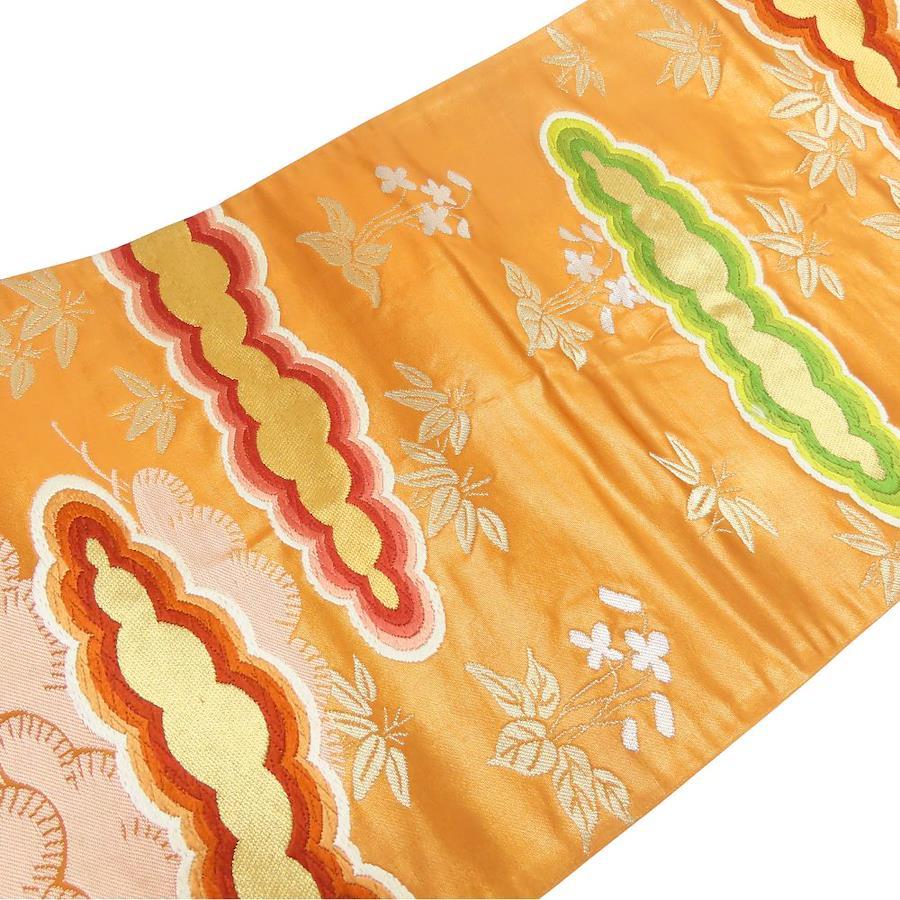 | 品名 | 【中古】 袋帯 光沢あり 正絹(金銀糸除く) オレンジ系 ゴールド シルバー マルチカラー 六通柄 松竹梅 フォーマル レディース 女性 |