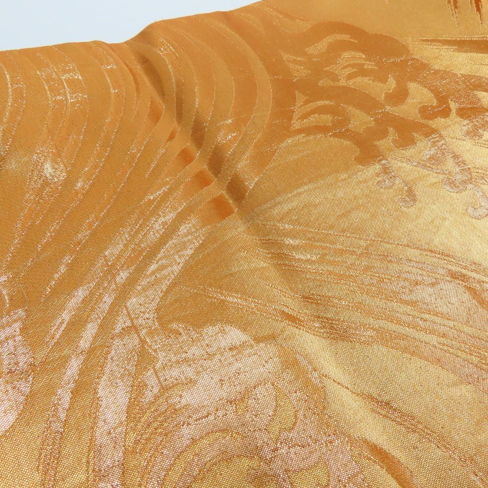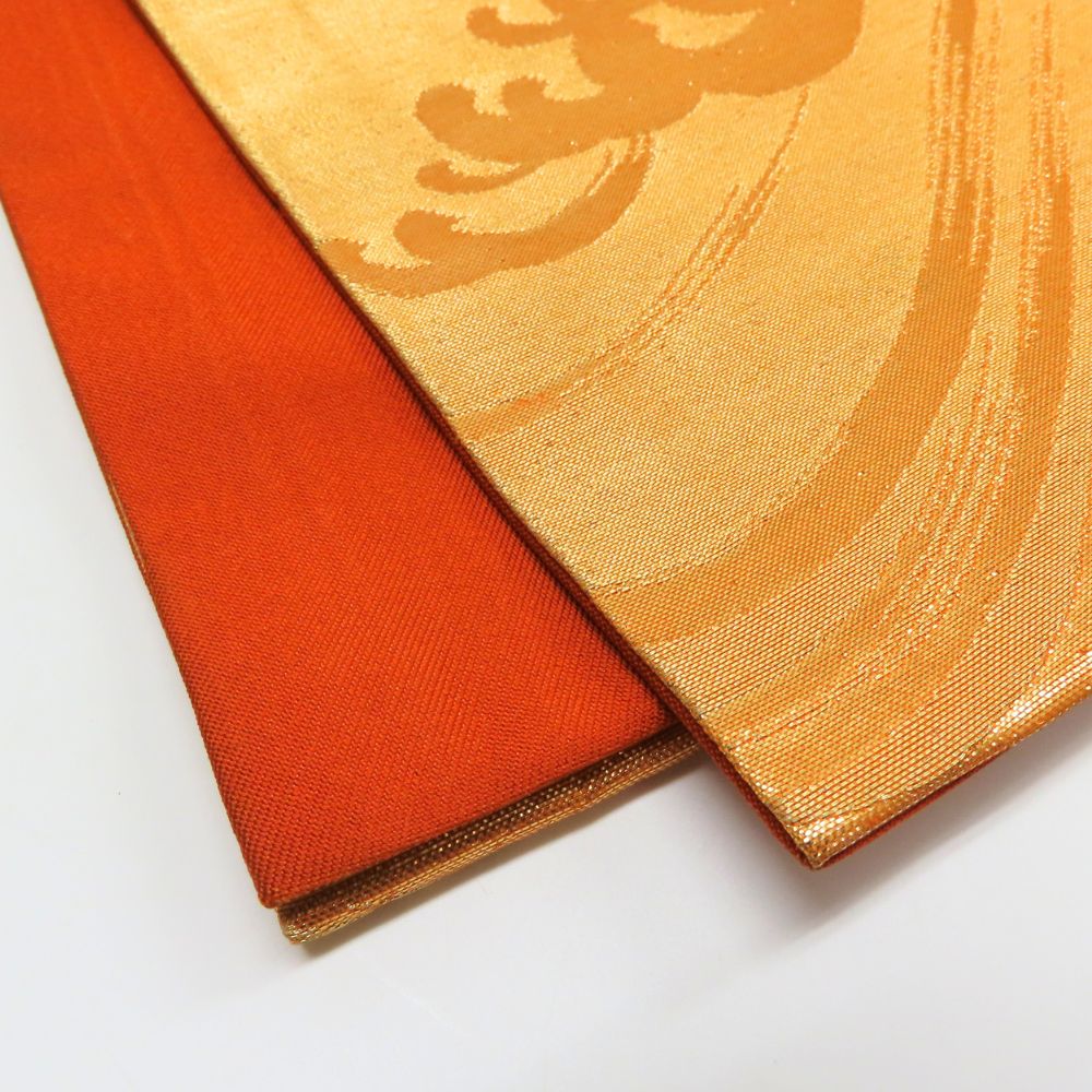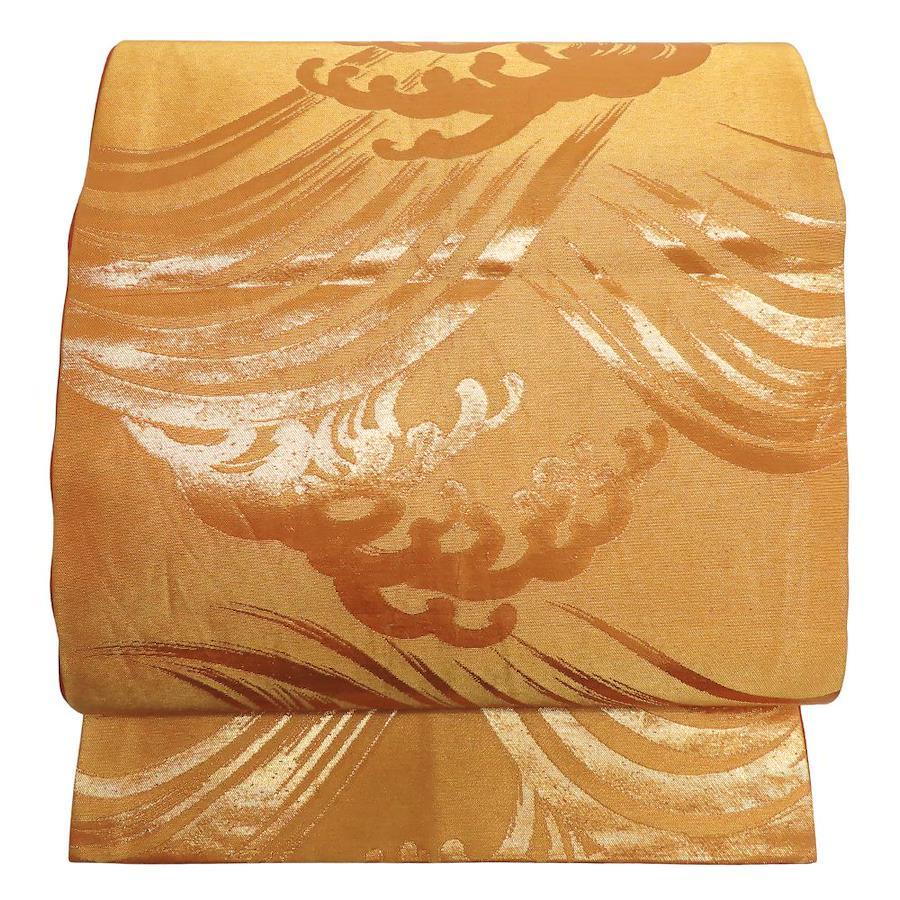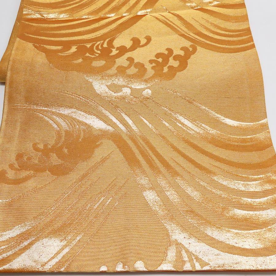 | 品名 | 【中古】 袋帯 全通柄 正絹(金銀糸除く) ゴールド オレンジ系 波文 振袖 礼装 レディース 女性 |