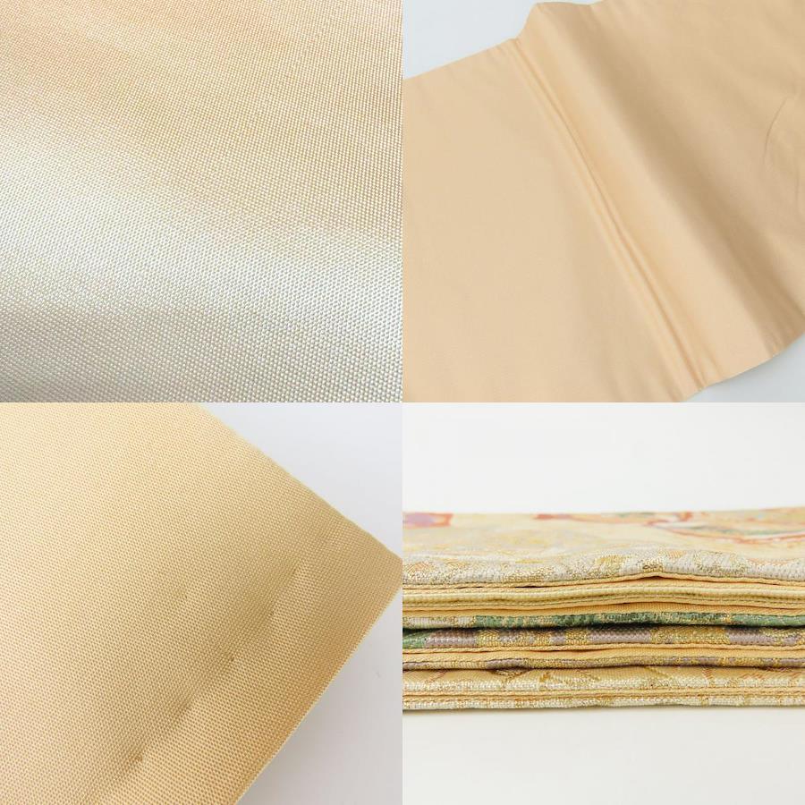 Pre-owned Fukuro Obi (sash), six-pass pattern, auspicious motif, pure silk (excluding gold and silver threads), gold thread, gold-based, multicolor, formal, floral arabesque, traditional Japanese pattern, kimono, for women