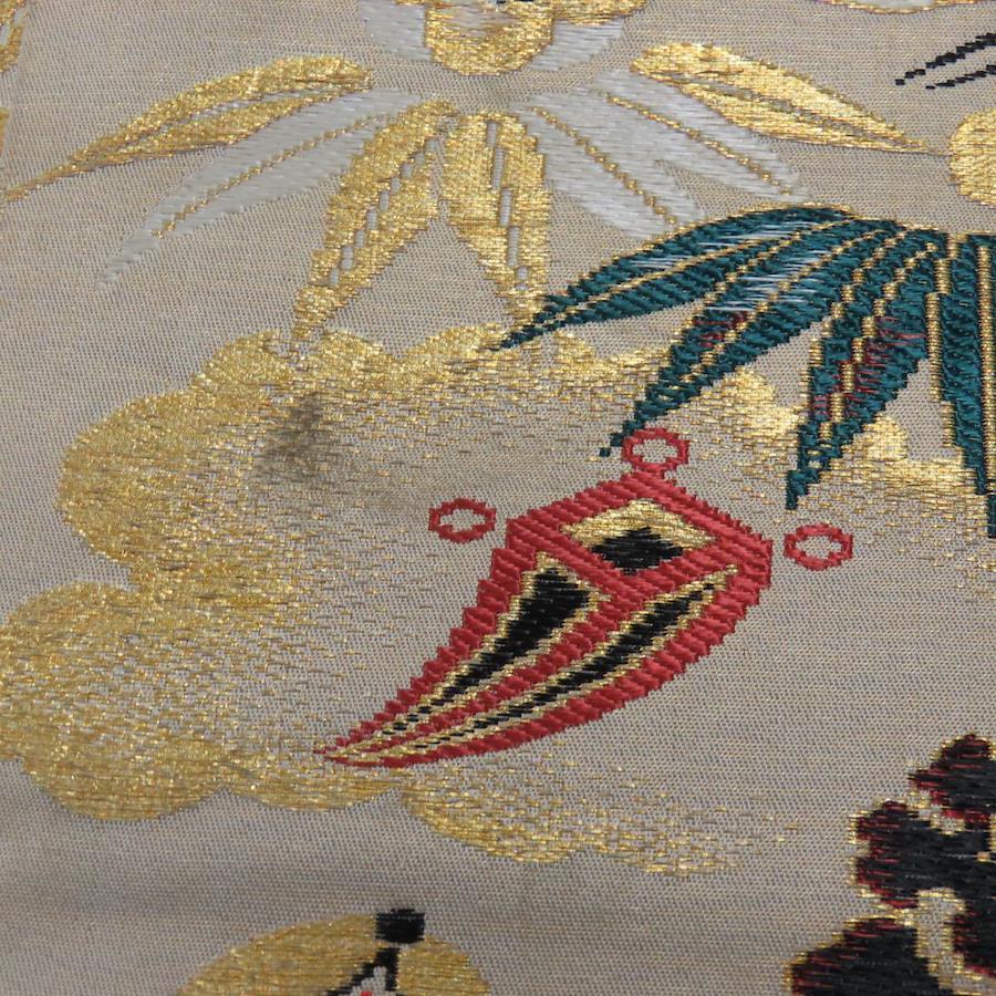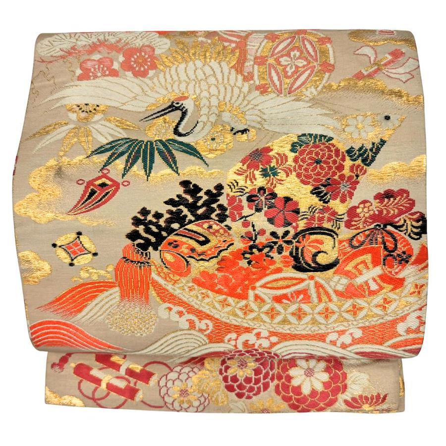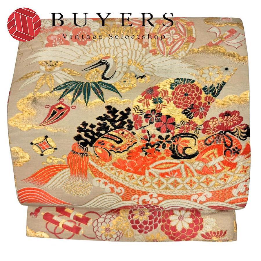 | 品名 | 【中古】 袋帯 吉祥文様 正絹(金銀糸除く) ベージュ マルチカラー ゴールド 丸帯 リバーシブル 全通 レディース 女性 |