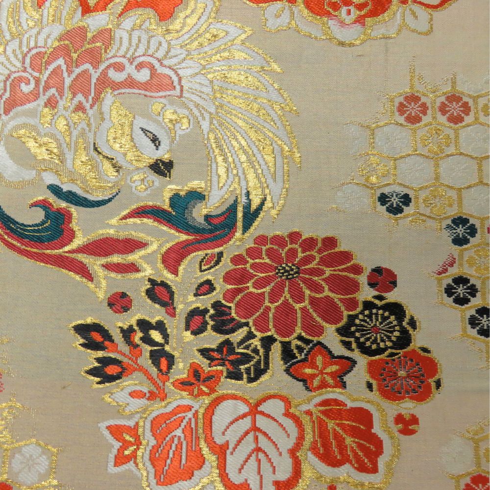 | サイズ | サイズ 全長:約 374cm 幅:約 32cm 帯の柄1:鳳凰と丸花文様 帯の柄2:松竹梅 帯の柄3:鶴と宝尽くし |