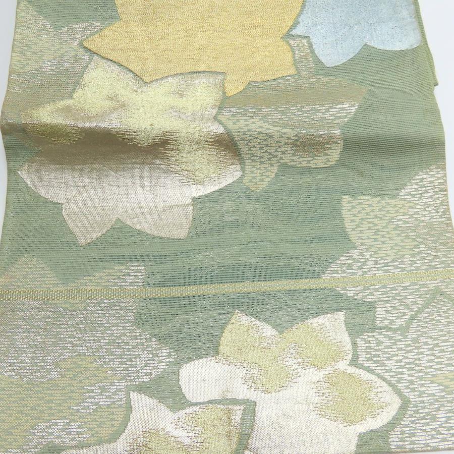 | 品名 | 【中古】 袋帯 正絹(金銀糸除く) カーキ系 ゴールド くすみカラー 六通柄 絽 涼しげ レディース 女性 |
