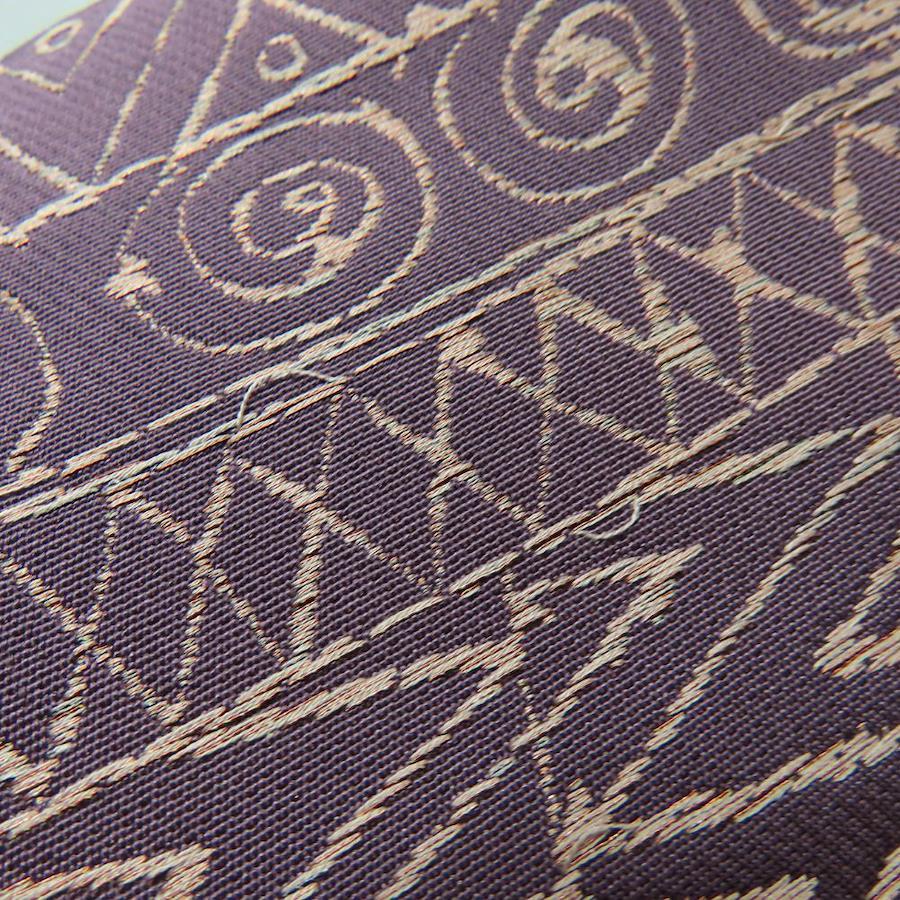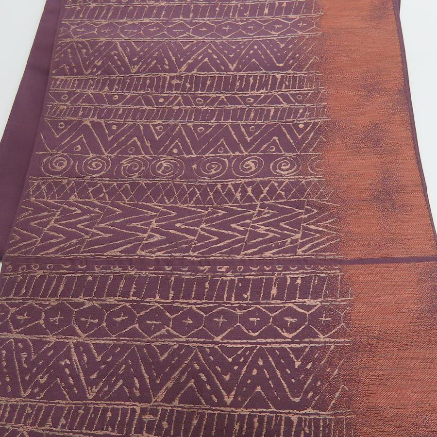 | 品名 | 【中古】 袋帯 正絹(金銀糸除く) パープル系 ピンク 赤茶色 洒落帯 幾何学模様 六通柄 レディース 女性 |