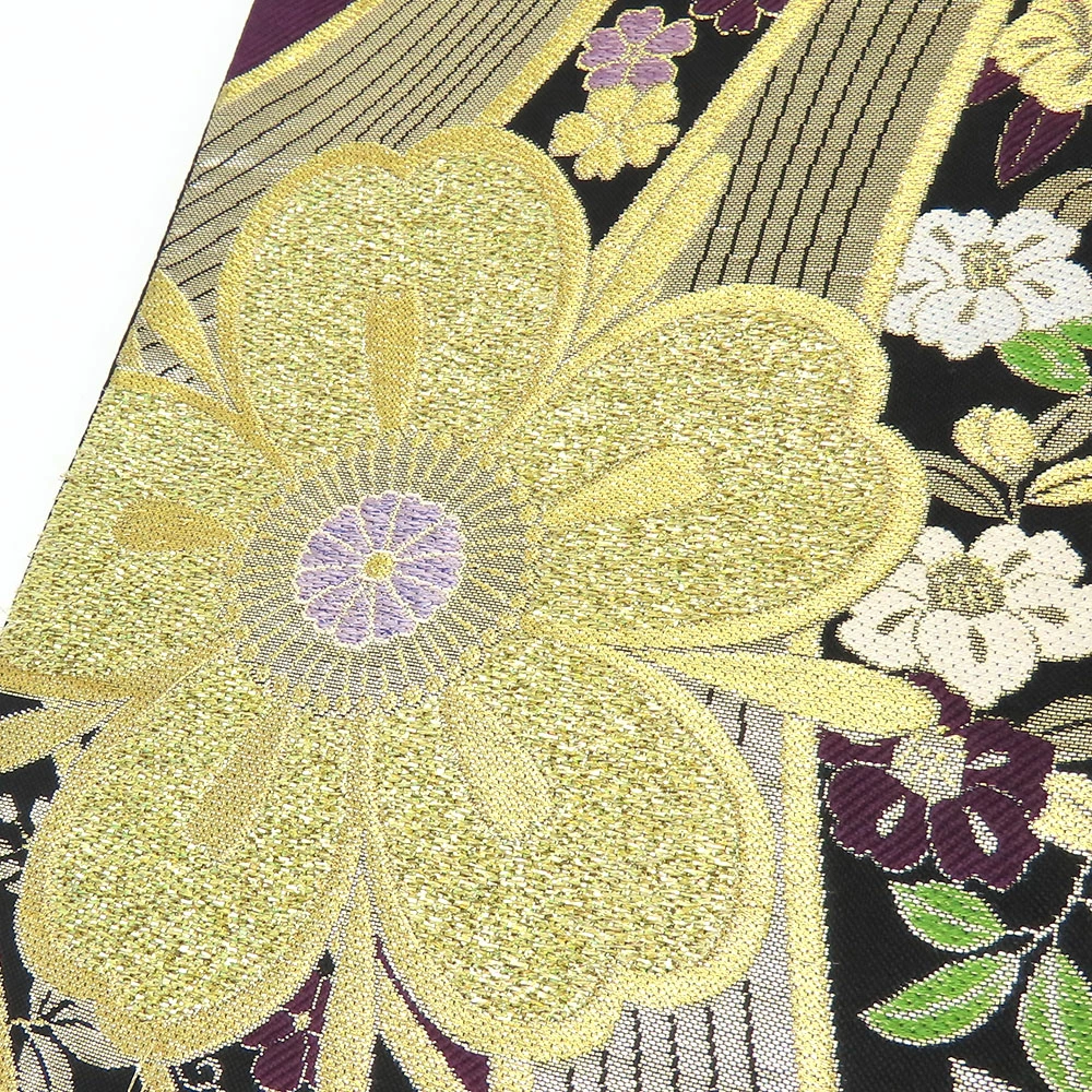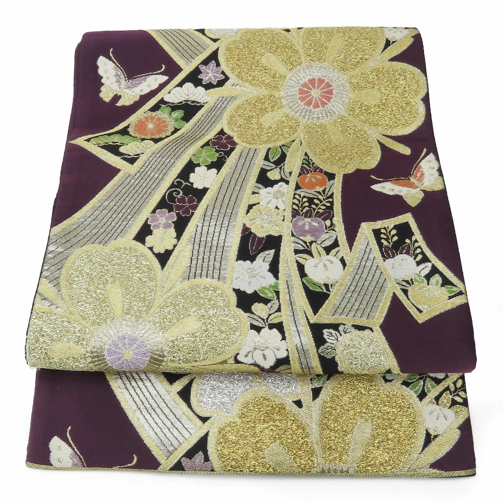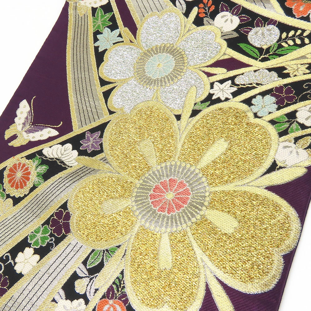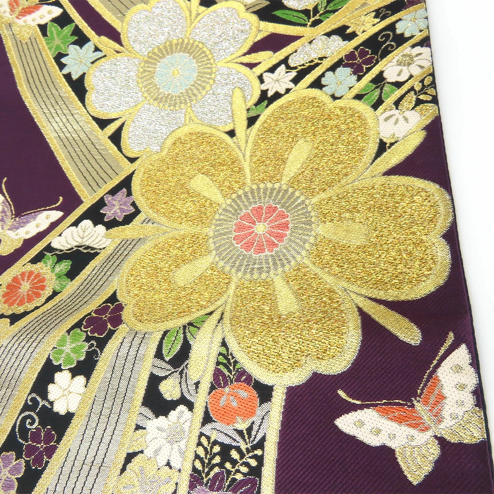 | 品名 | 【中古】 袋帯 正絹(金銀糸除く) パープル ゴールド ブラック 振袖 訪問着 レディース 女性 |