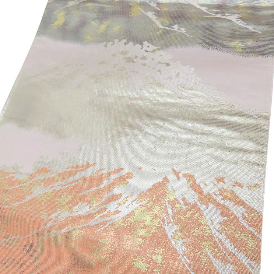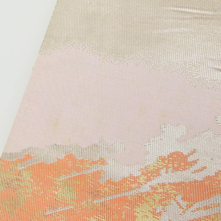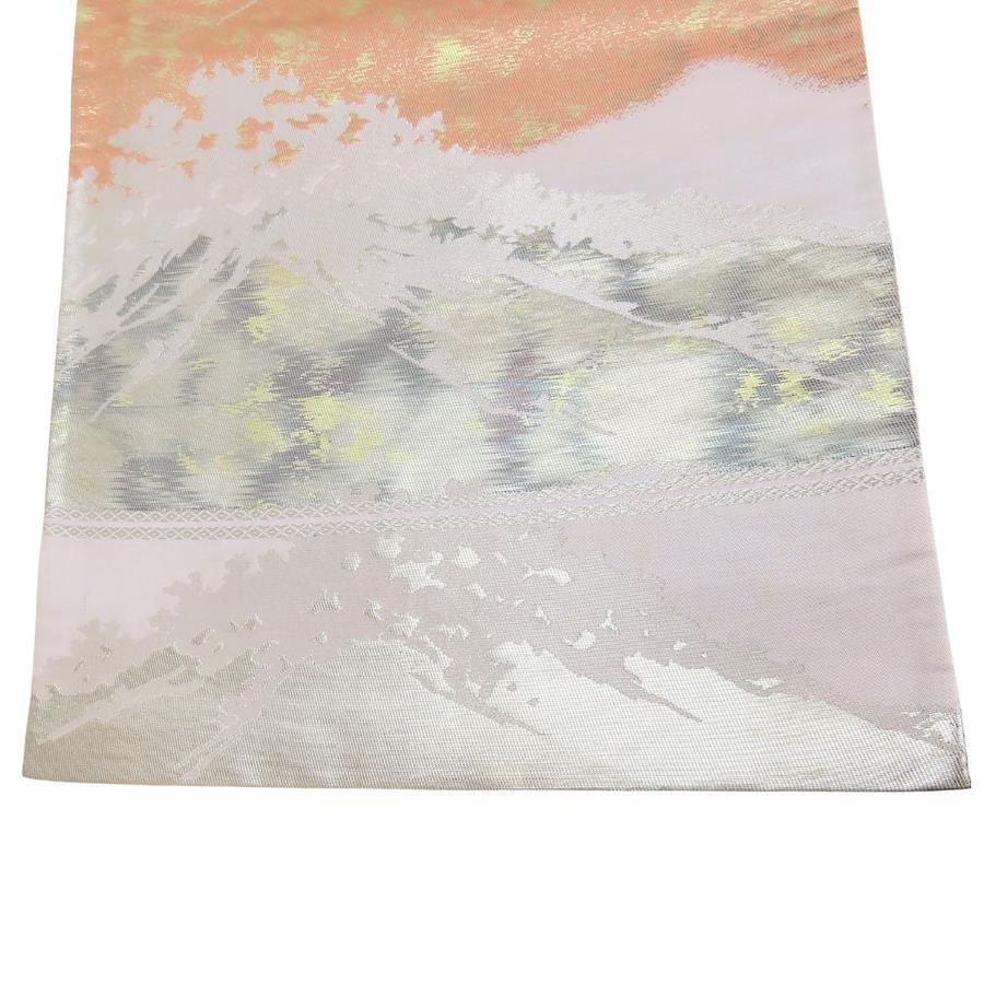 | 品名 | 【中古】 袋帯 正絹(金銀糸除く) 金銀糸 シルバー系 オレンジ 富士山 風景柄 フォーマル レディース 女性 |