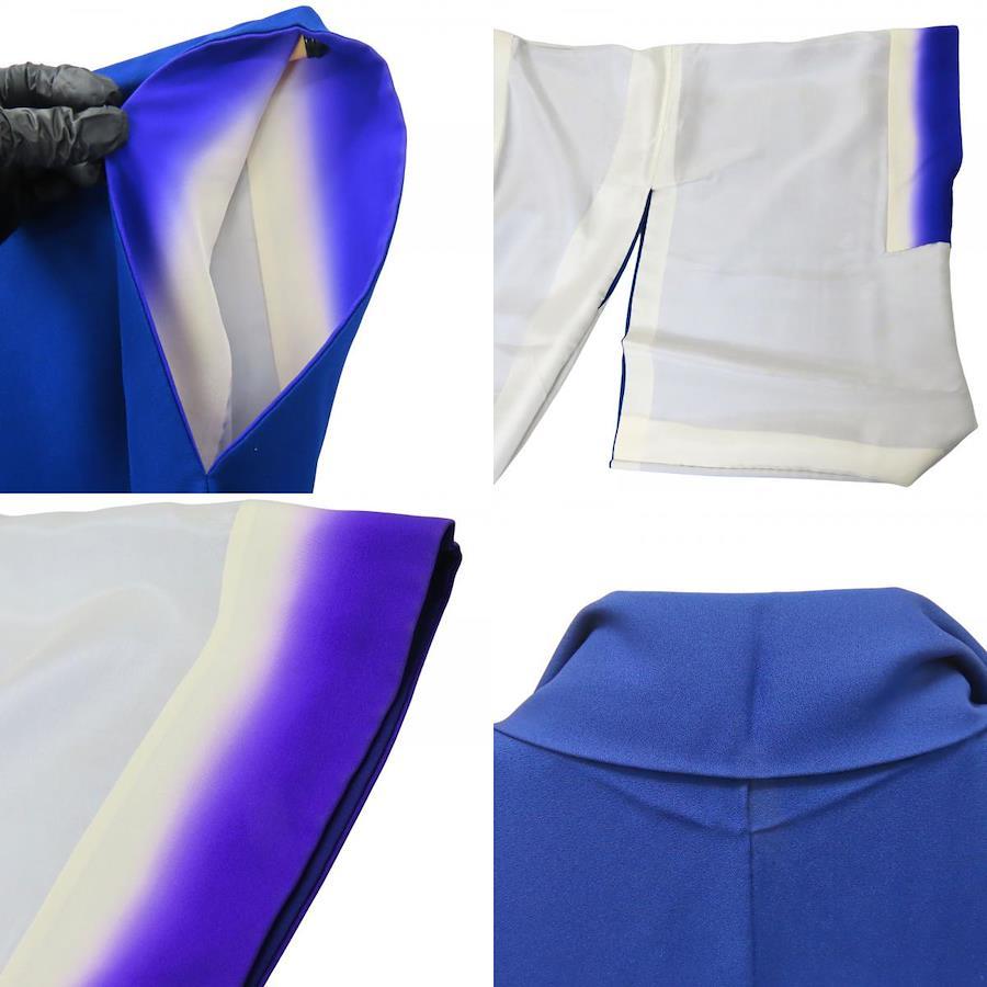たたみ跡、シワ、保管に伴うニオイ、色あせ、内側に極僅かな汚れ・引きつれ、襟に若干の色あせ、裾に極僅かな汚れ