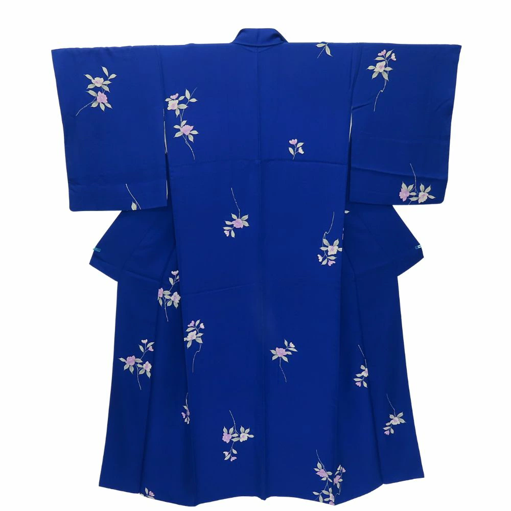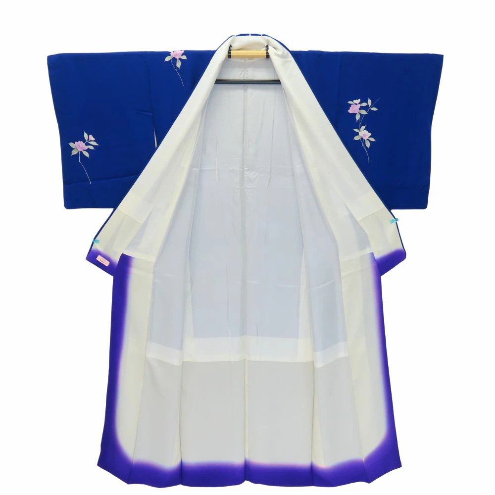 [Pre-owned] Visiting Kimono/Tsukesage (Japanese Kimono) - Pure Silk, Navy Blue, Hand-Painted, Kimono, Women's