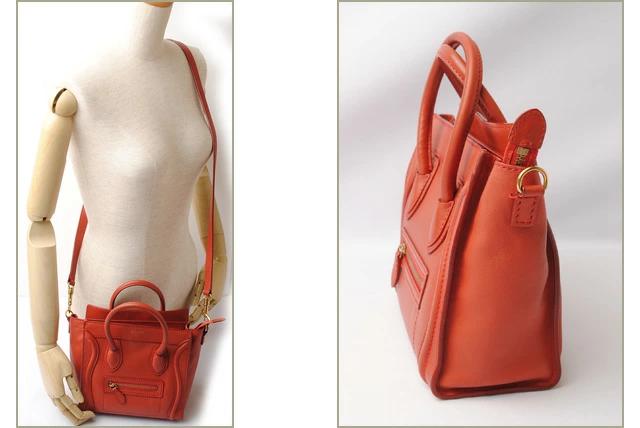 セリーヌ ハンドバッグCELINE ナノショッパー ラゲージ ブリックレッド 168243 ストラップ付 2way