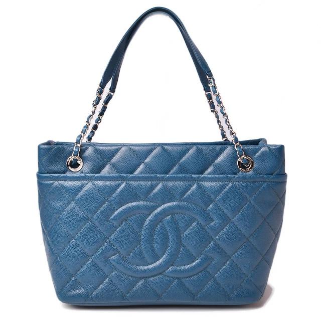 シャネルより、A4サイズの収納が可能なチェーントートバッグです。スクエア型のかちっとしたフォルム。傷の目立ちにくいキャビアスキン素材です。大き目の前後のポケットも便利。通勤通学にも最適です。