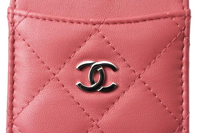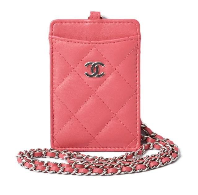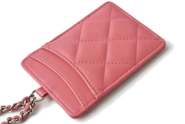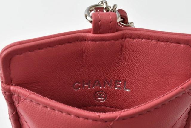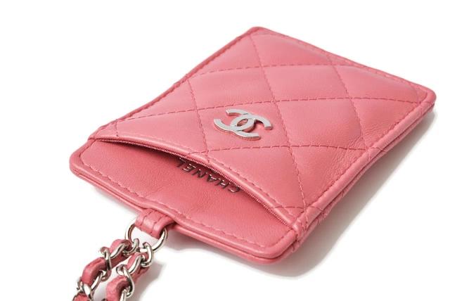 CHANEL ネックストラップ付 マトラッセ ラムスキン ローズ シルバー金具 AP1044