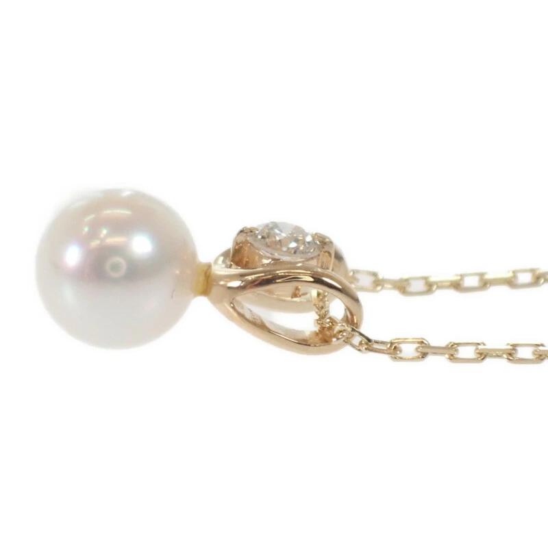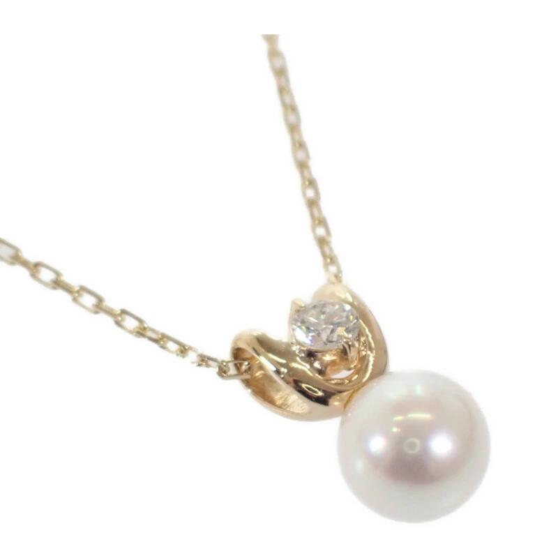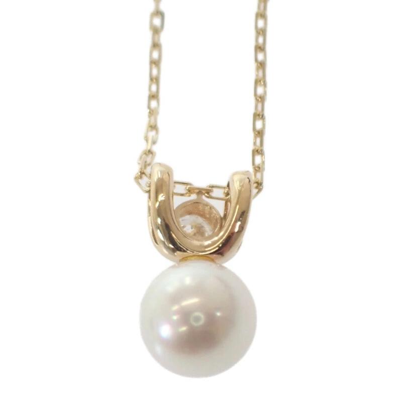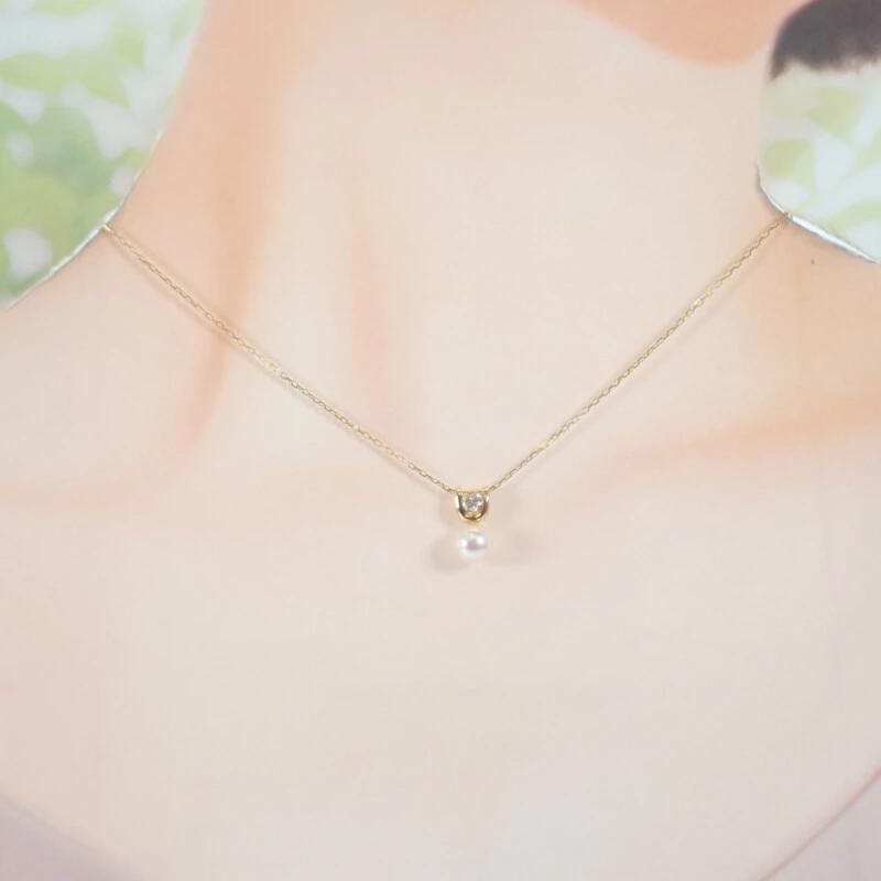 パールの柔らかな輝きと、ダイヤモンドの澄んだ美しさがイエローゴールドのモチーフにより美しく調和したネックレスとなっています。