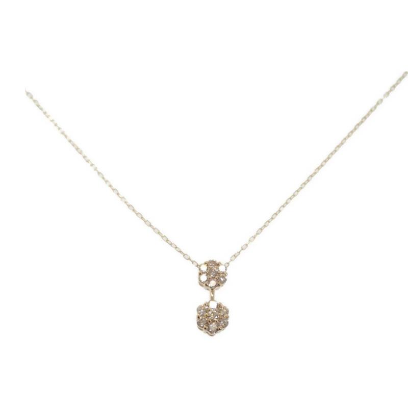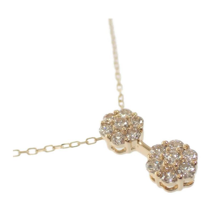 Pre-owned K18YG D Design Jewelry Necklace in K18 Yellow Gold with Diamonds and Two Flowers. Women's Jewelry and Accessories. [Rank A]