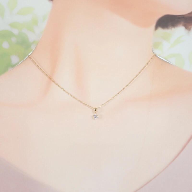 一粒ダイヤモンドが華やかに輝くデザインネックレスです。
