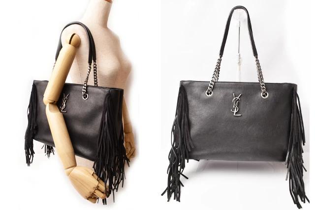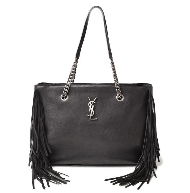 サンローランから、フリンジバッグです。セレブから絶大な支持を集めるブランドです。チェーンストラップ、各部フリンジの使いと、正面のYSLのロゴモチーフがアクセントに。内側にファスナー付きポケットです。A4サイズ対応で、通勤通学にもおすすめ。スタイリッシュなフォルムはデイリーユースにマルチに活躍してくれます。自分へのご褒美はもちろん、プレゼントにもおすすめです。