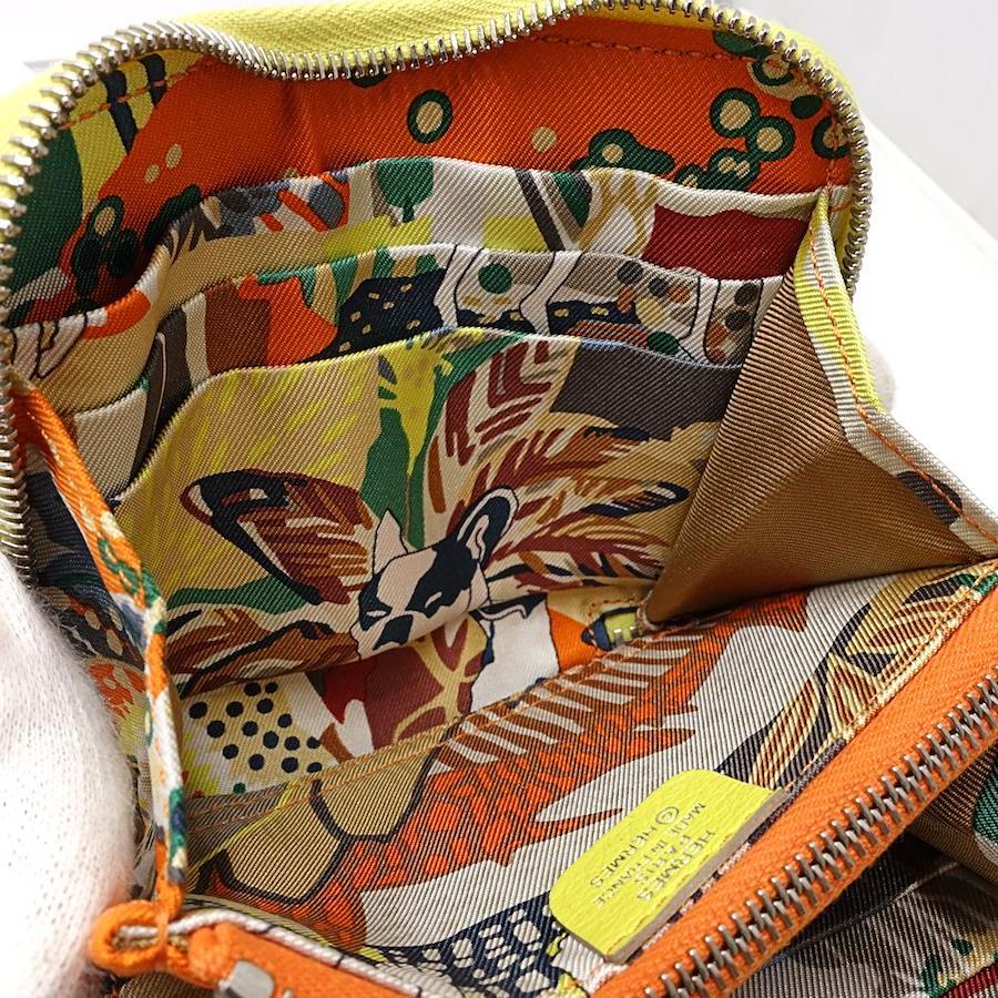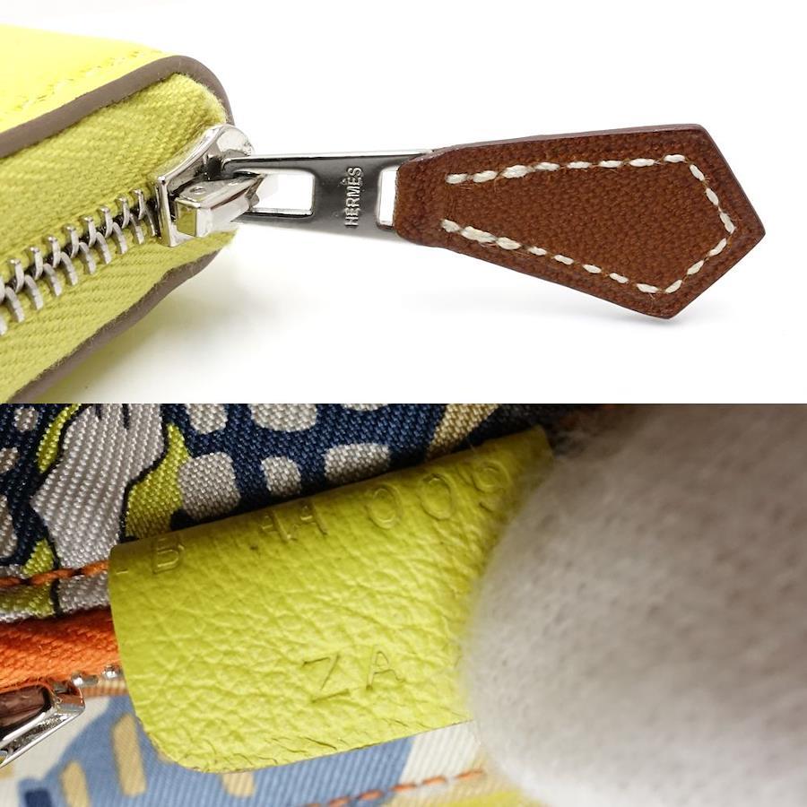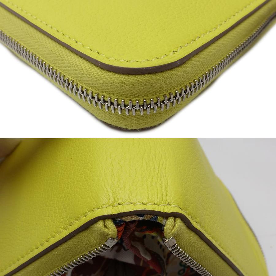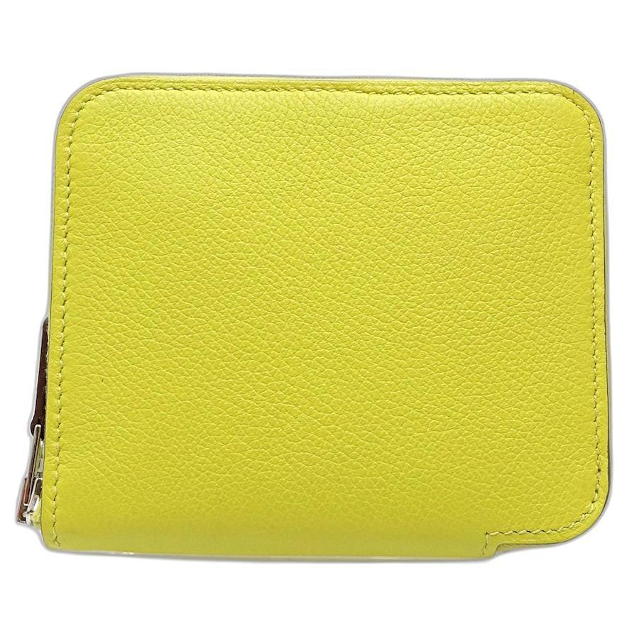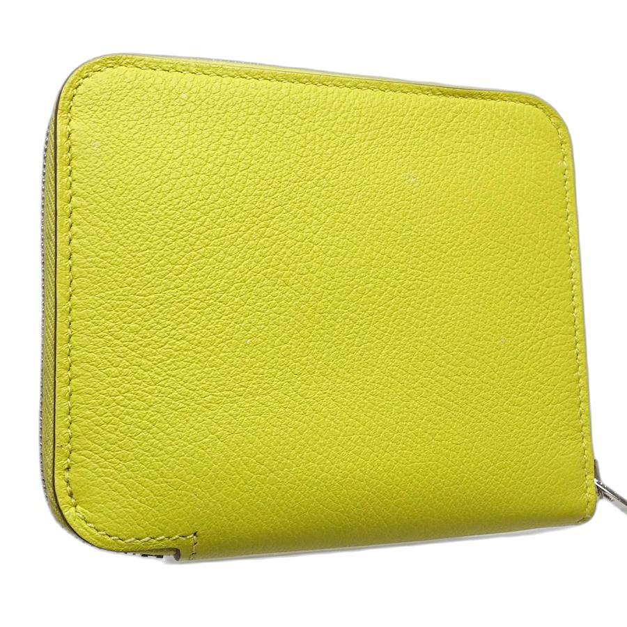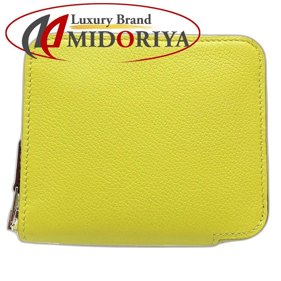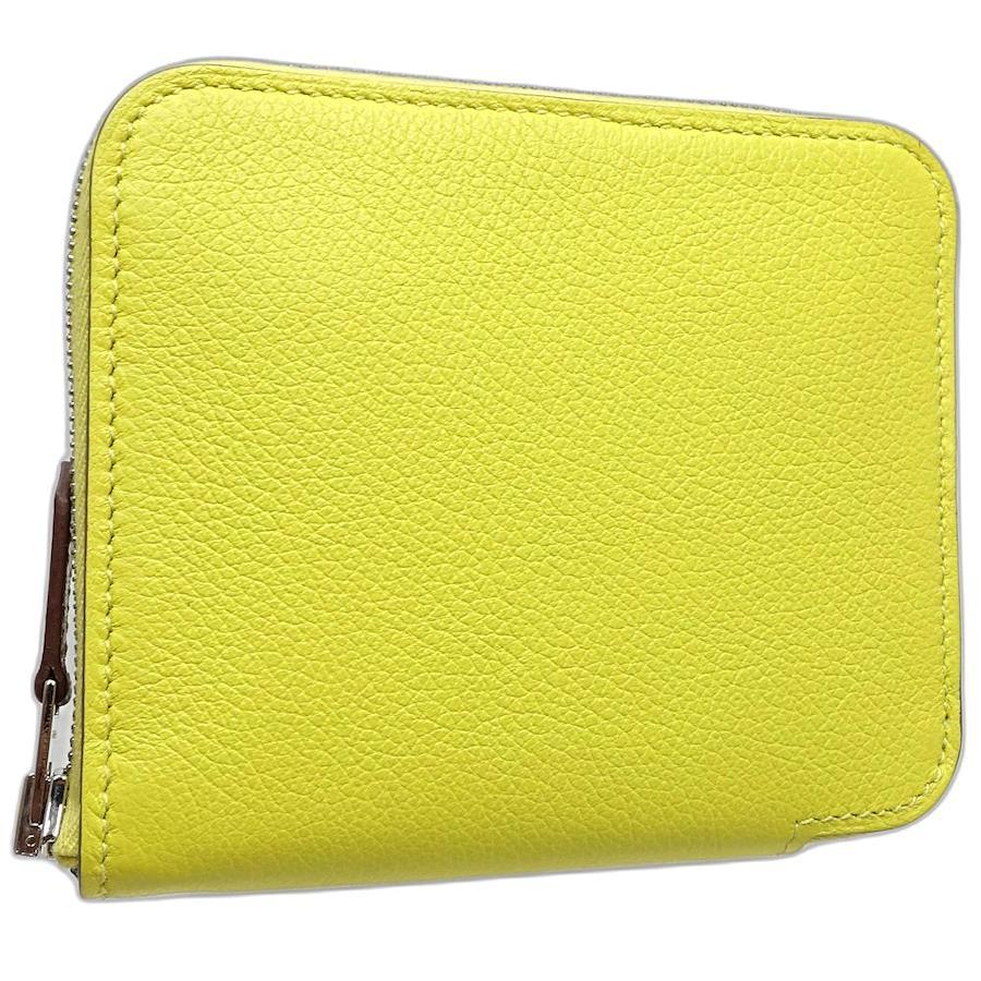 Pre-owned Hermès Azap Compact Coin Case, Silkin, B Stamp, Epsom Leather x Silk, Lime, Women's, 181678