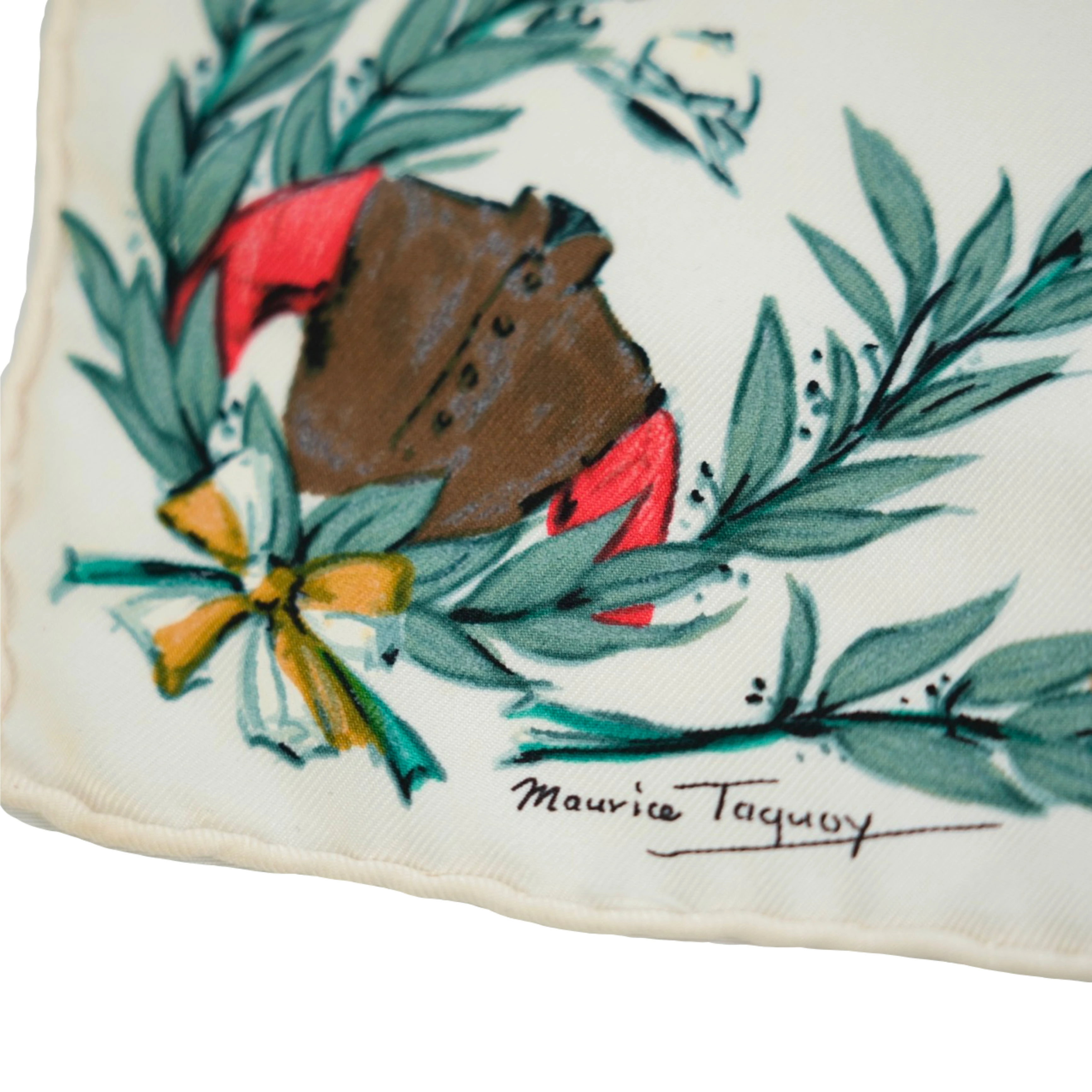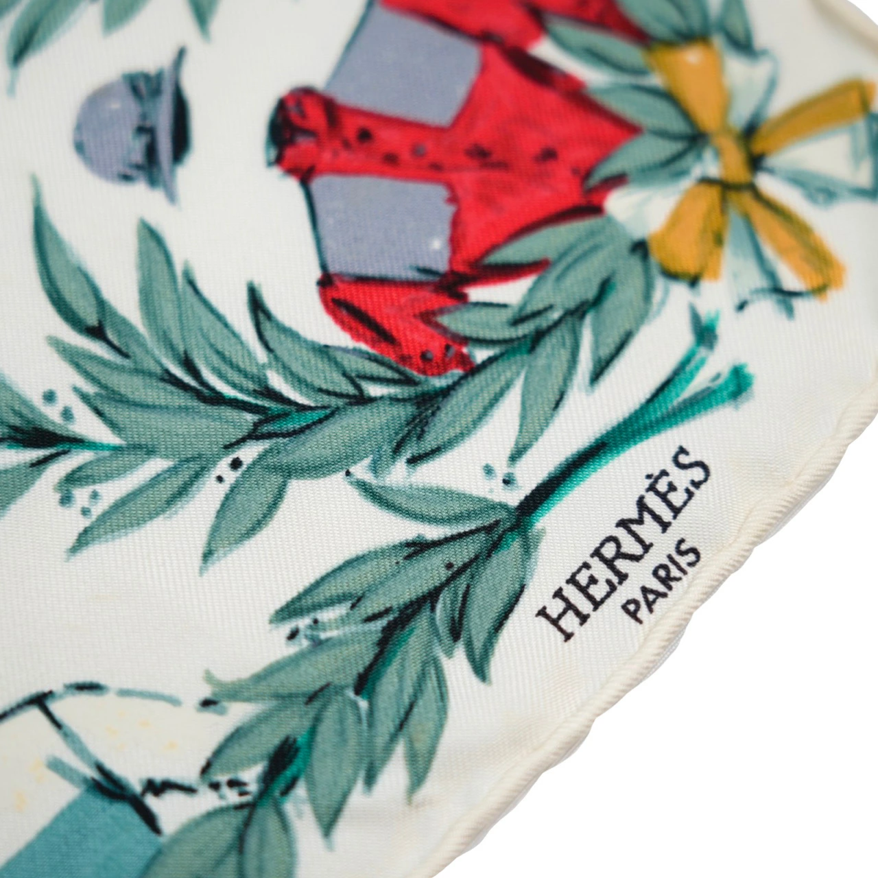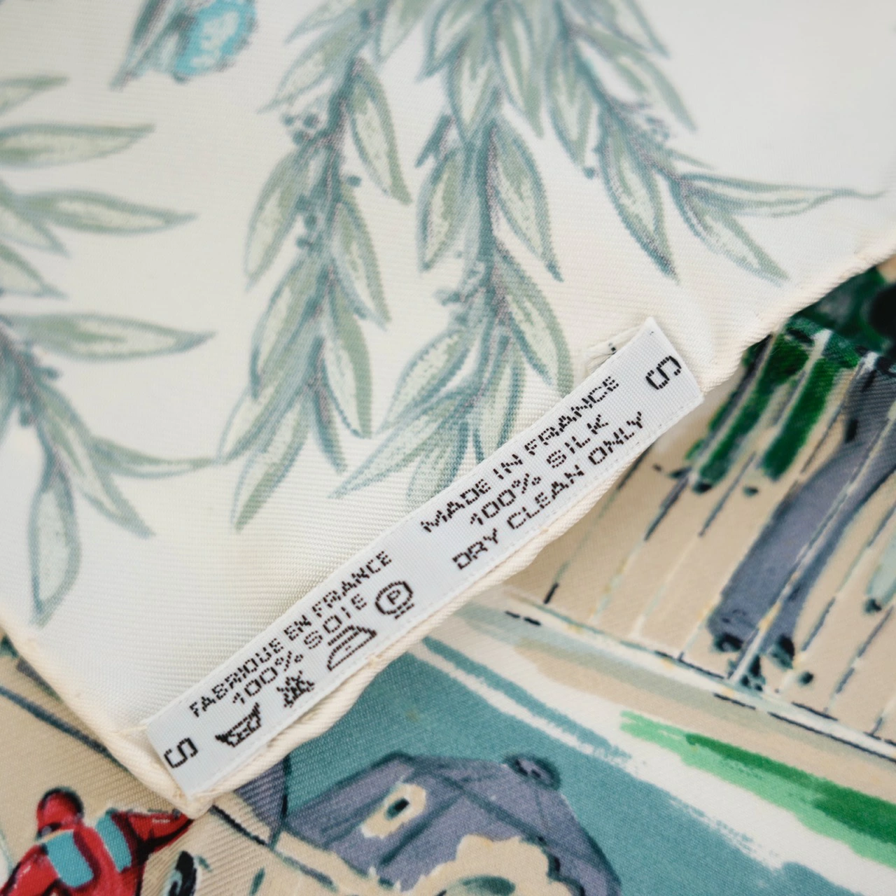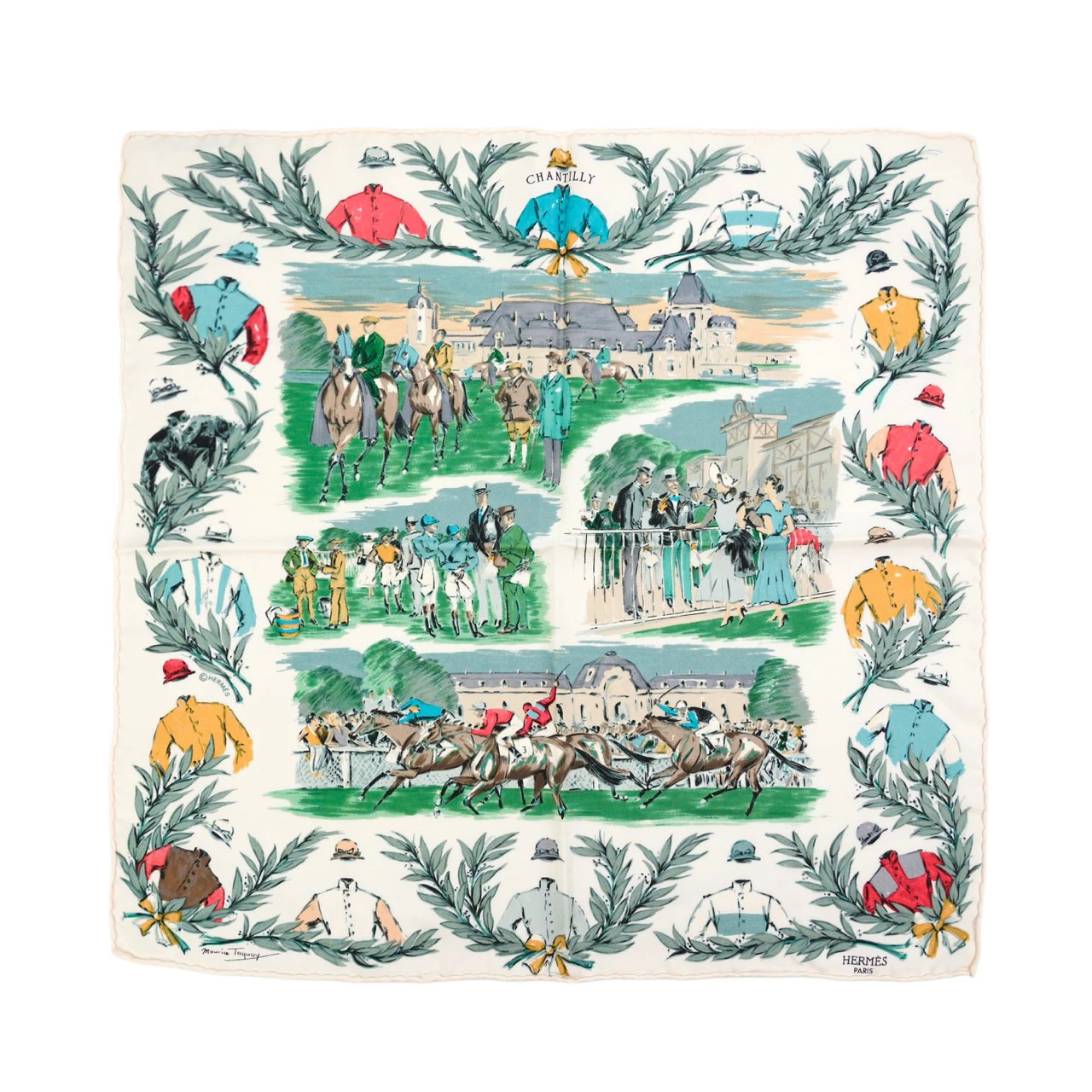 【中古・VINTAGE】エルメス シルク カレ45 競馬場 スカーフ シルク100% ホワイト マルチカラー ヴィンテージ HERMES Silk Carr? 45 Chantilly Scarf