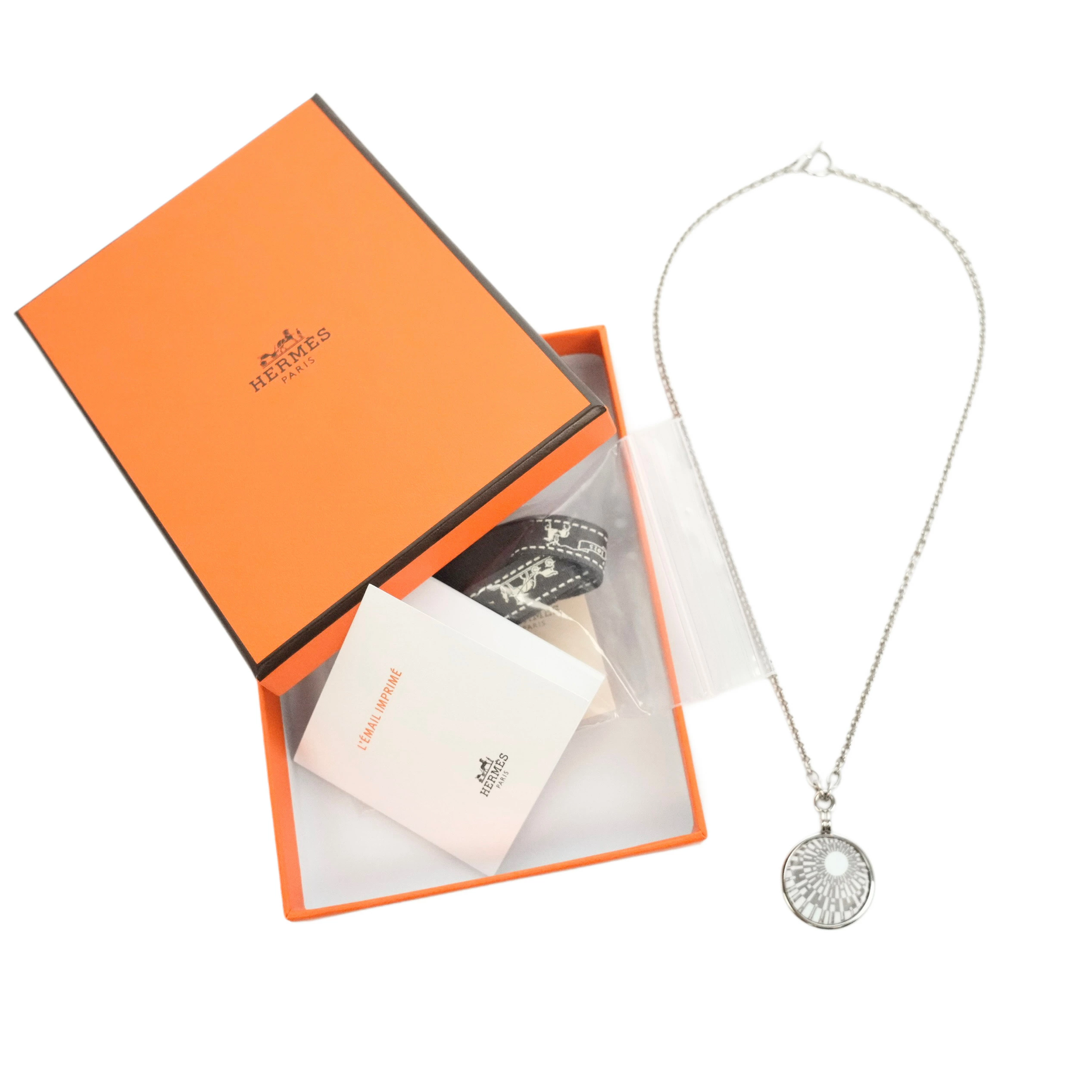 【中古・VINTAGE】エルメス メダイユOP'H PM ネックレス シルバー ホワイト ヴィンテージ HERMES Medaillon OP'H PM Necklace