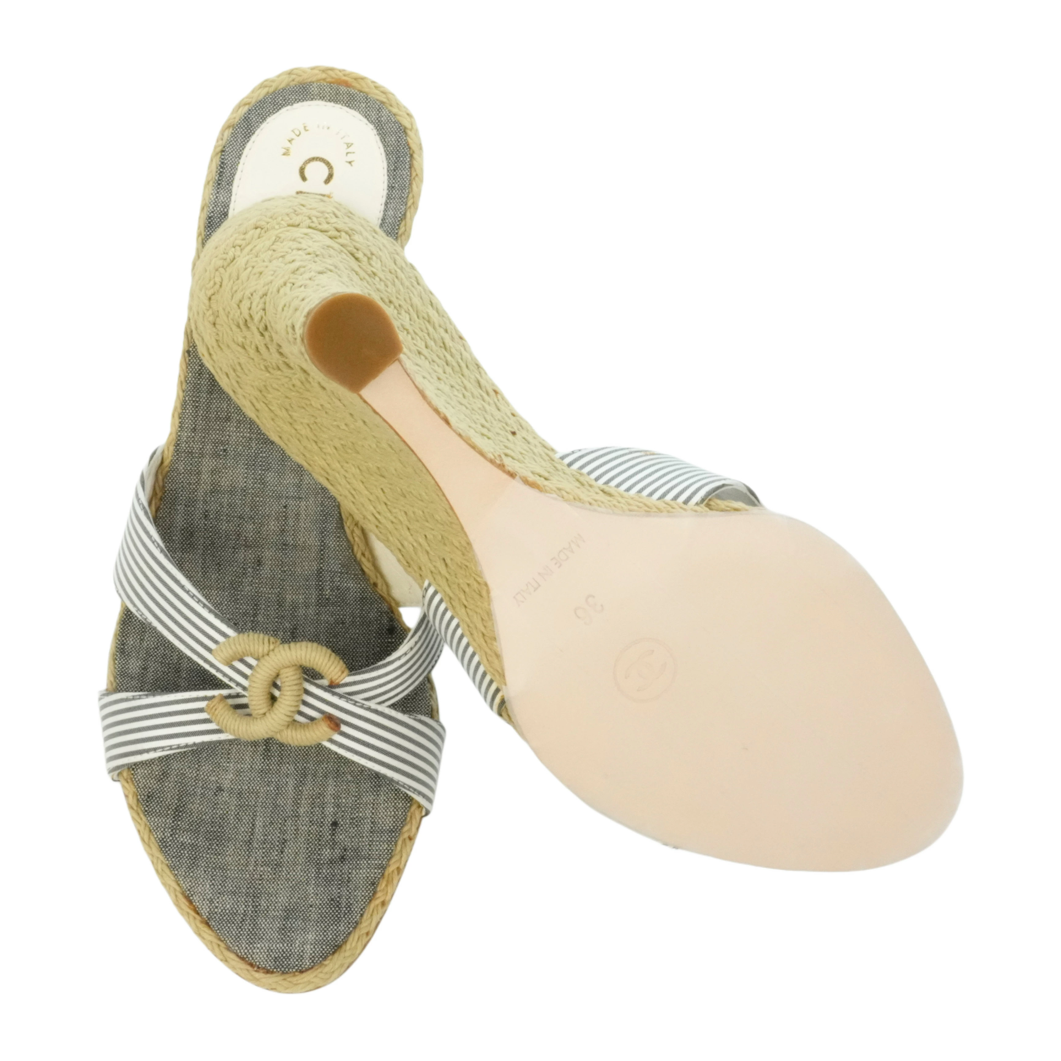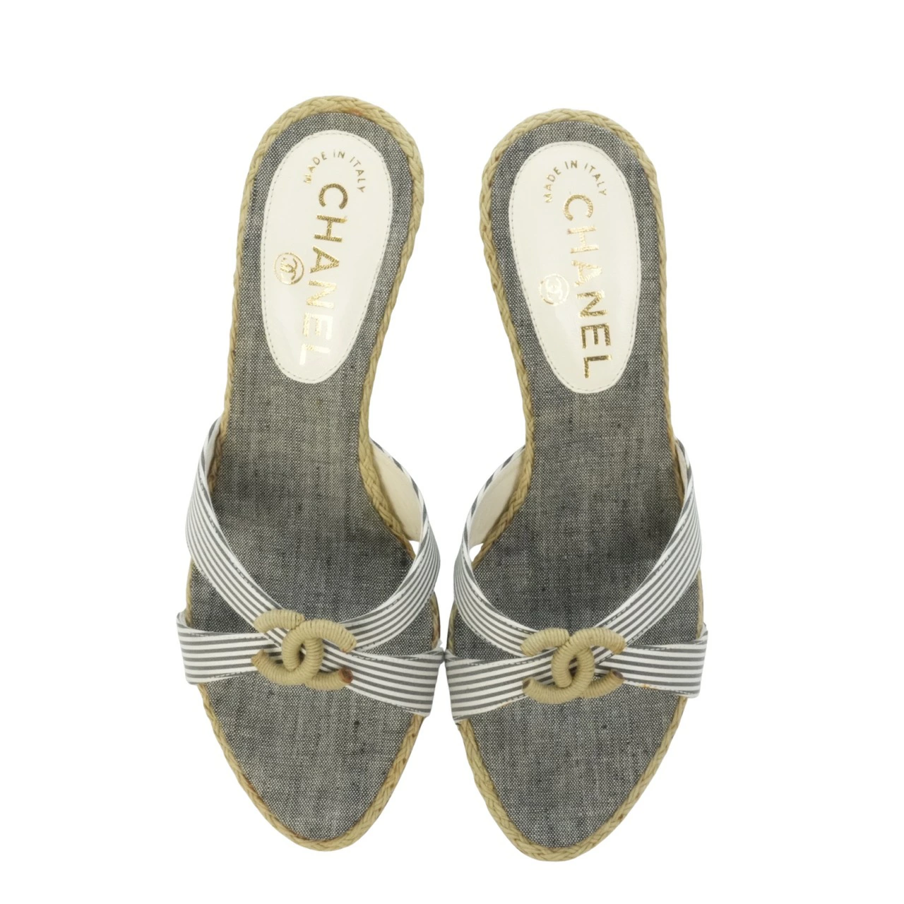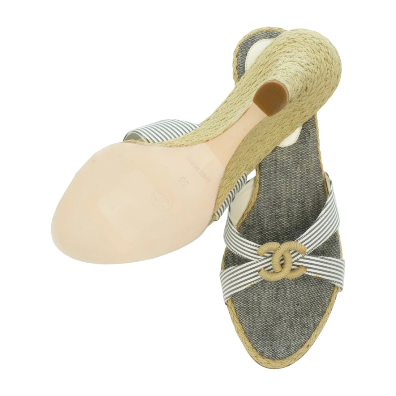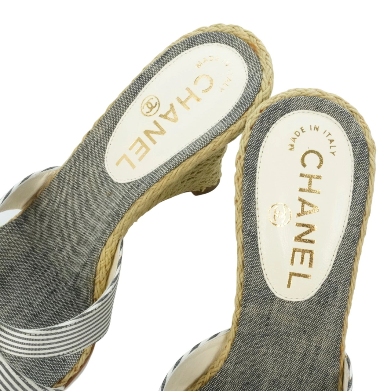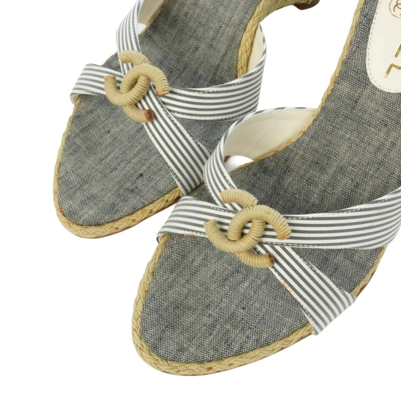 【中古・VINTAGE】シャネル ココマーク マリン ミュール サンダル 表記36 22.5cmヒール高さ9cm グレー ベージュ ヴィンテージ CHANEL Coco Mark Marine Mules Sandals