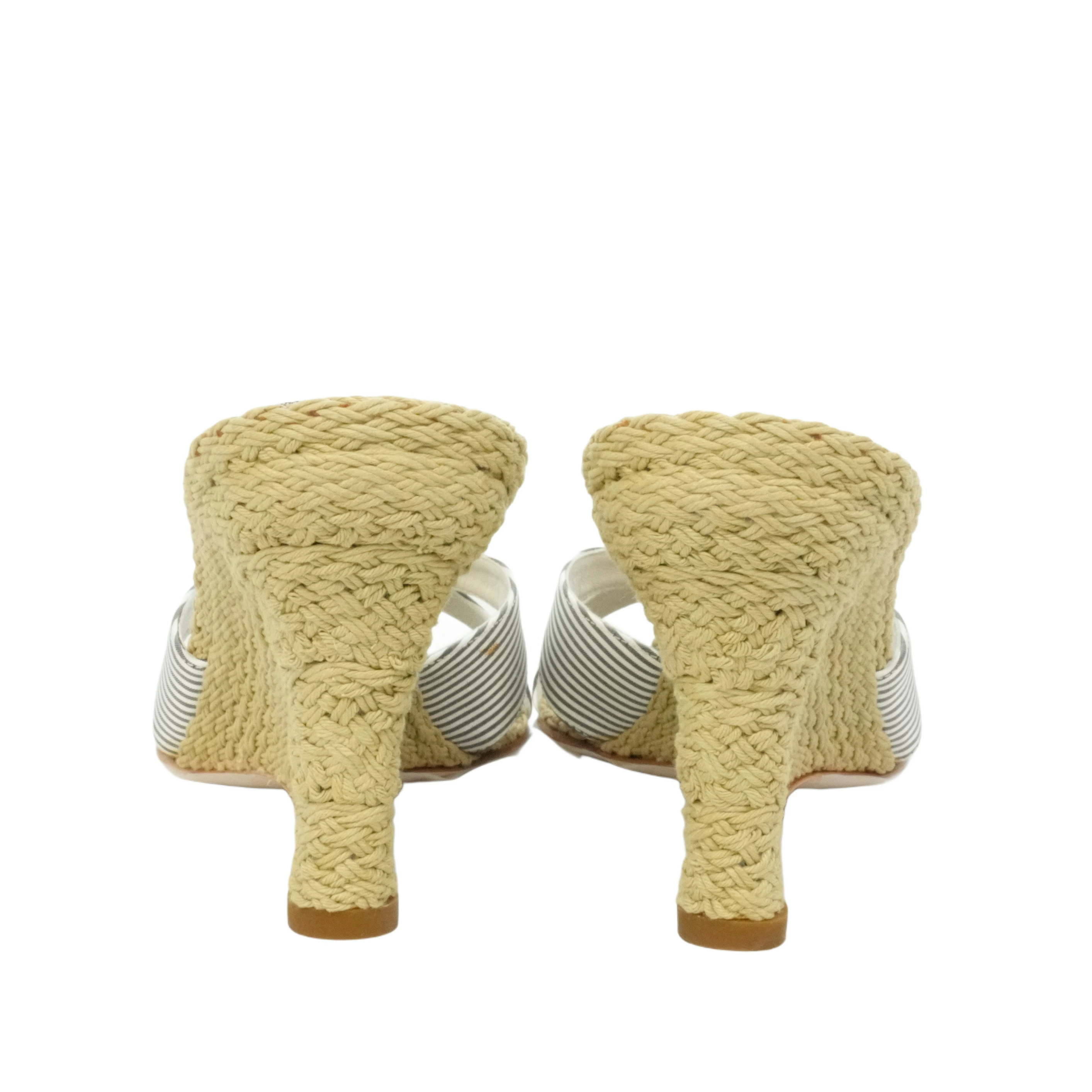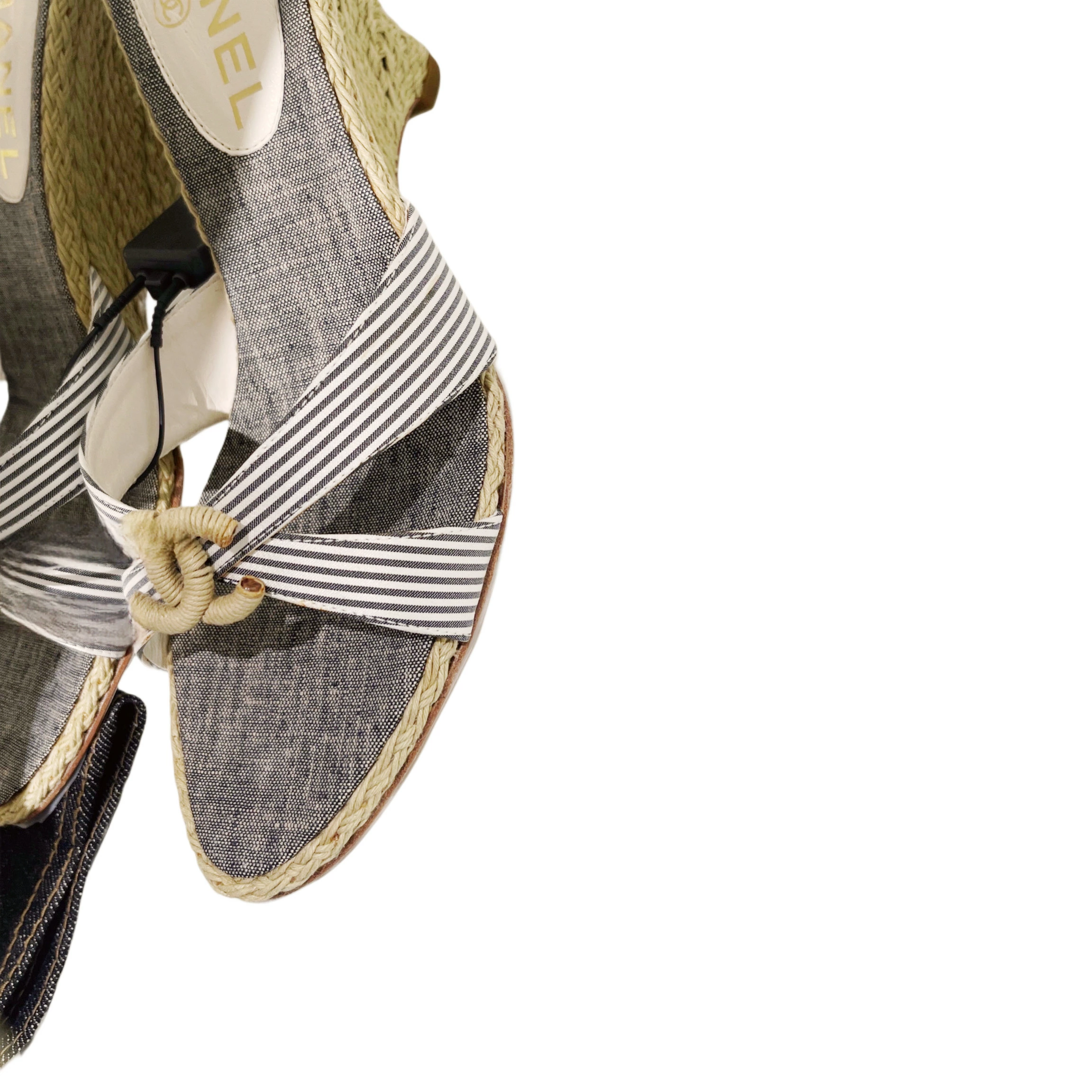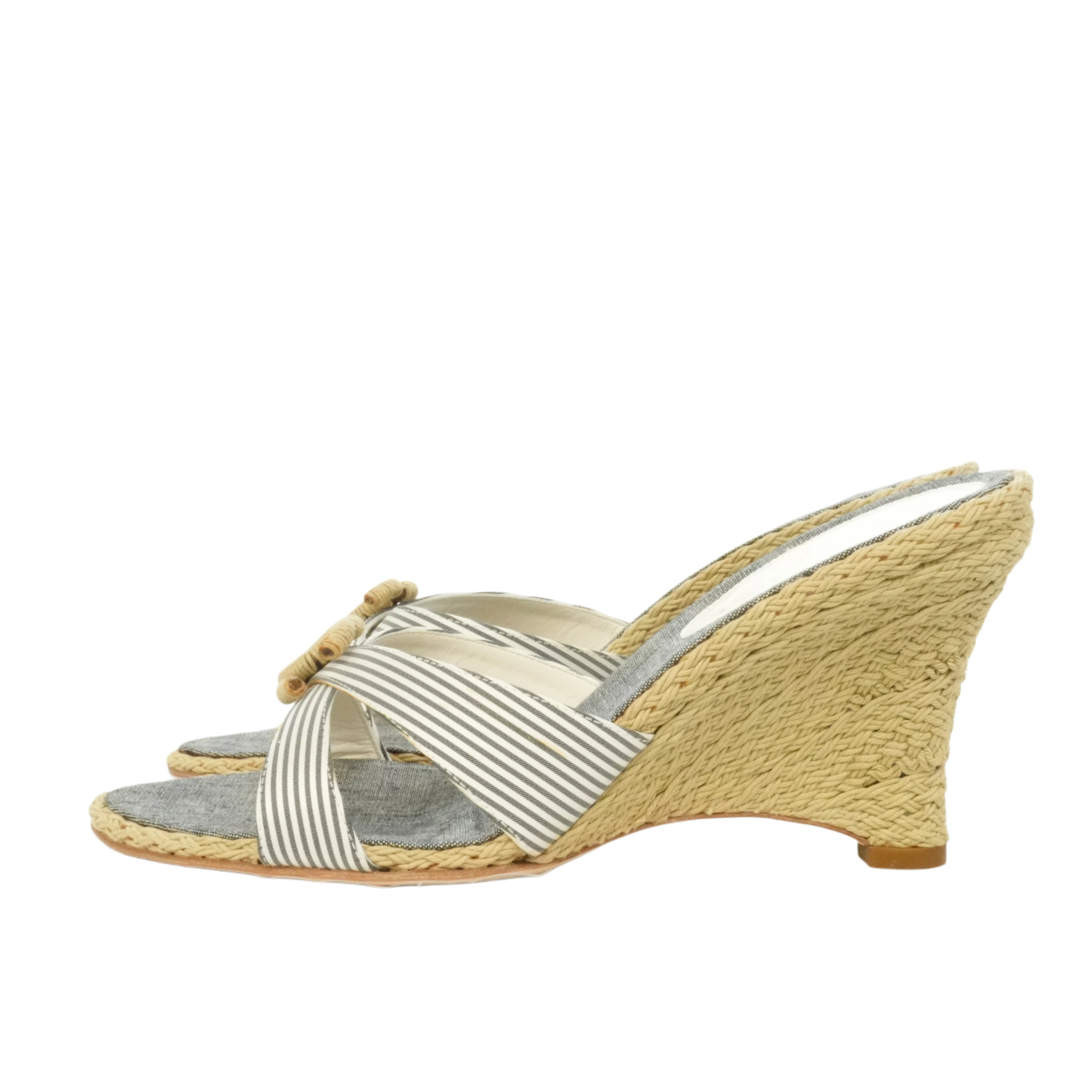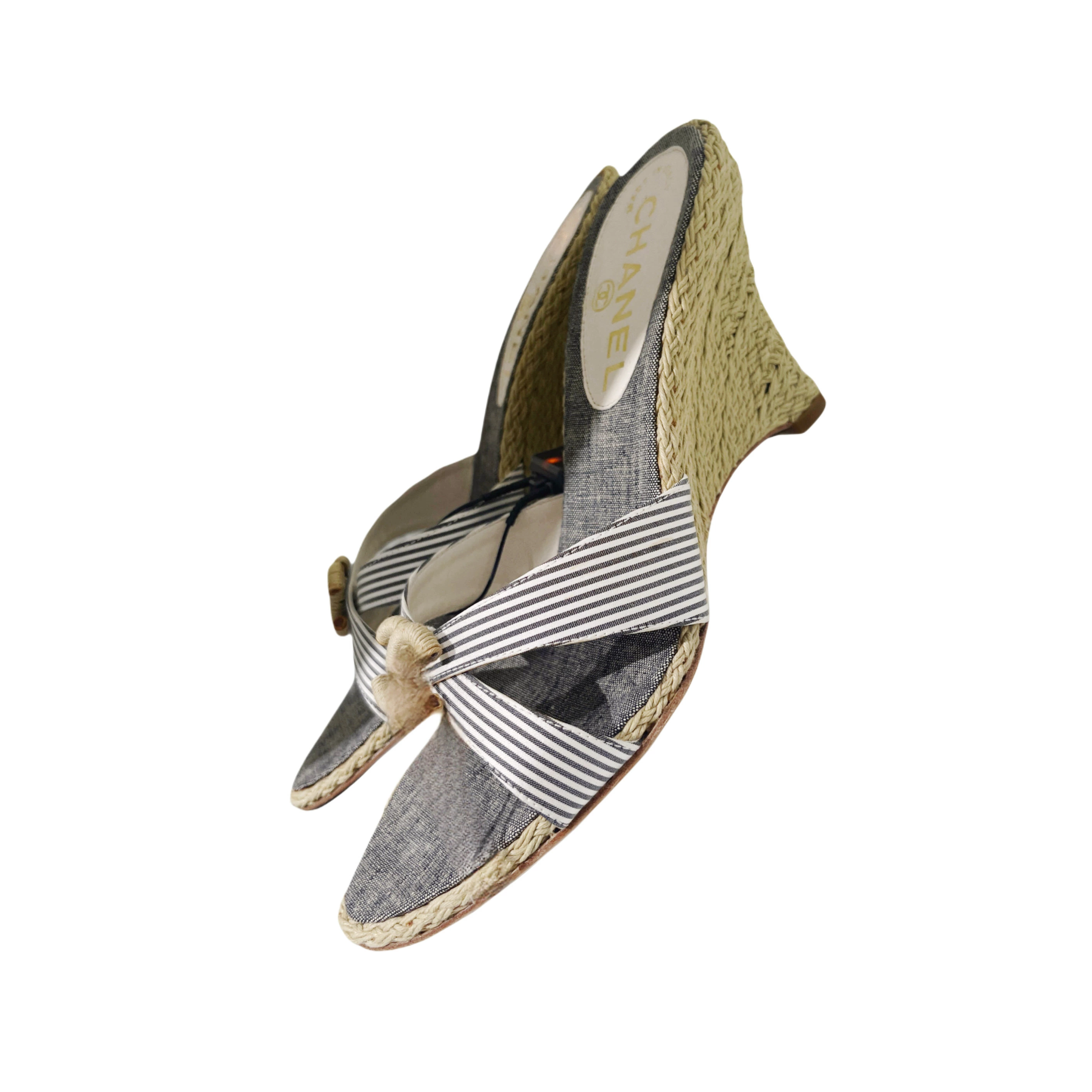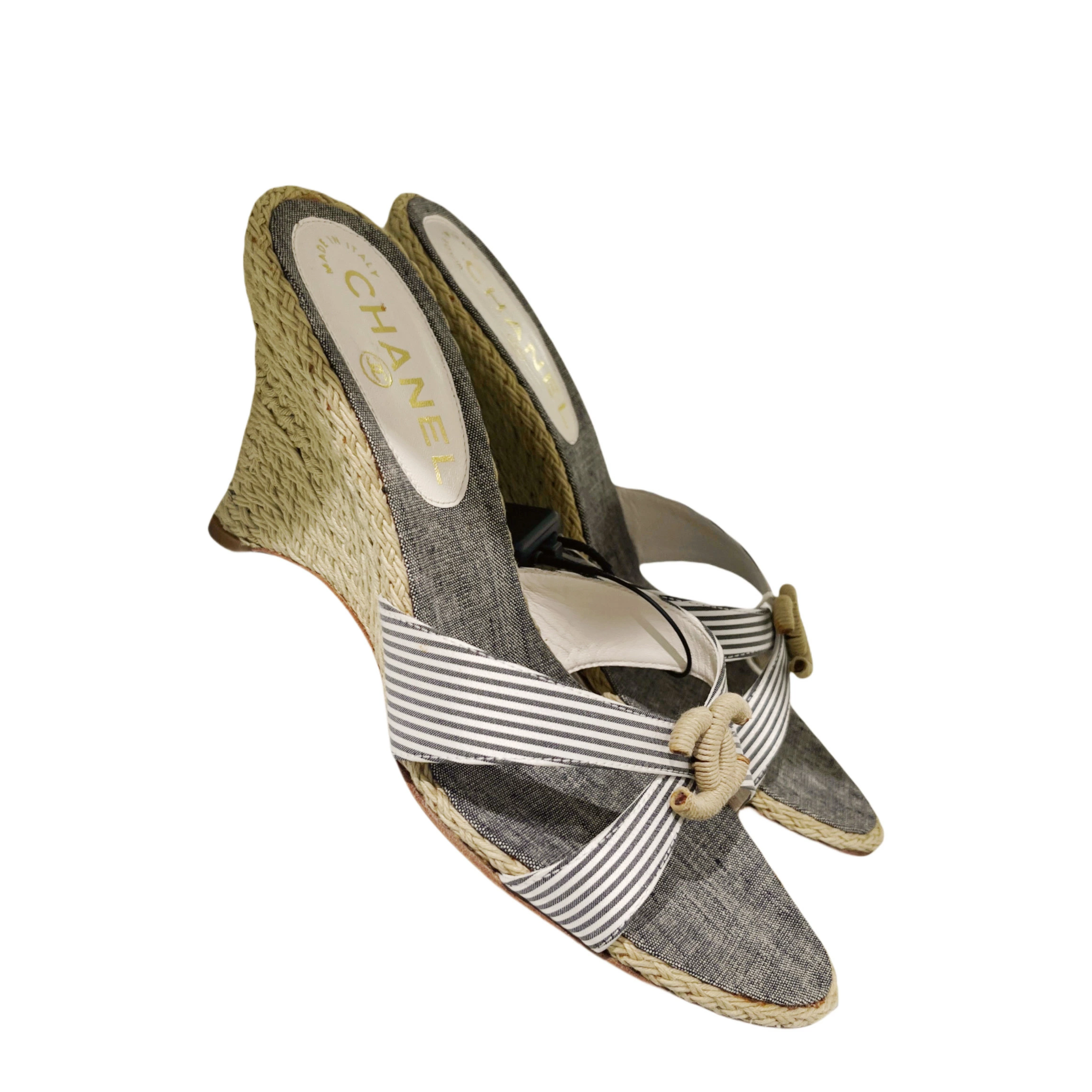 【中古・VINTAGE】シャネル ココマーク マリン ミュール サンダル 表記36 22.5cmヒール高さ9cm グレー ベージュ ヴィンテージ CHANEL Coco Mark Marine Mules Sandals
