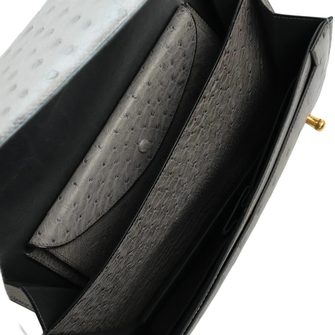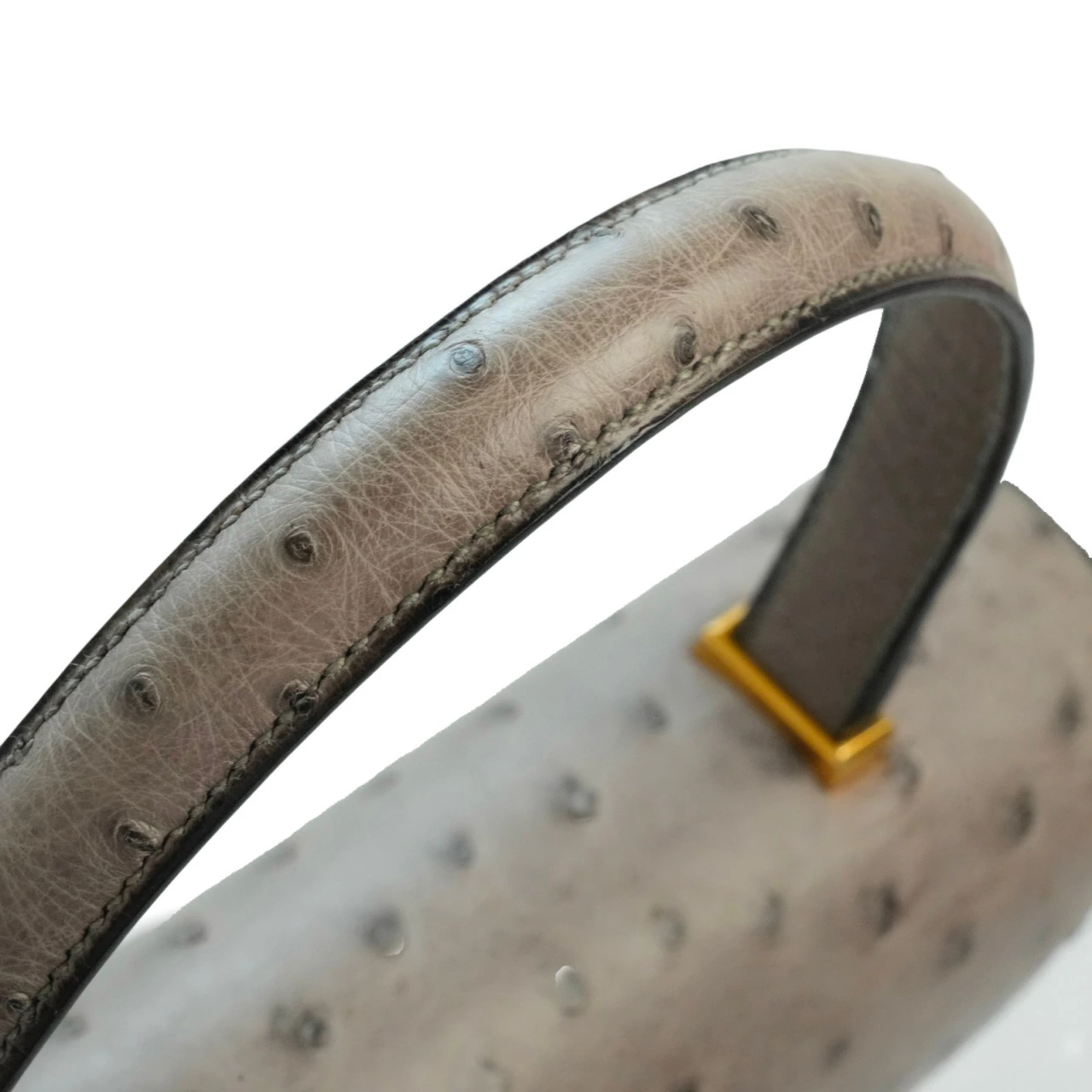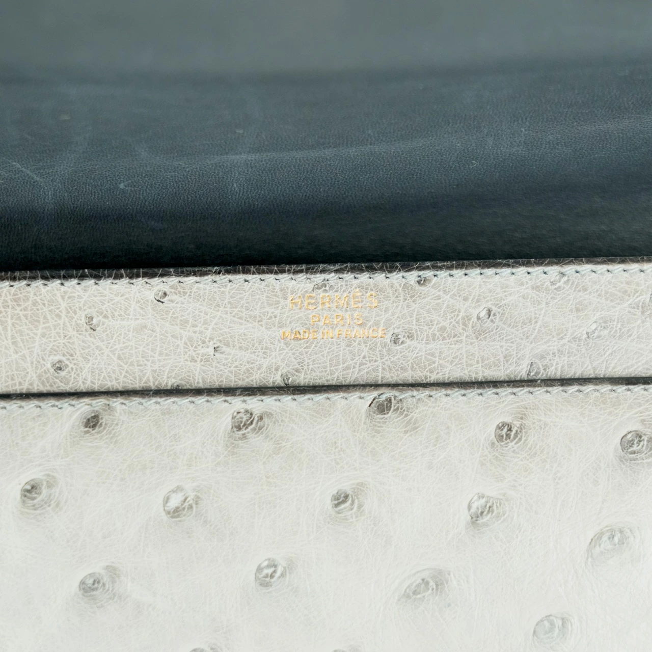 Pre-owned Vintage Hermès 1998 Ostrich Piano Handbag in Mousse and Gold