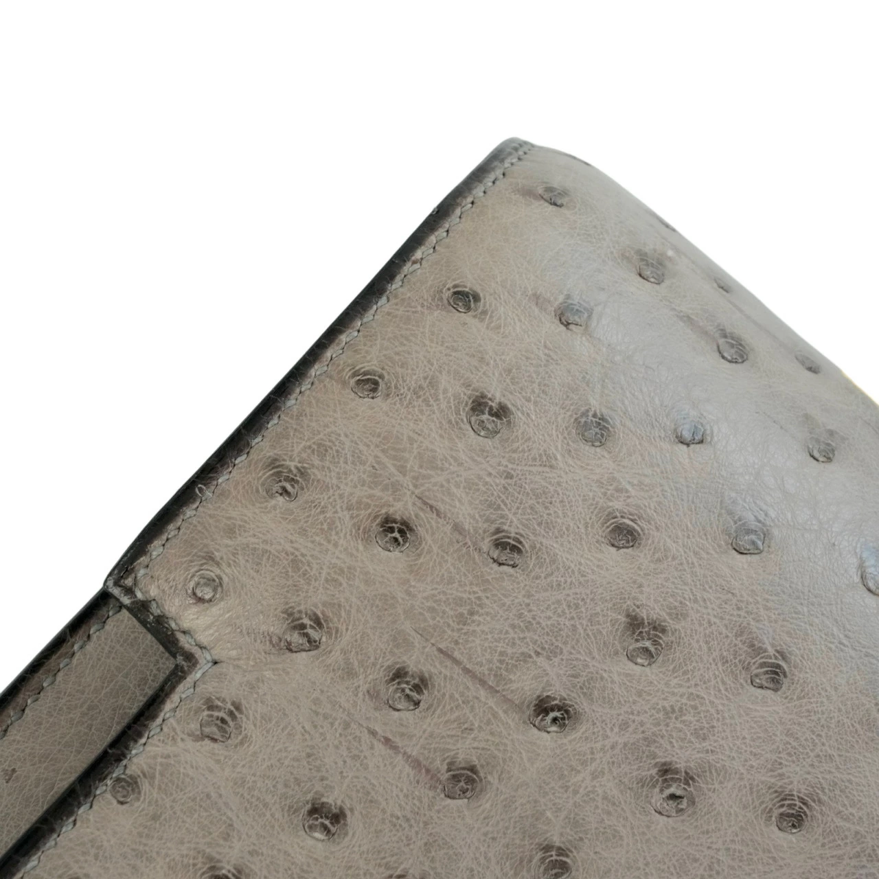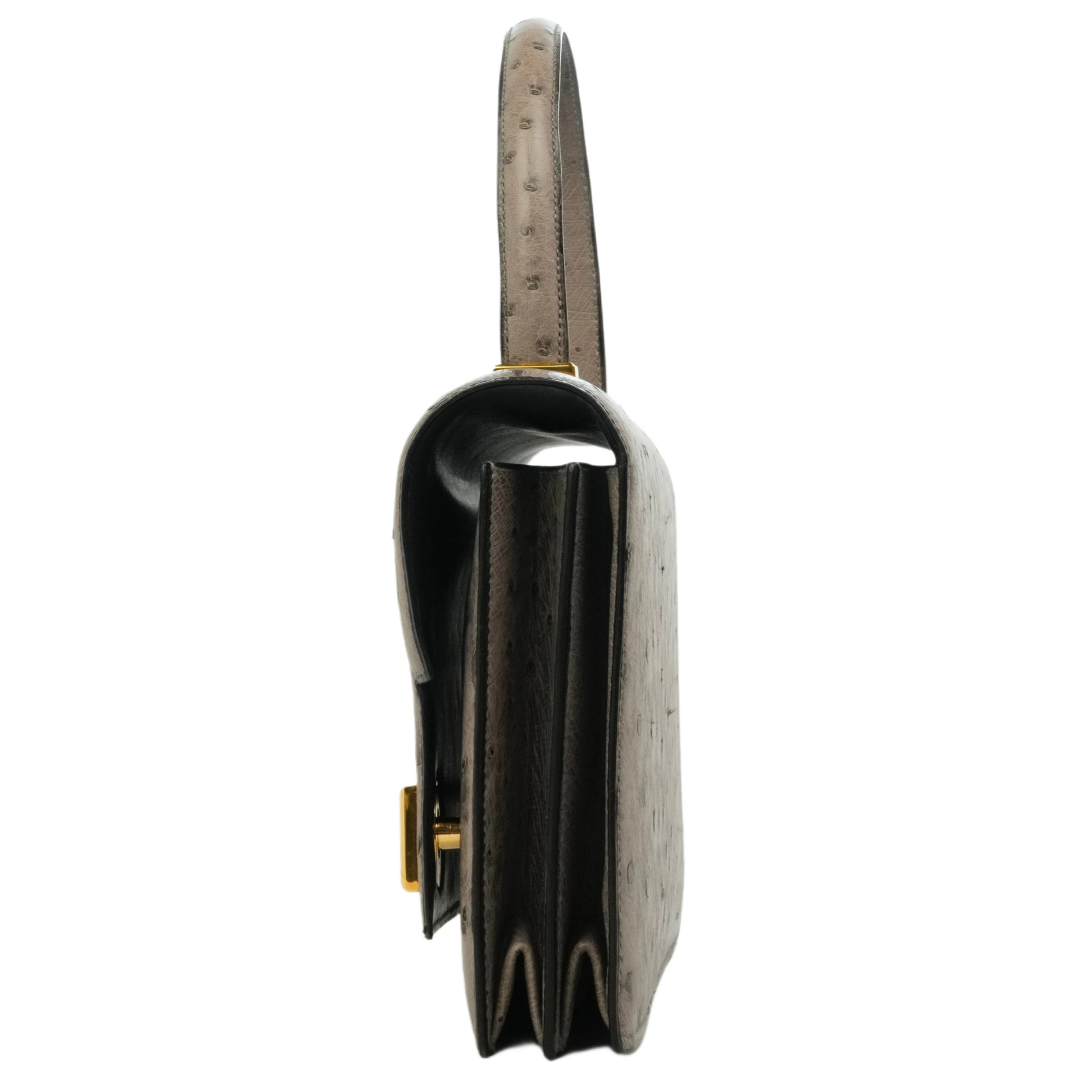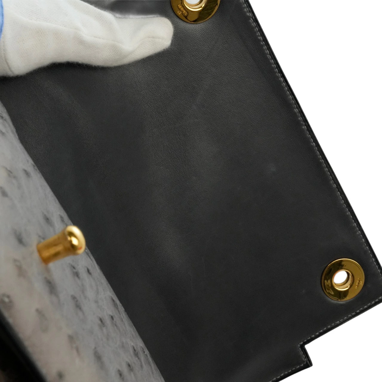 Pre-owned Vintage Hermès 1998 Ostrich Piano Handbag in Mousse and Gold