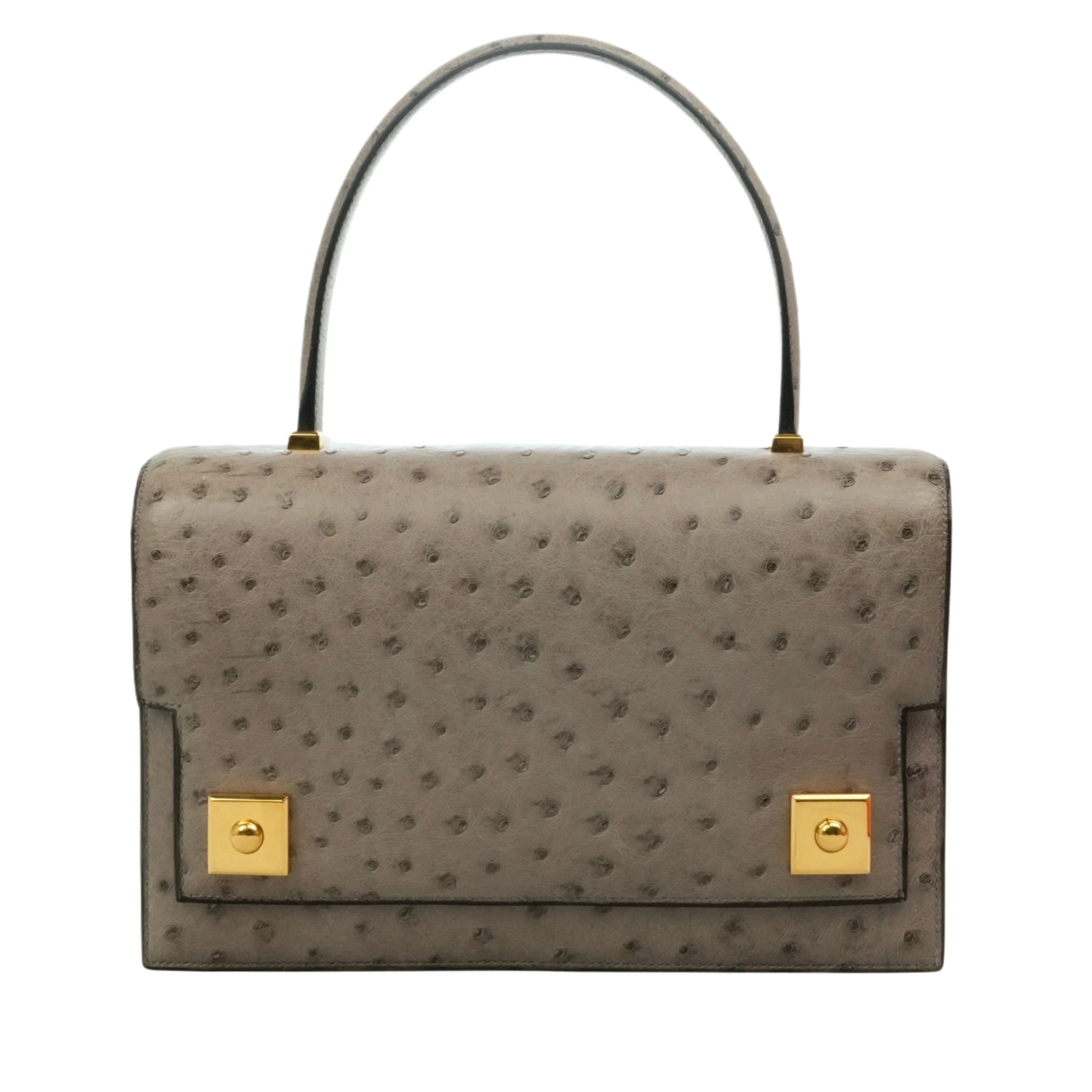 【中古・VINTAGE】 1998 オーストリッチ ピアノ ハンドバッグ ムース ゴールド ヴィンテージ HERMES Ostrich Piano Handbag