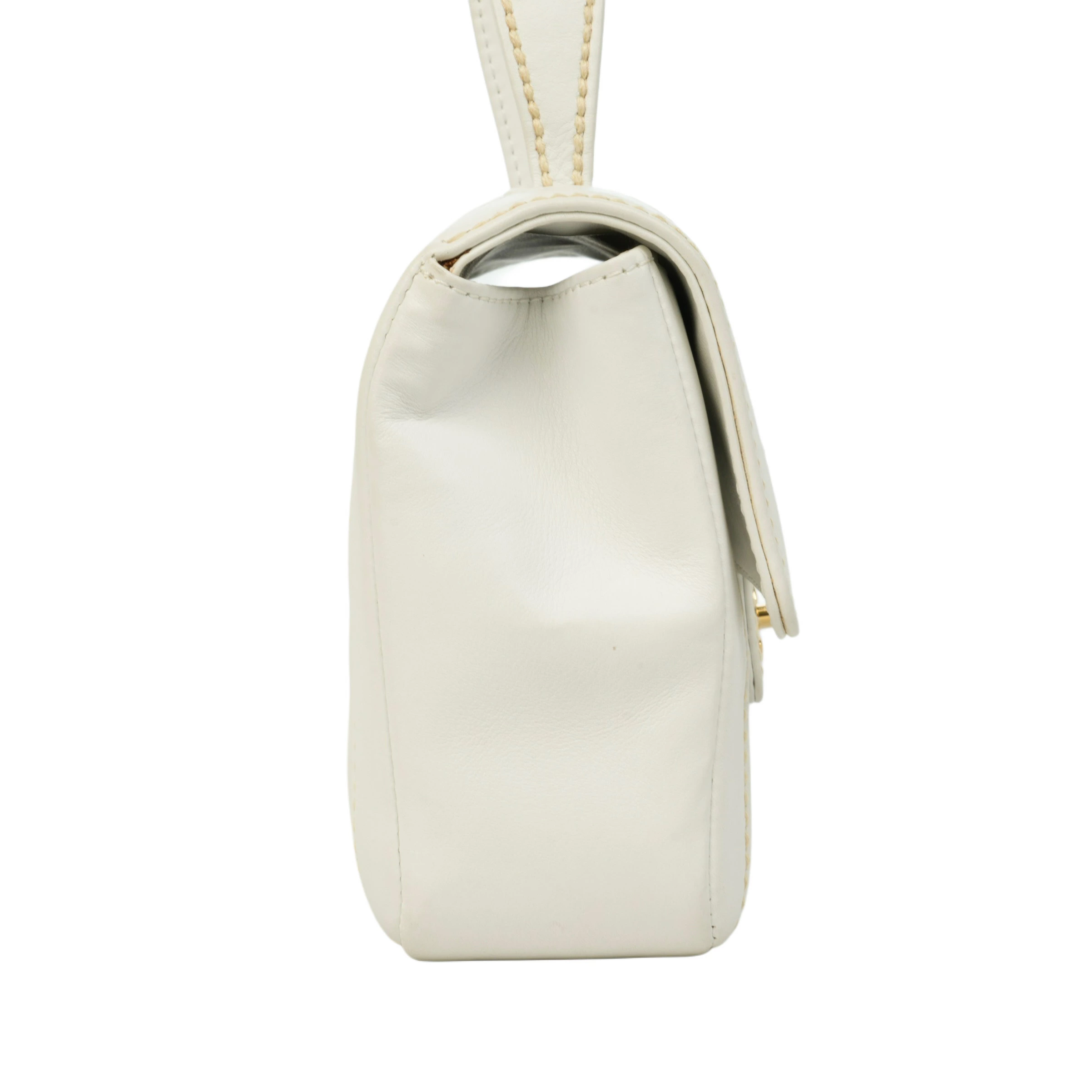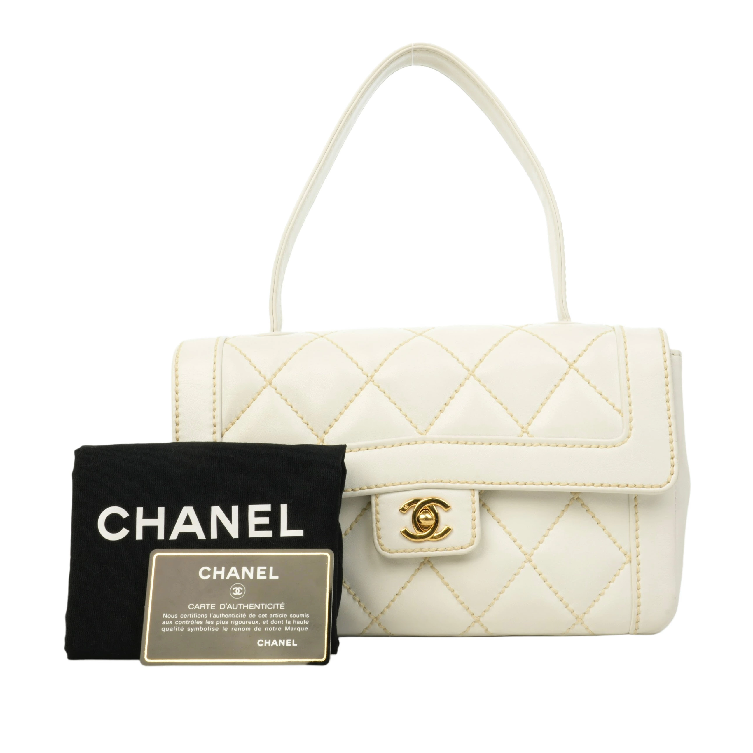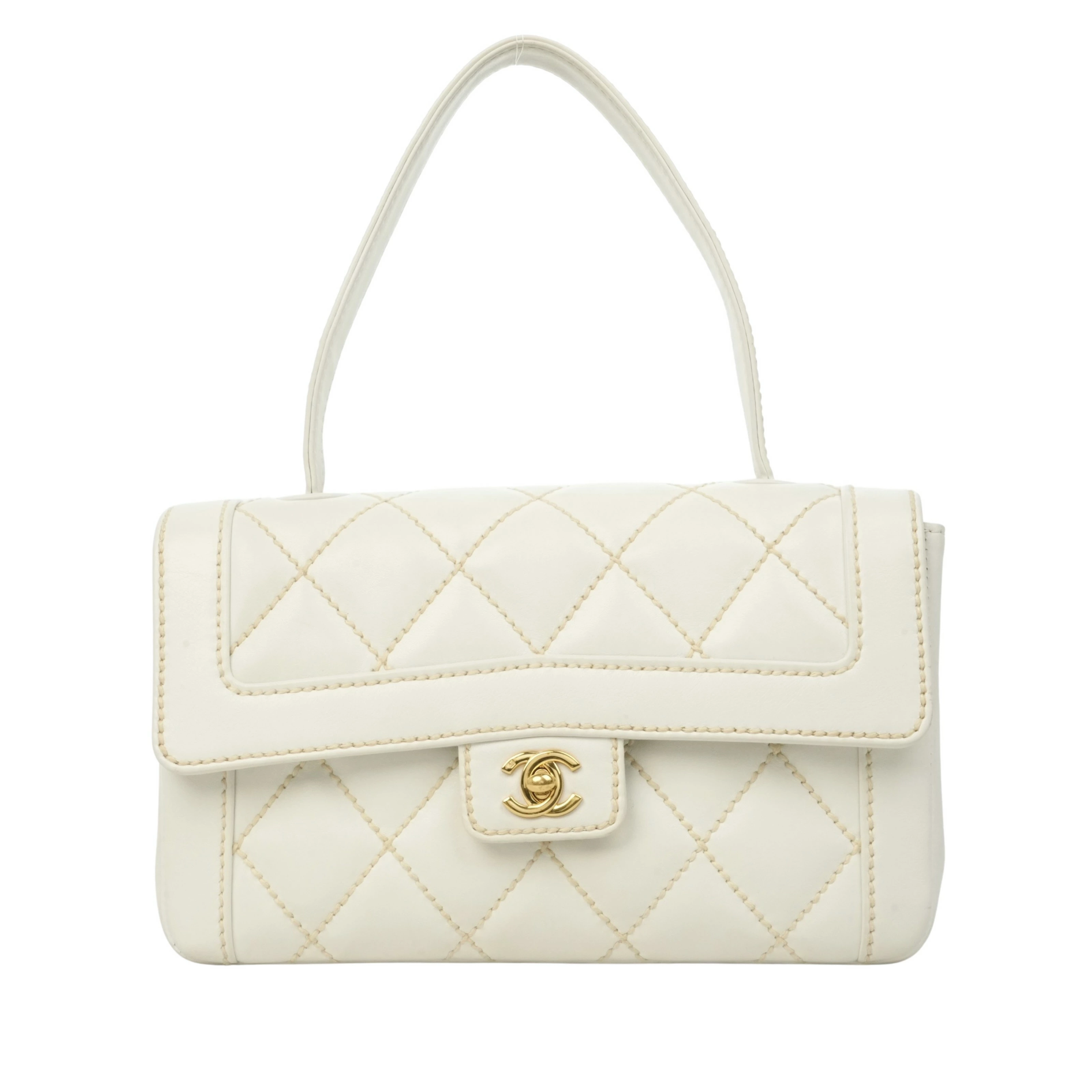 【中古・VINTAGE】 シャネル 2004-2005 マトラッセ ハンドバッグ ホワイト ゴールド レザー ヴィンテージ CHANEL 2004-2005 Matelass? Handbag