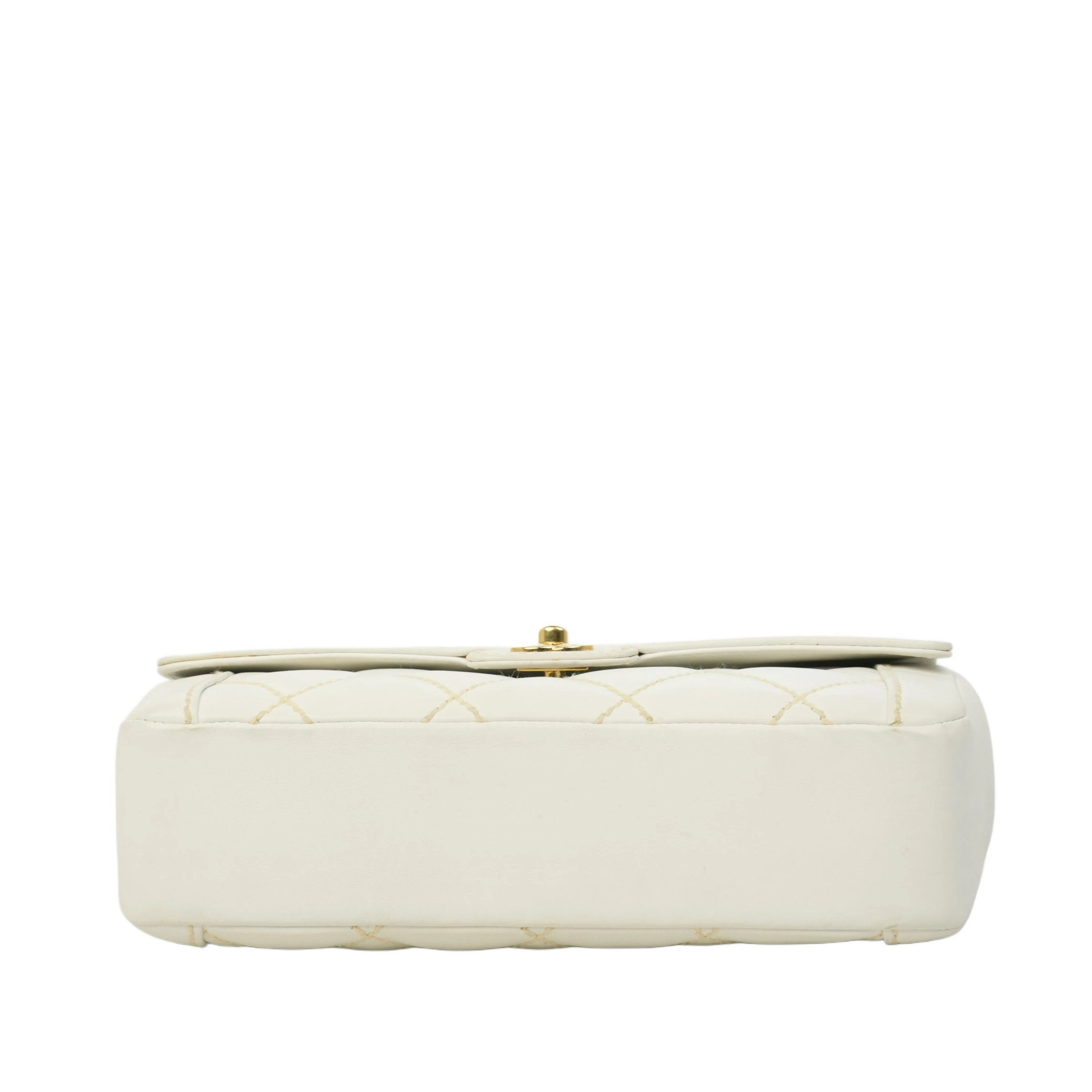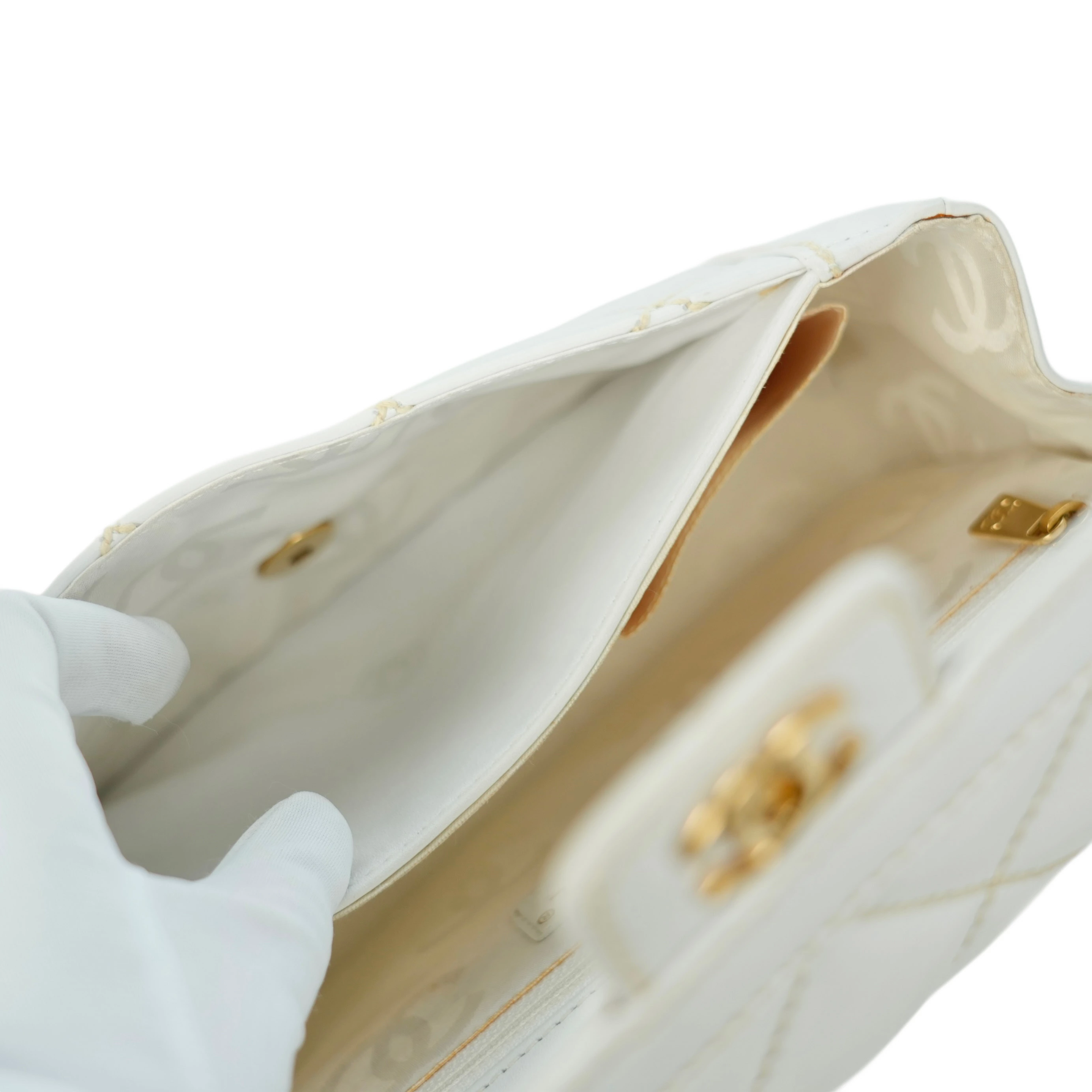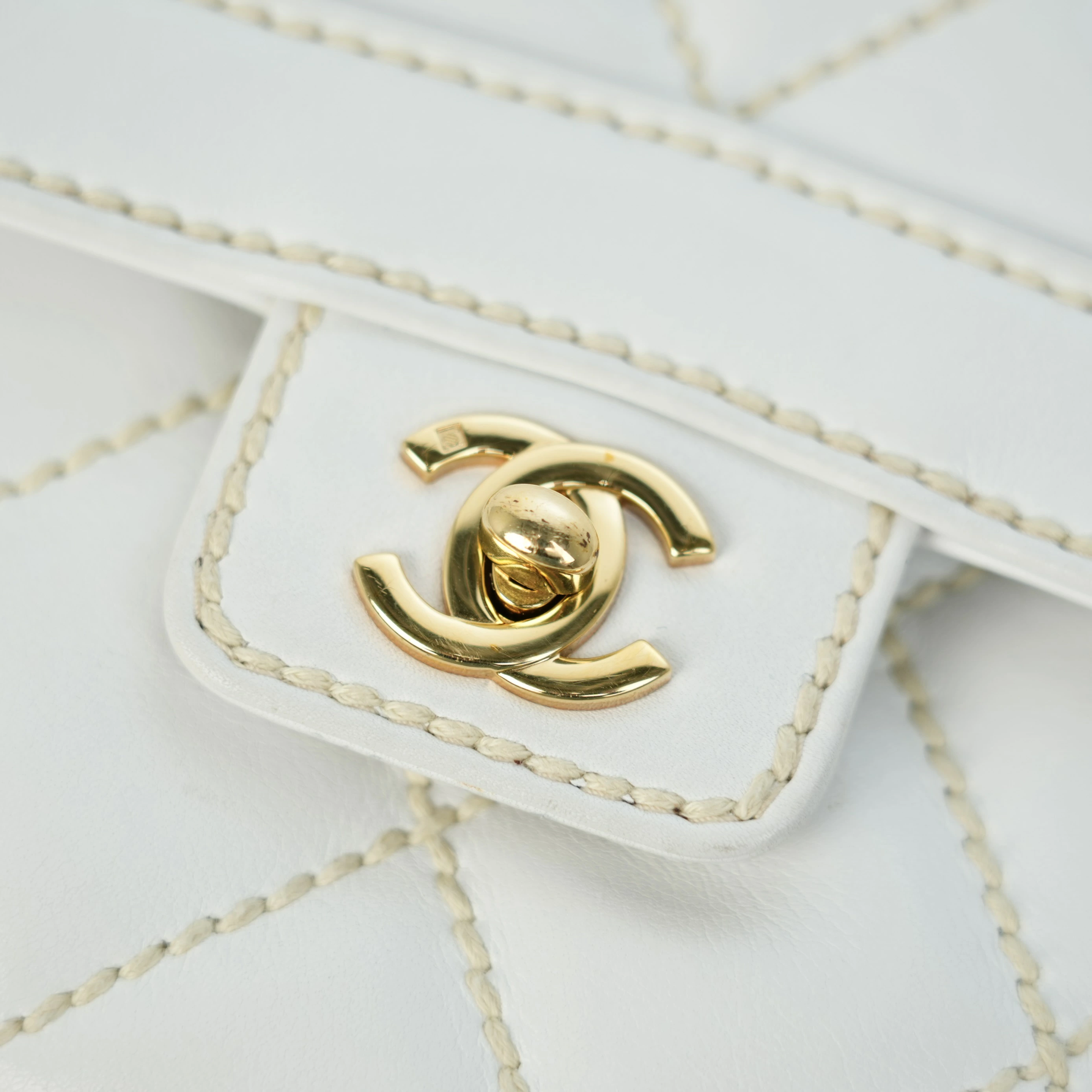 【中古・VINTAGE】 シャネル 2004-2005 マトラッセ ハンドバッグ ホワイト ゴールド レザー ヴィンテージ CHANEL 2004-2005 Matelass? Handbag