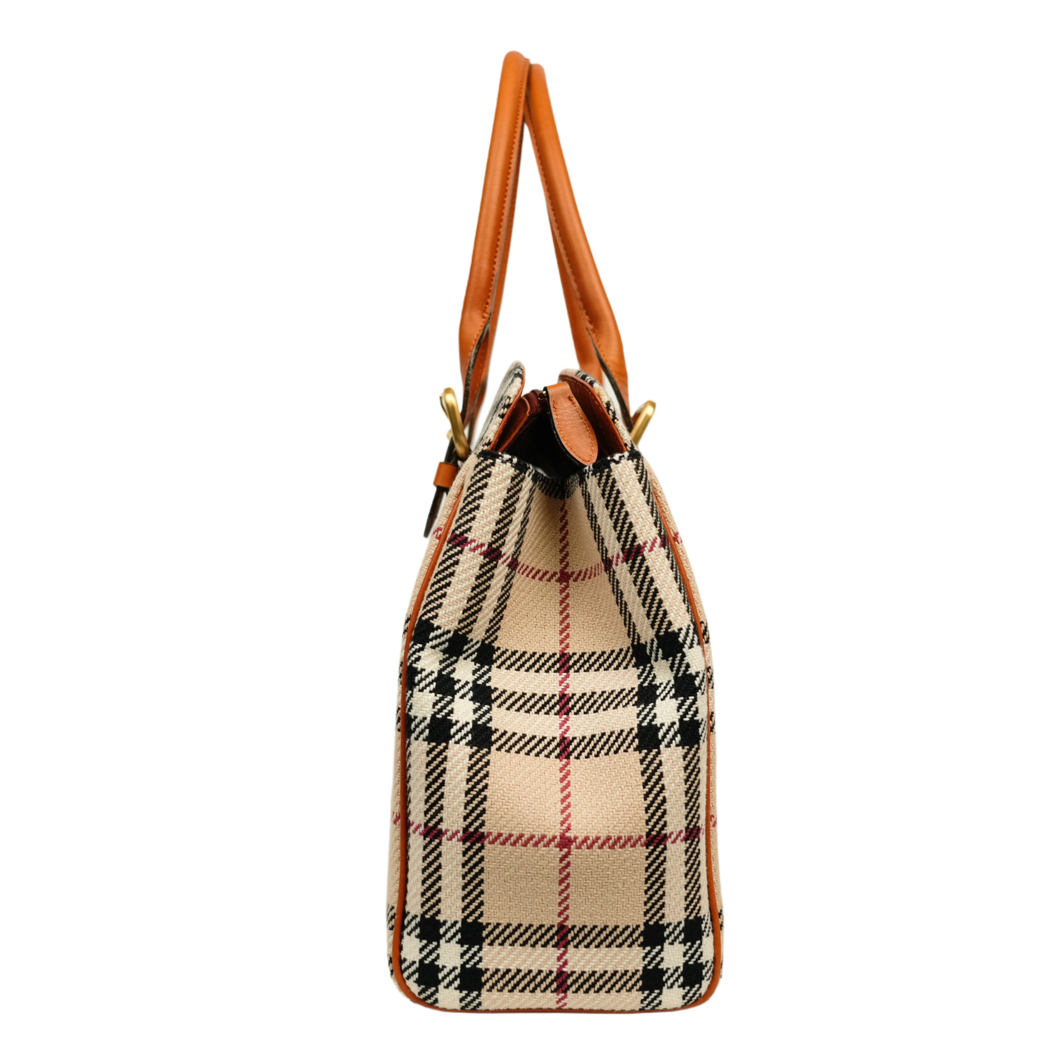 【中古・VINTAGE】 BURBERRY バーバリー ノバチェック ハンドバッグ ベージュ ブラウン ゴールド レザー ヴィンテージ Nova Check Handbag