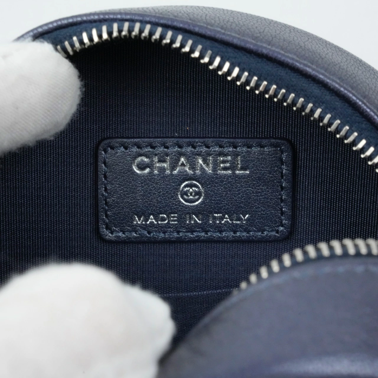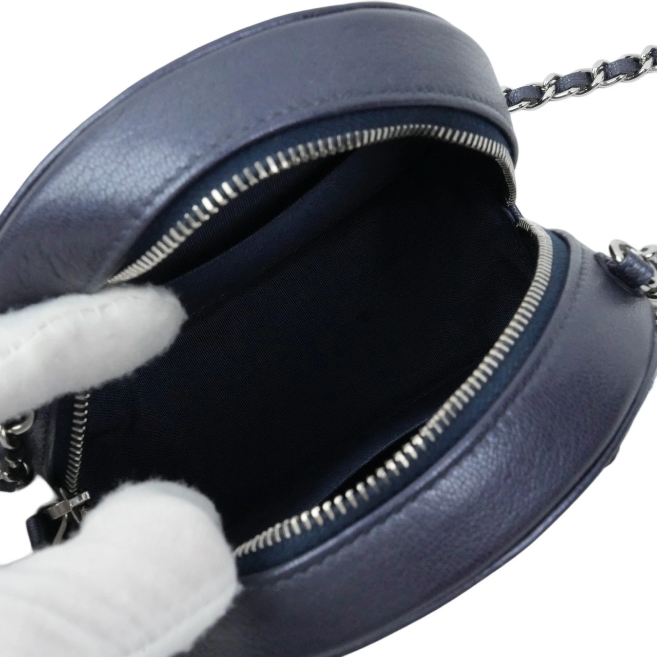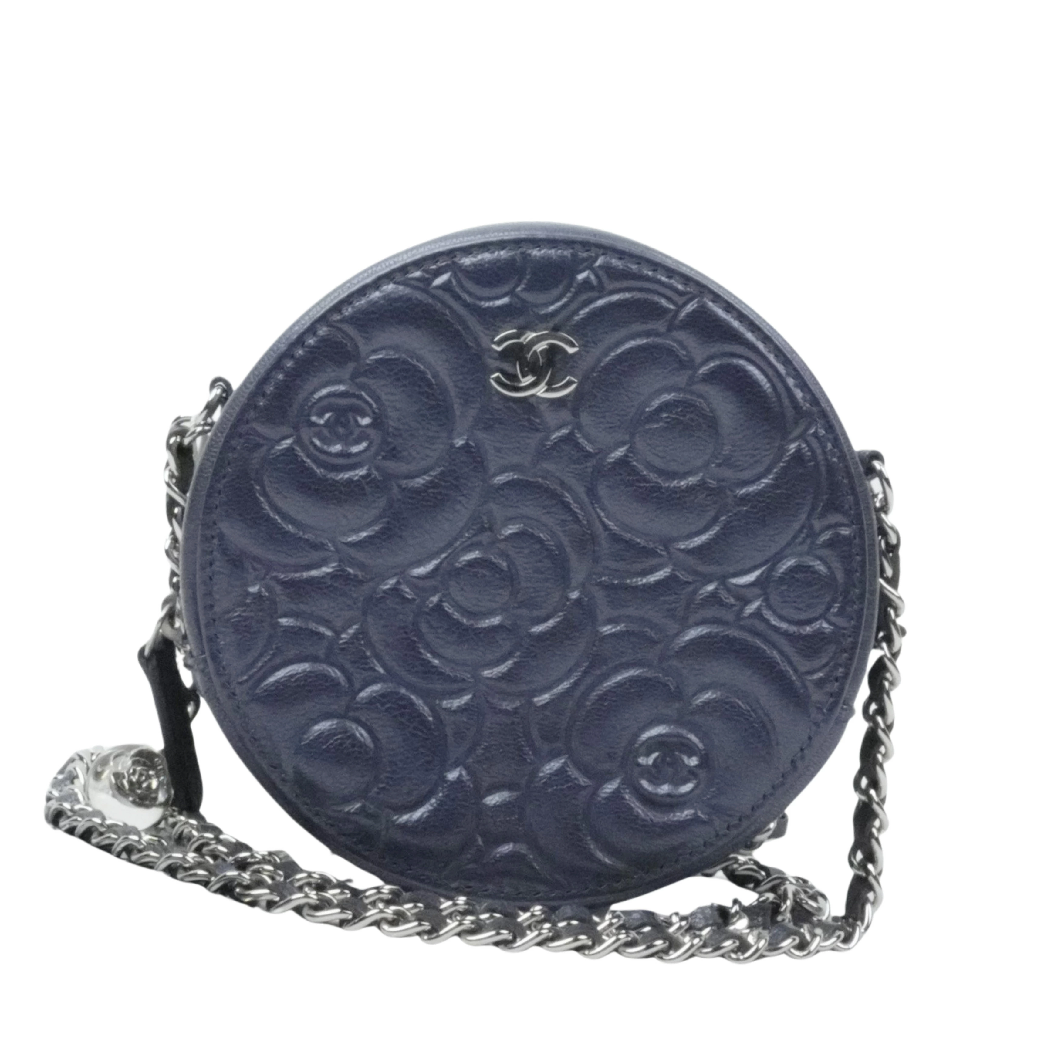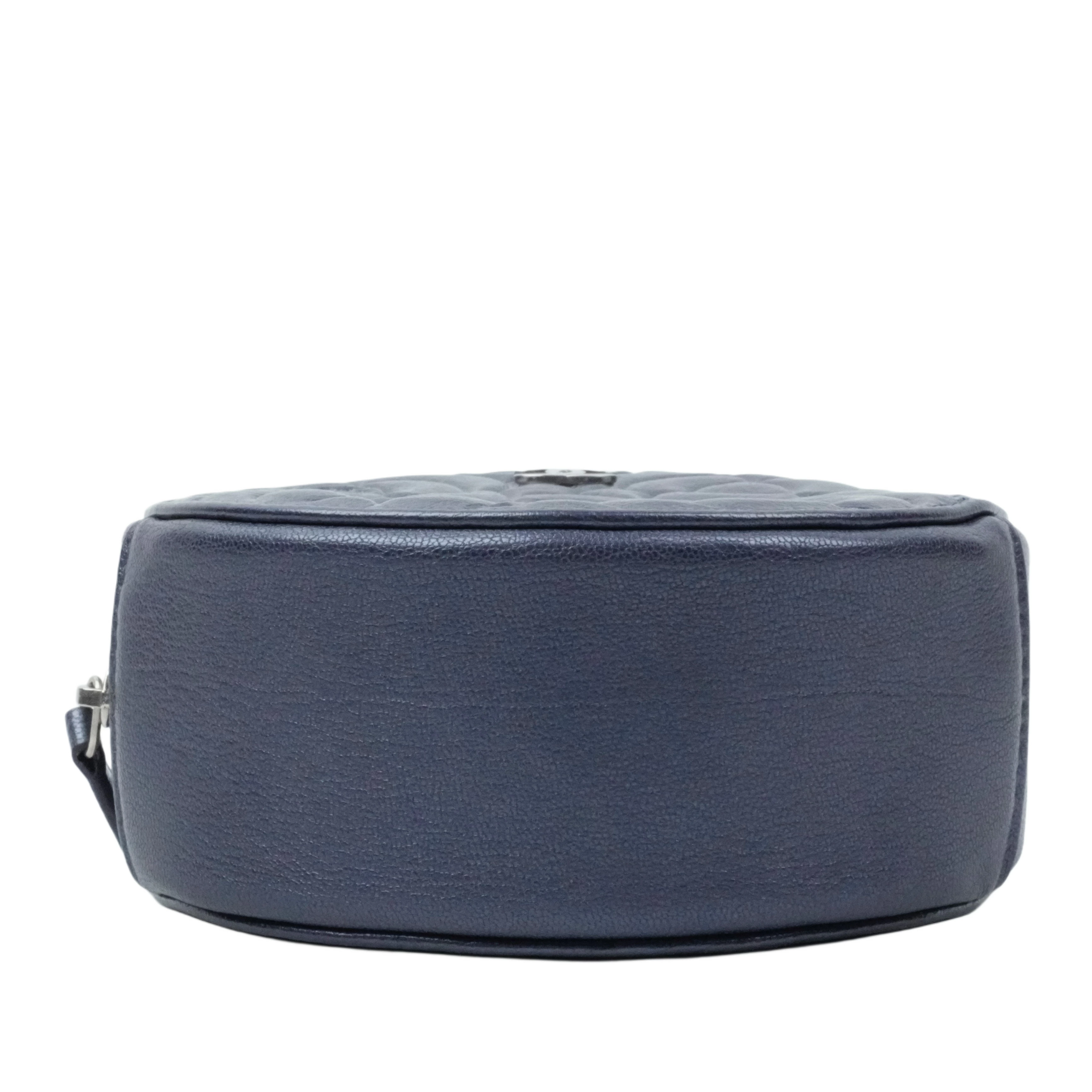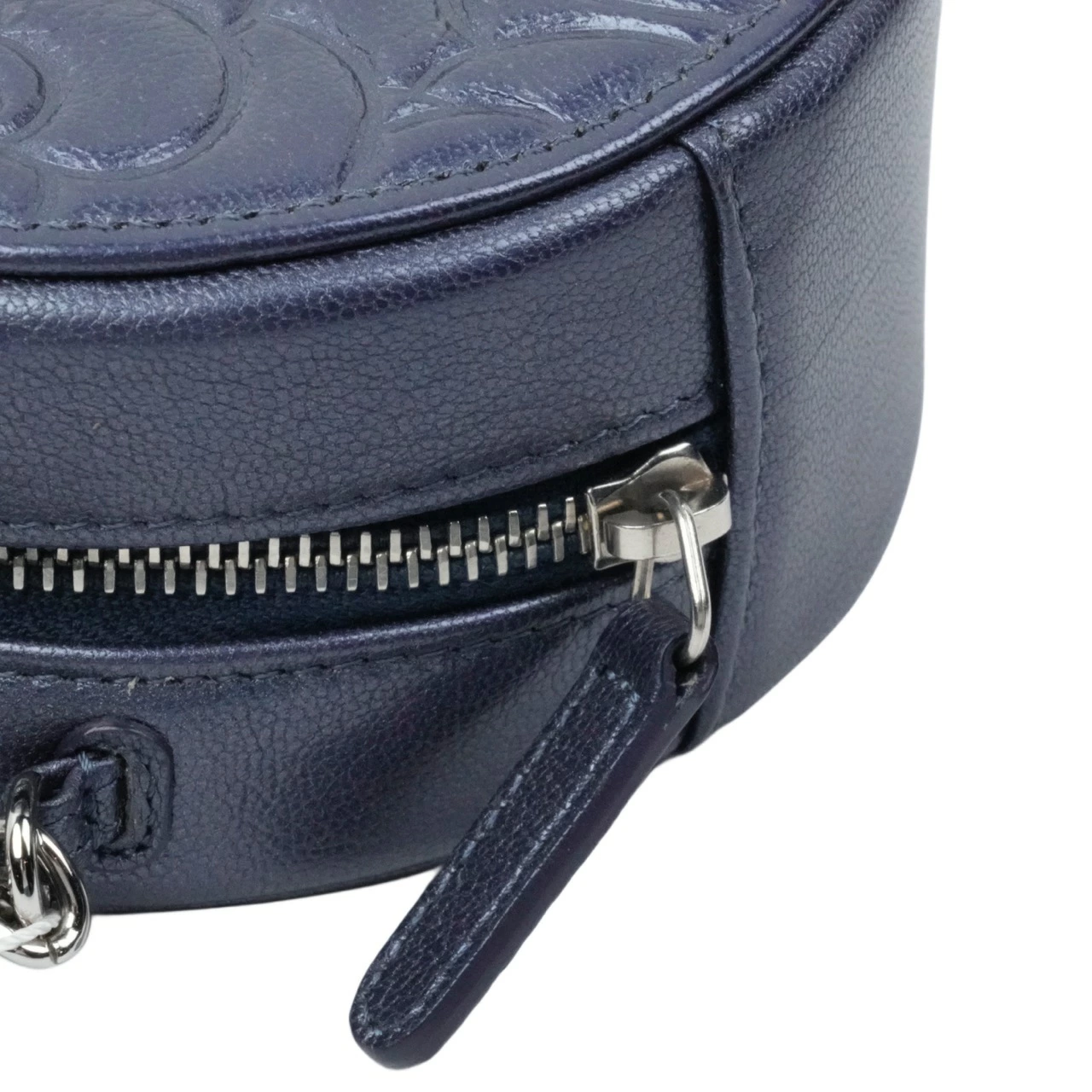 【中古・VINTAGE】 CHANEL シャネル カメリアラウンド ショルダーバッグ ブルー シルバー レザー Camellia Shoulder Bag