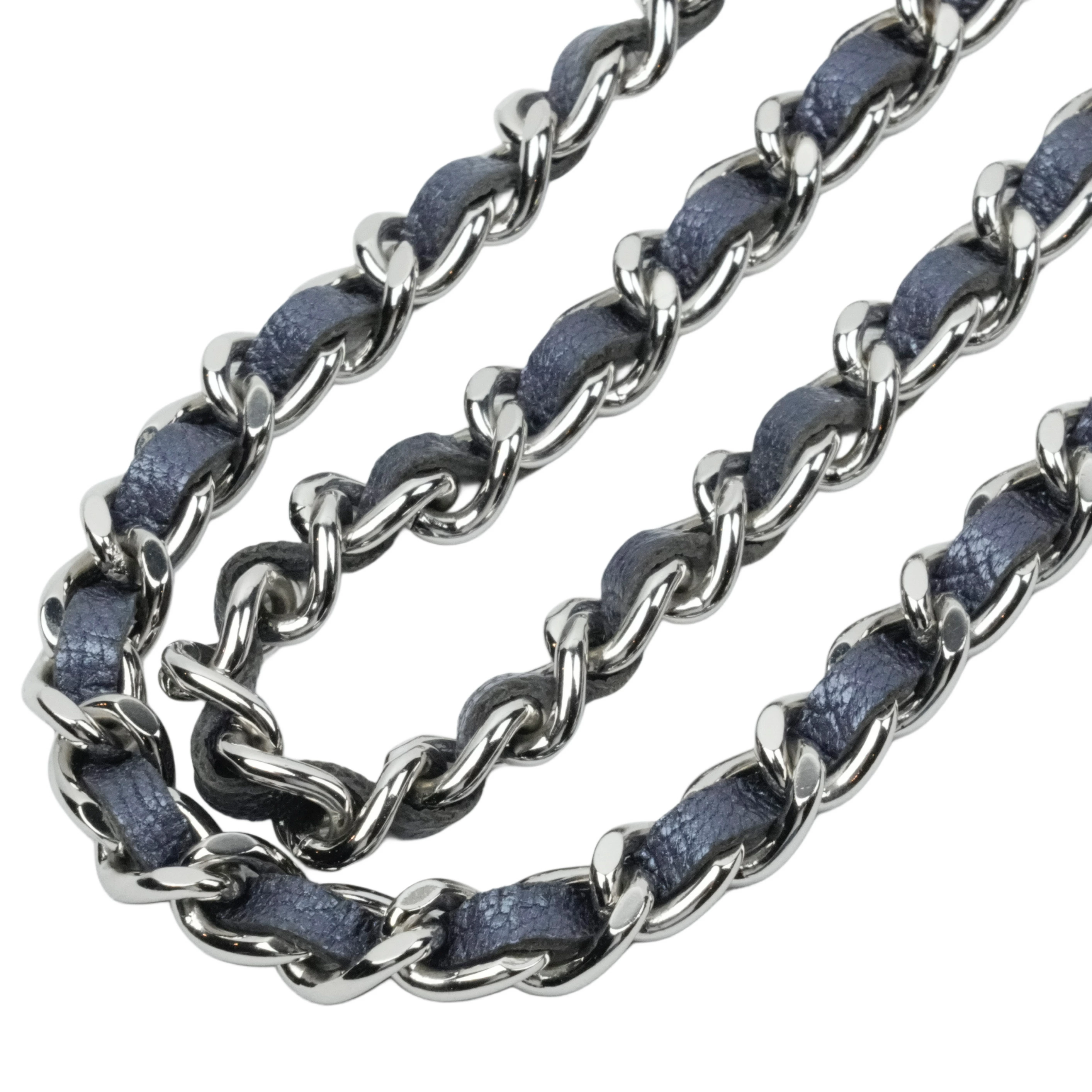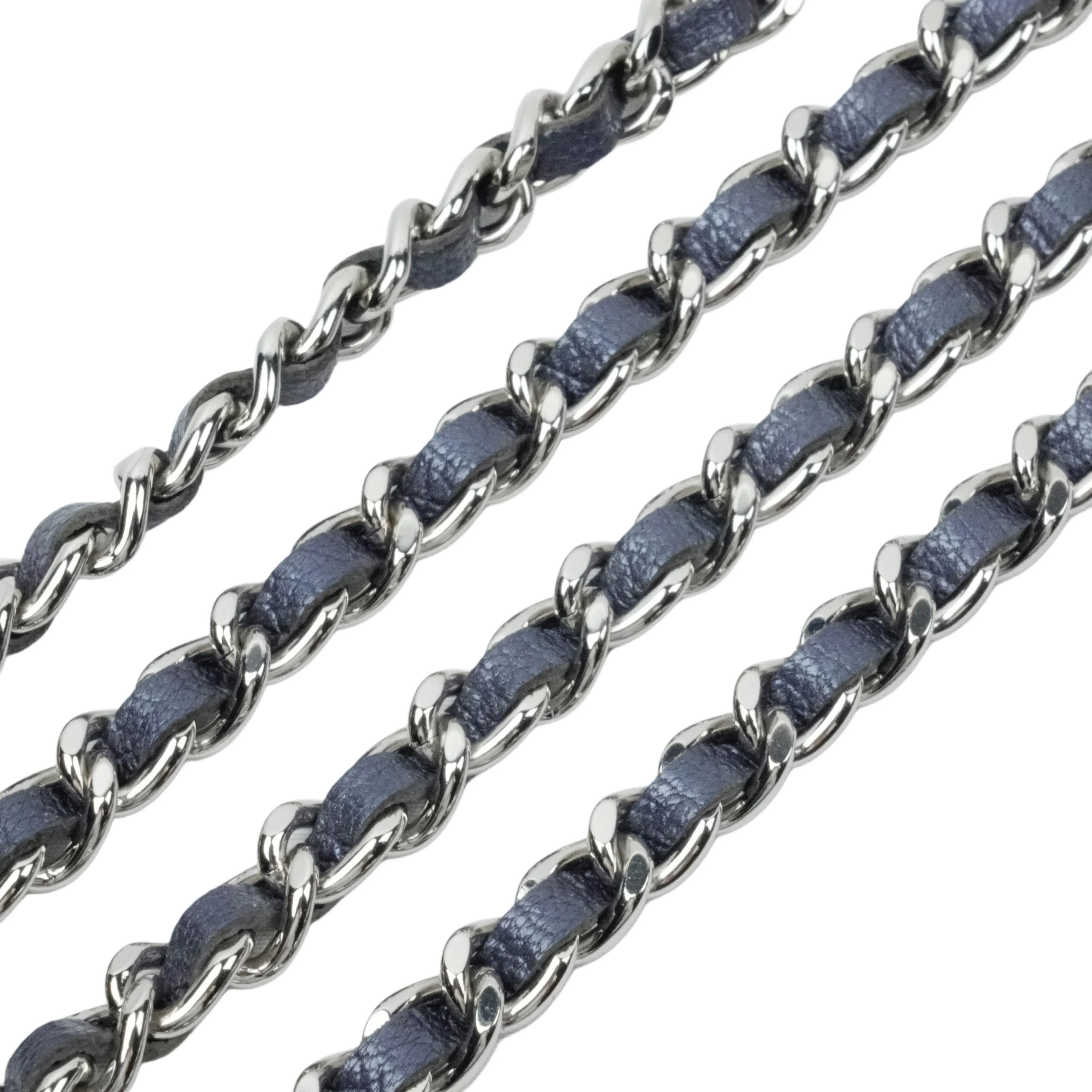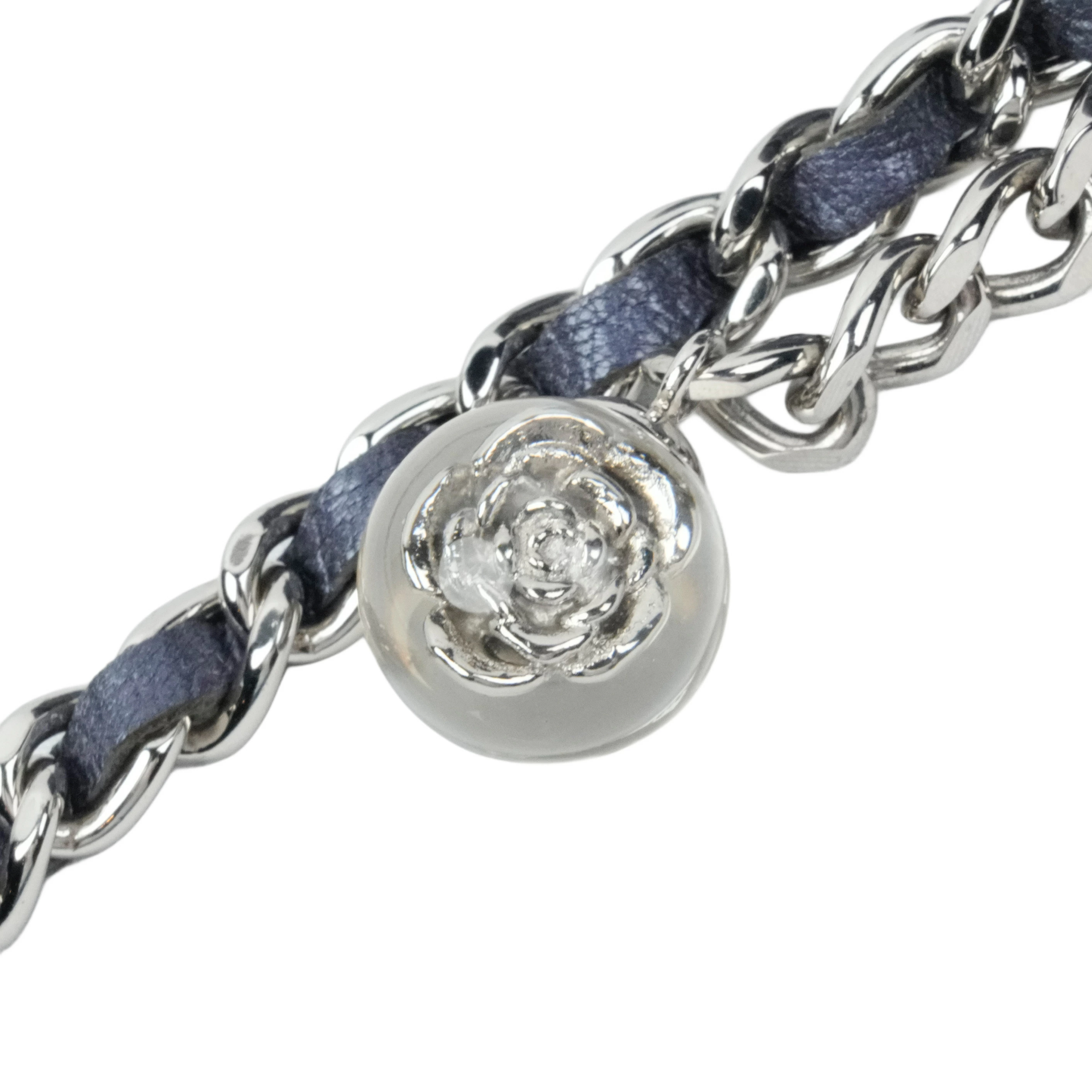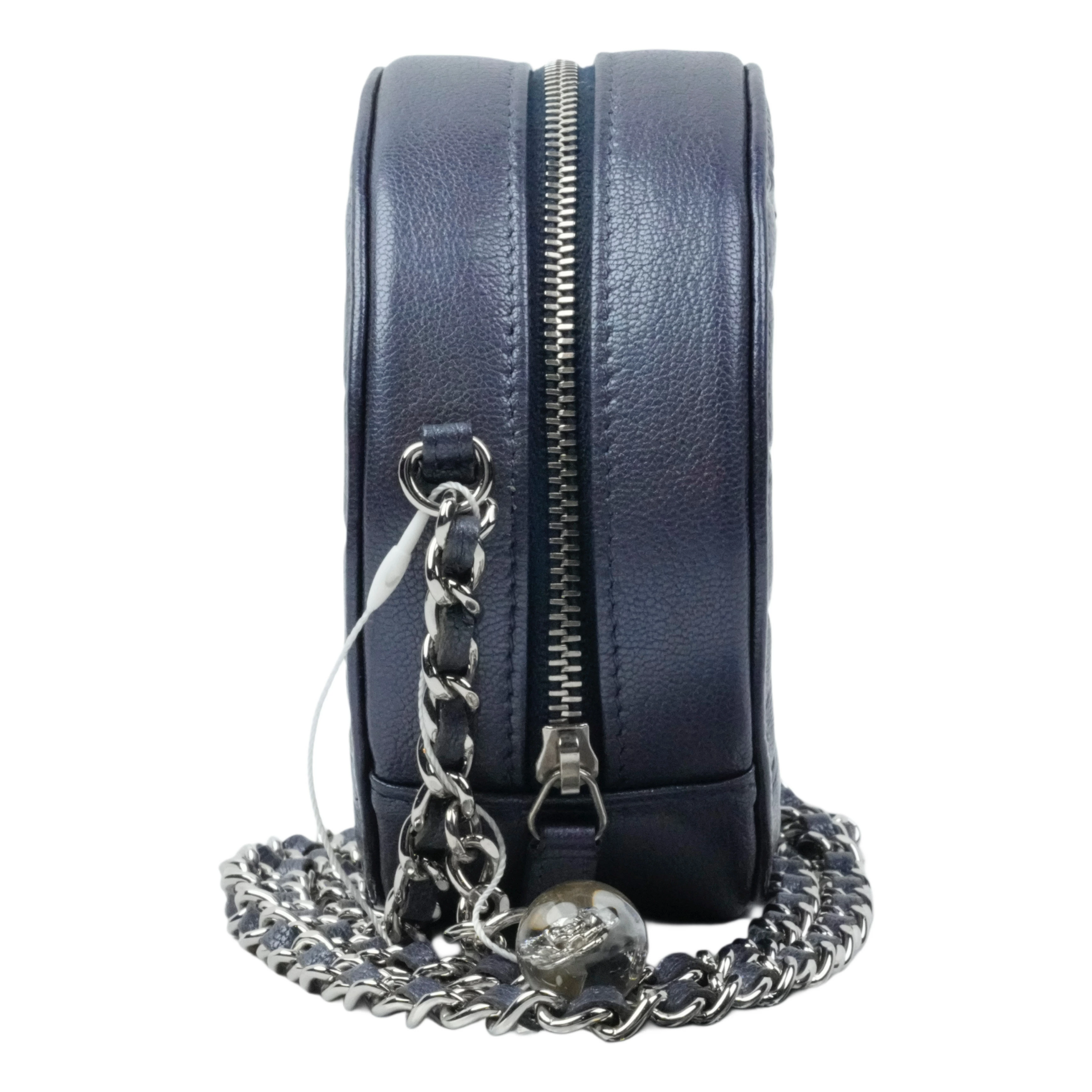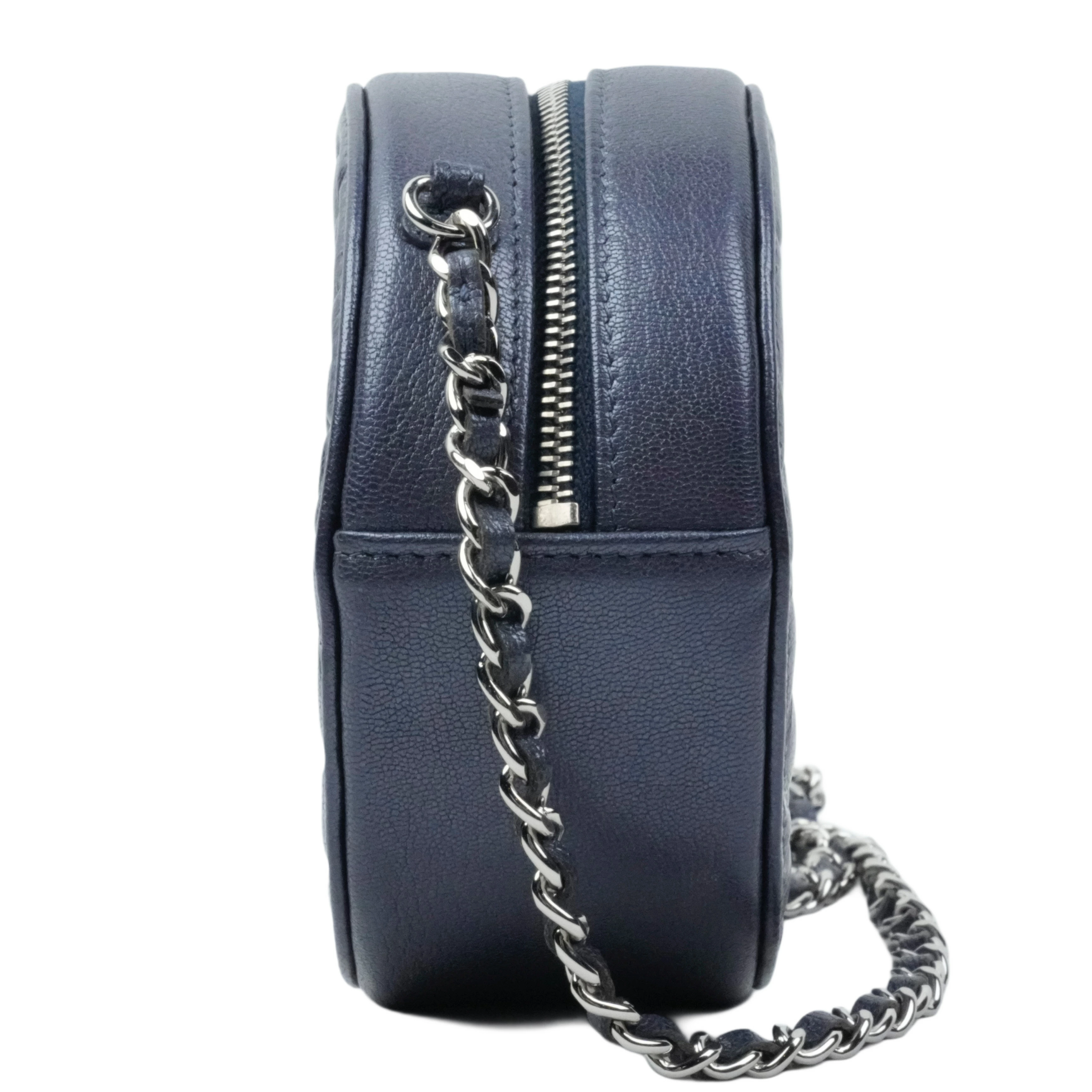【中古・VINTAGE】 CHANEL シャネル カメリアラウンド ショルダーバッグ ブルー シルバー レザー Camellia Shoulder Bag