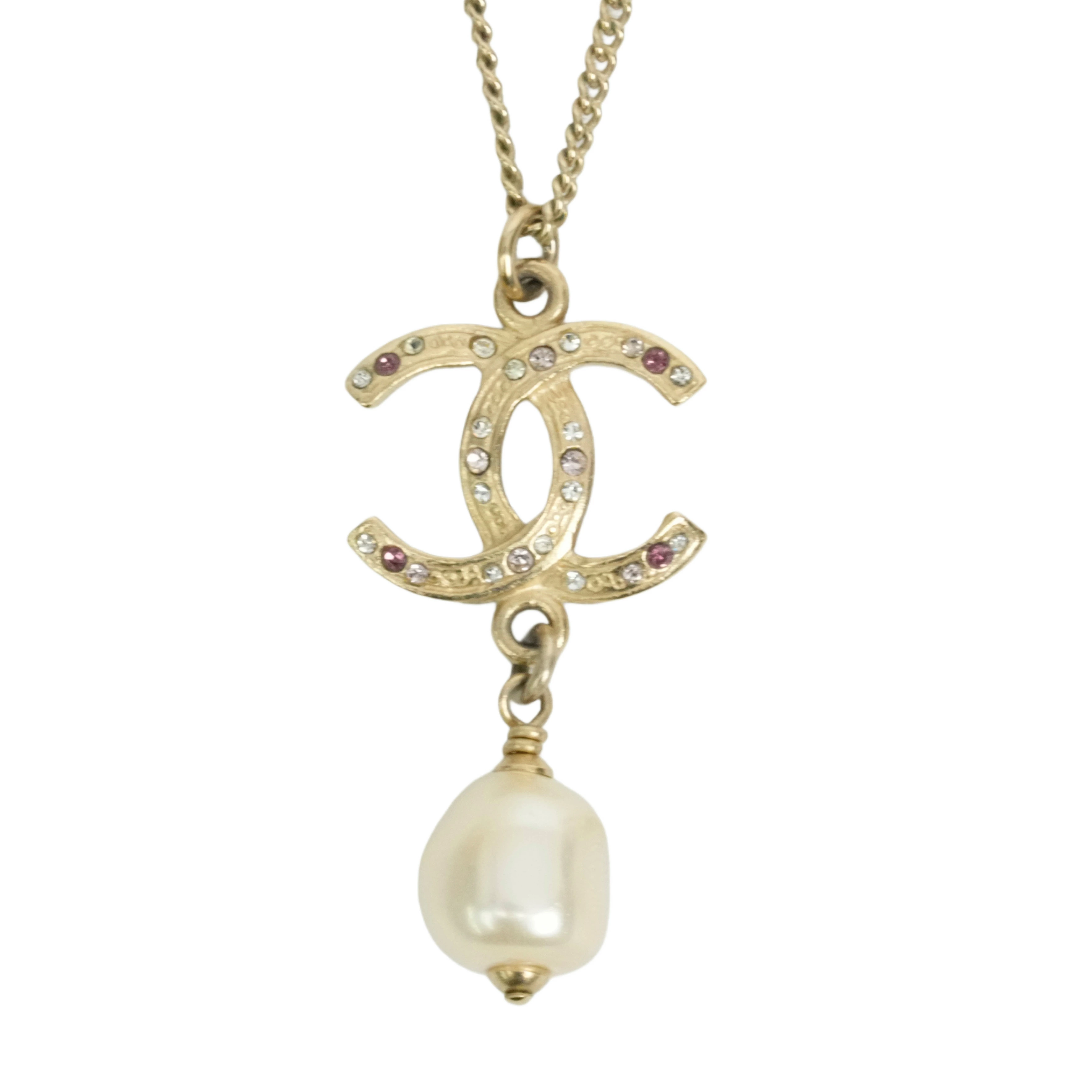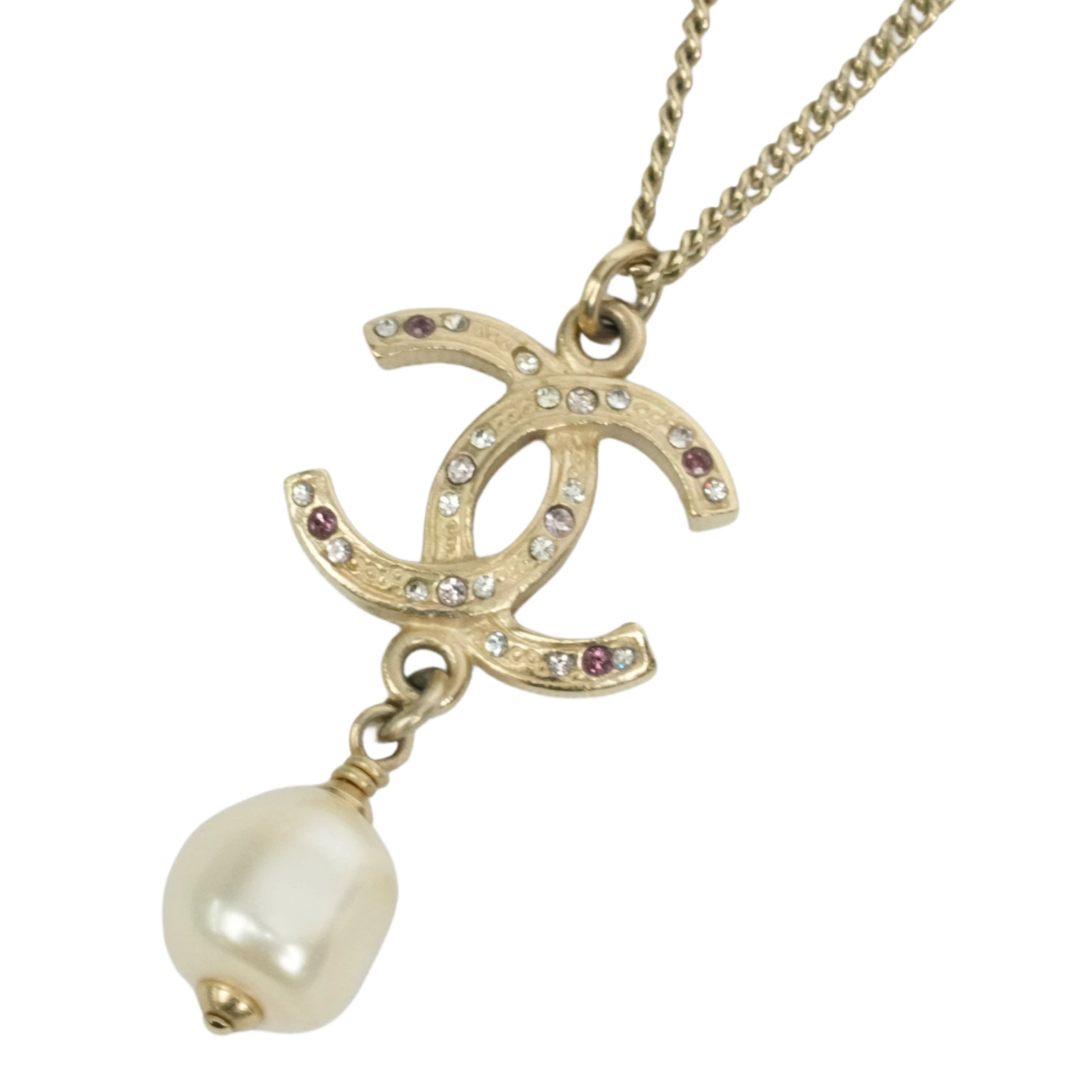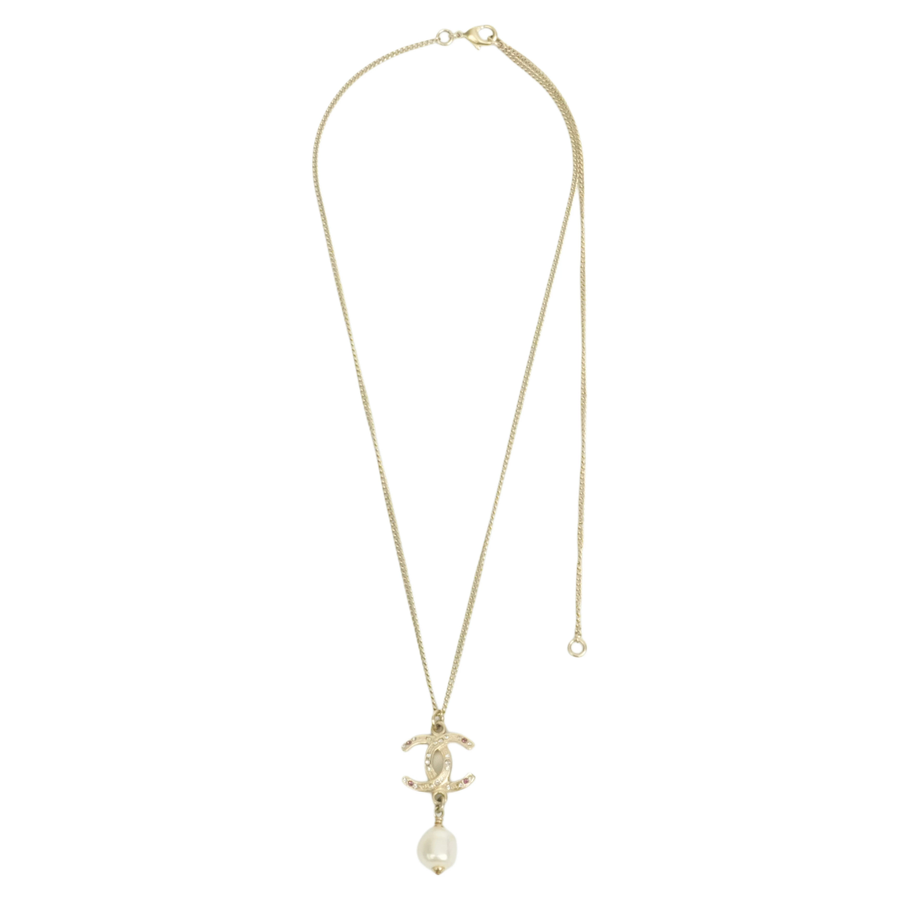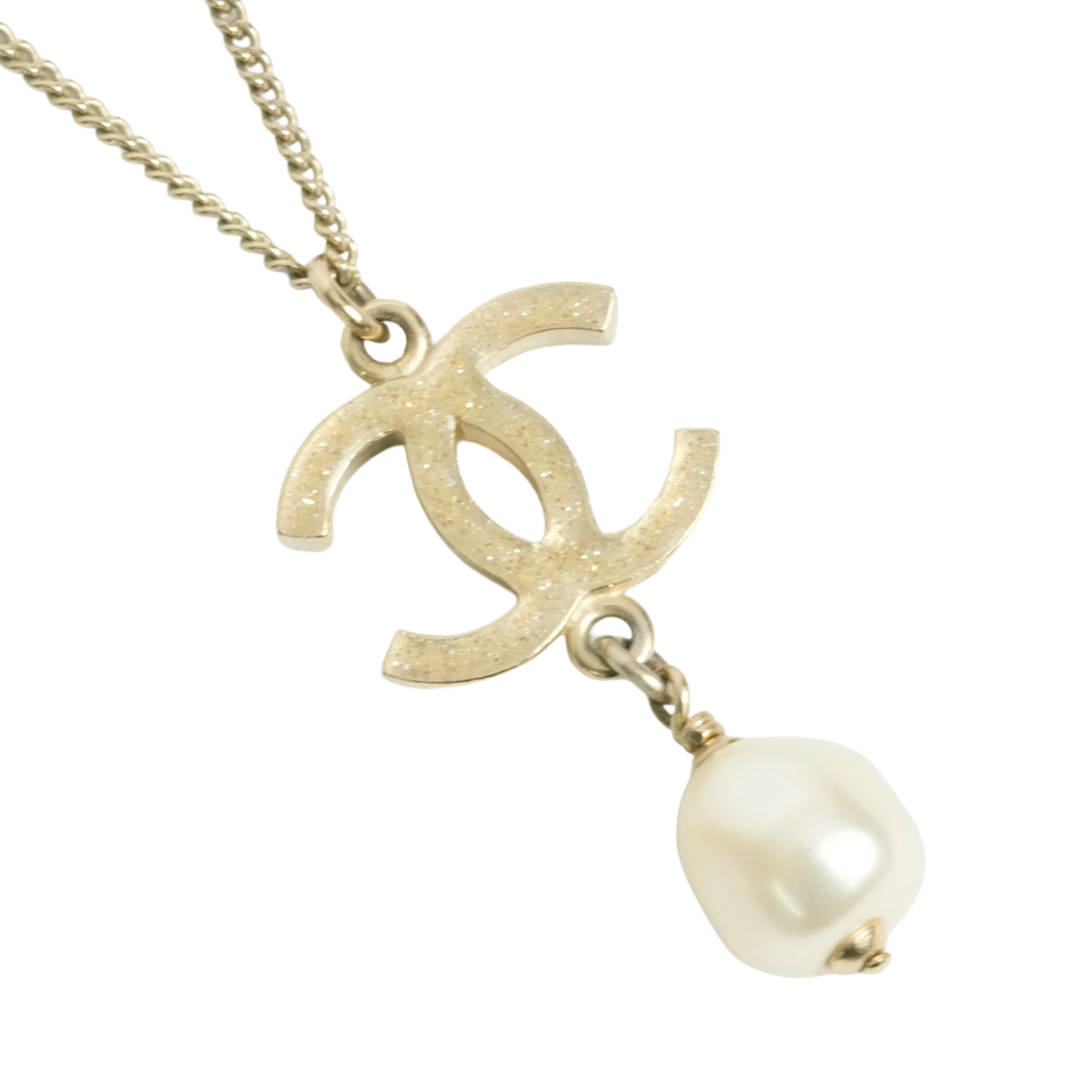 [Pre-owned/VINTAGE] CHANEL Coco Mark Necklace in Champagne Gold. Vintage Coco Mark Necklace.