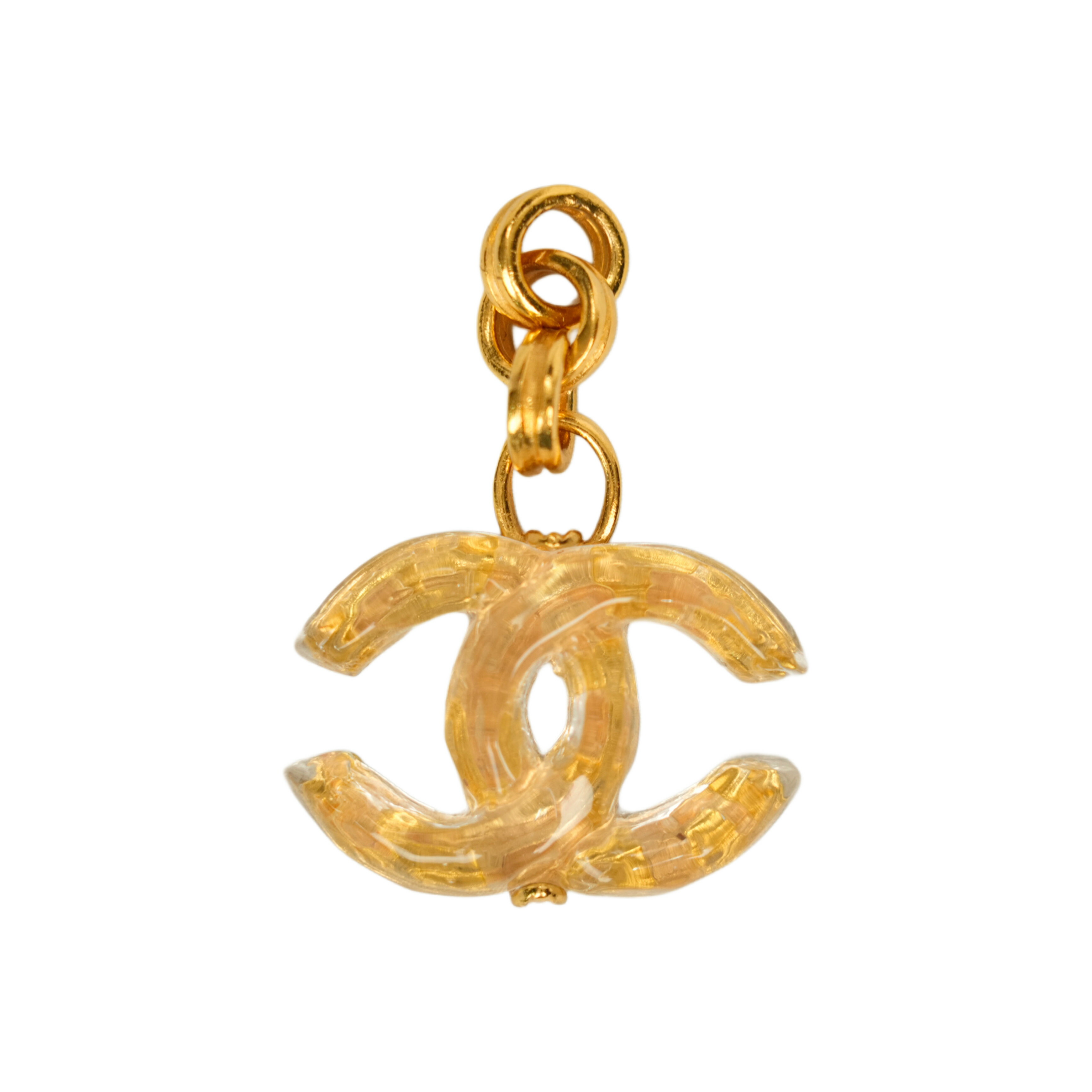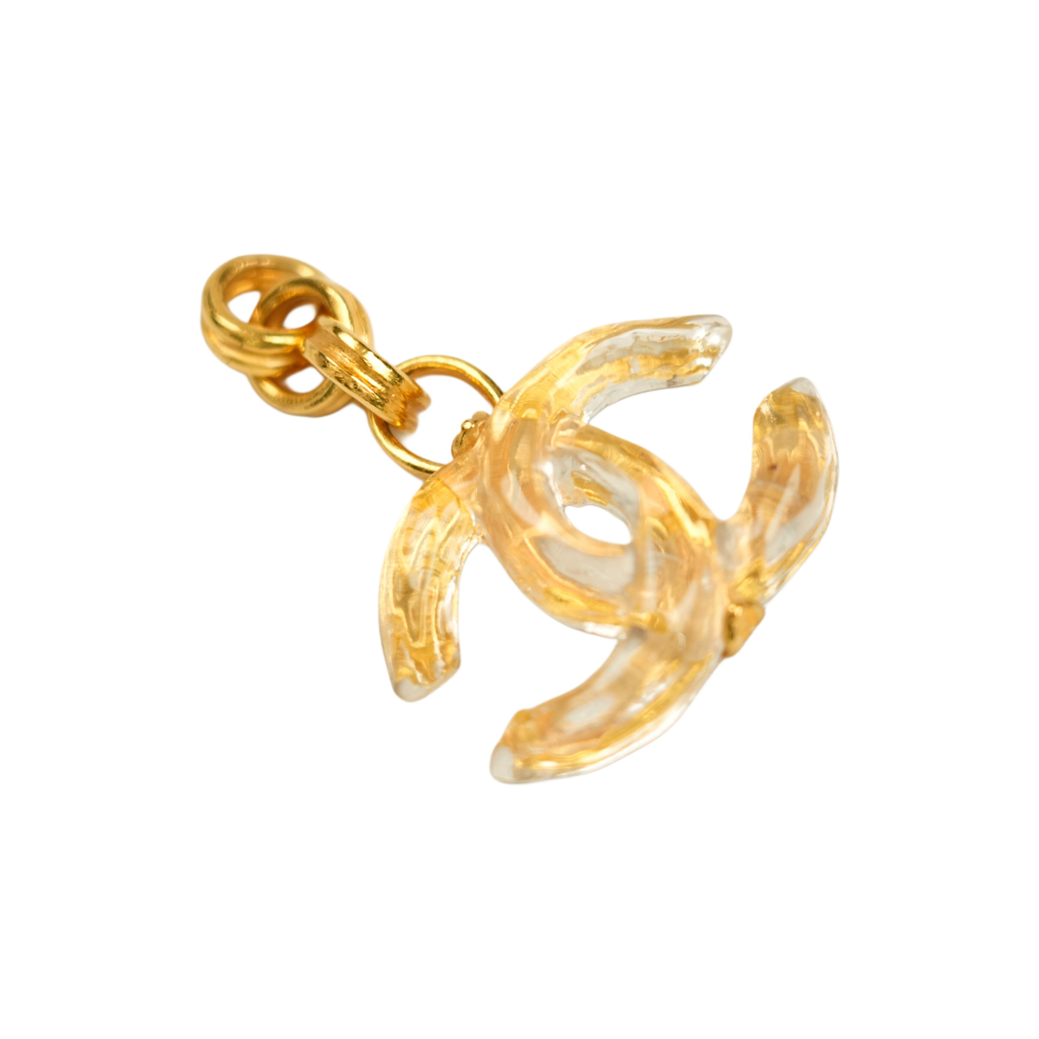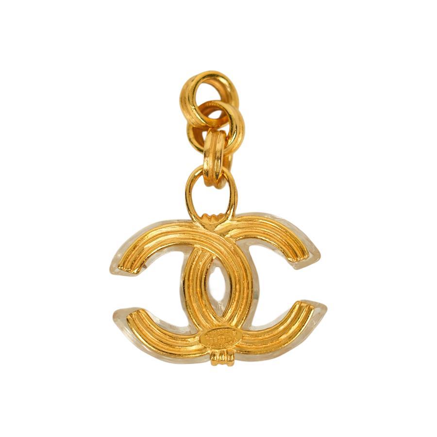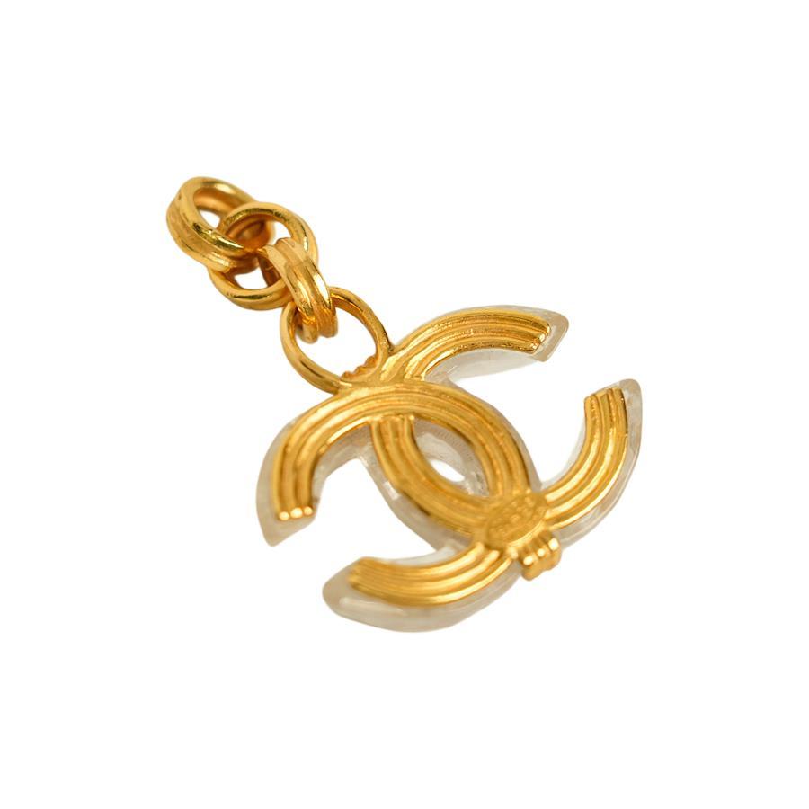 Pre-owned Vintage CHANEL Coco Mark Pendant Necklace in Gold and Clear.
