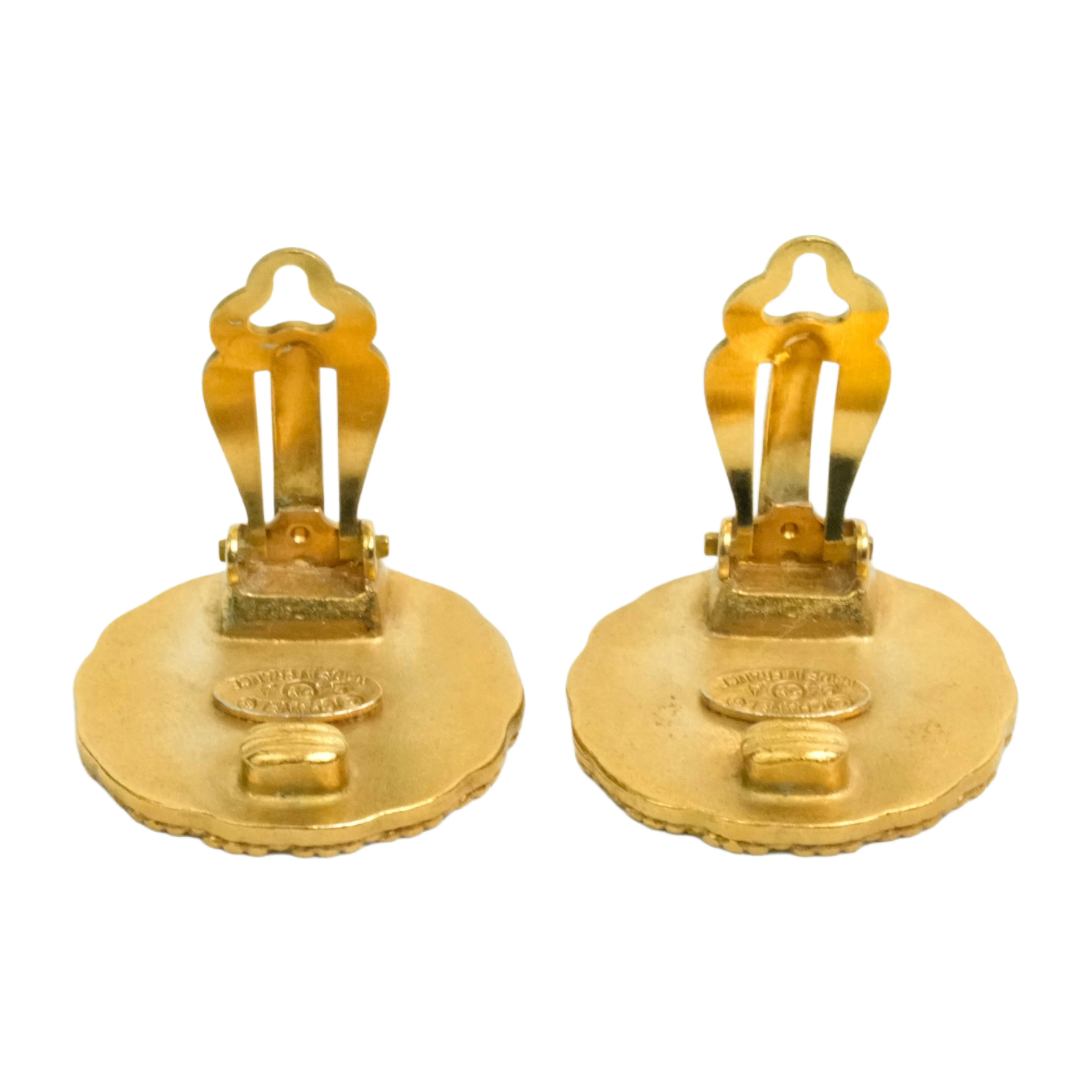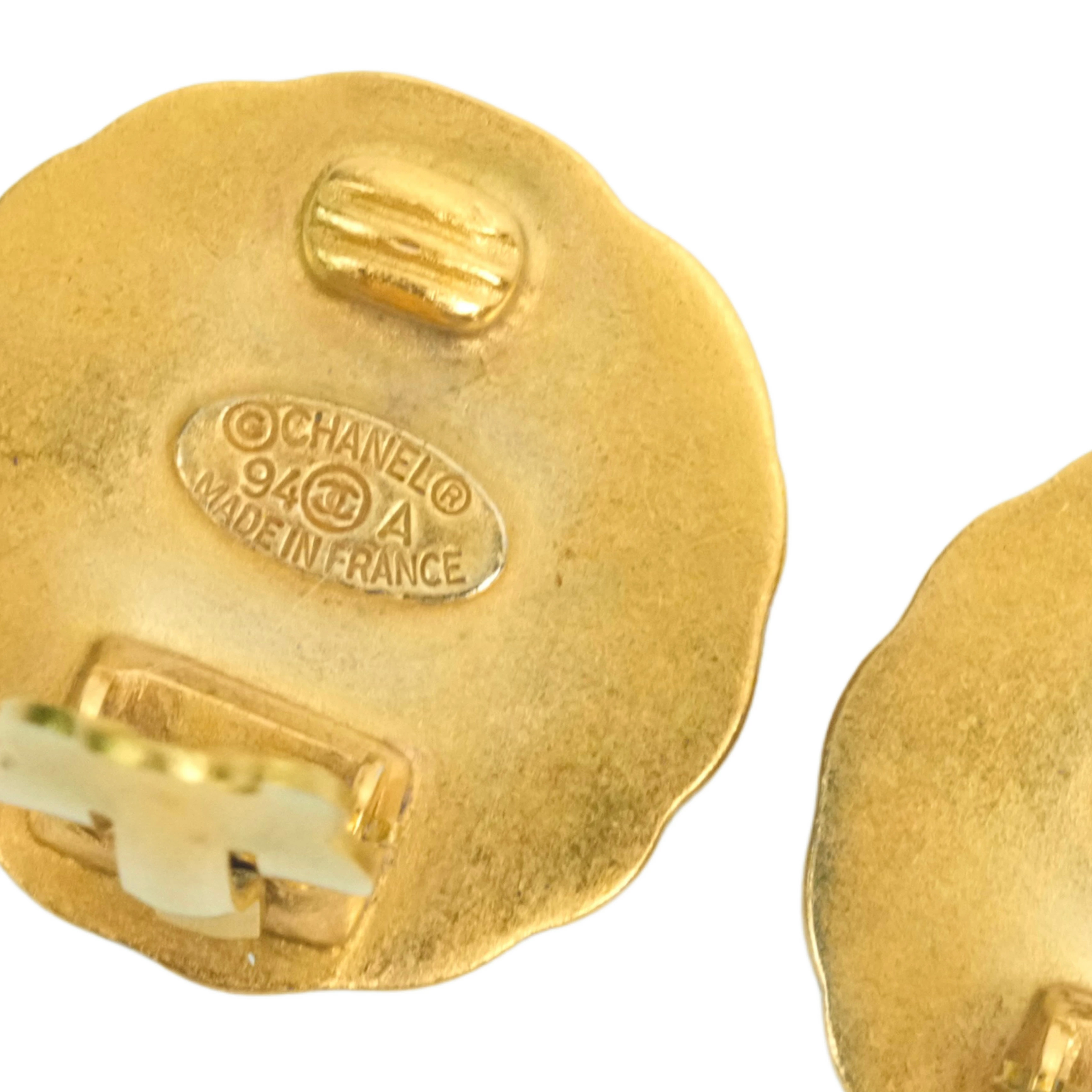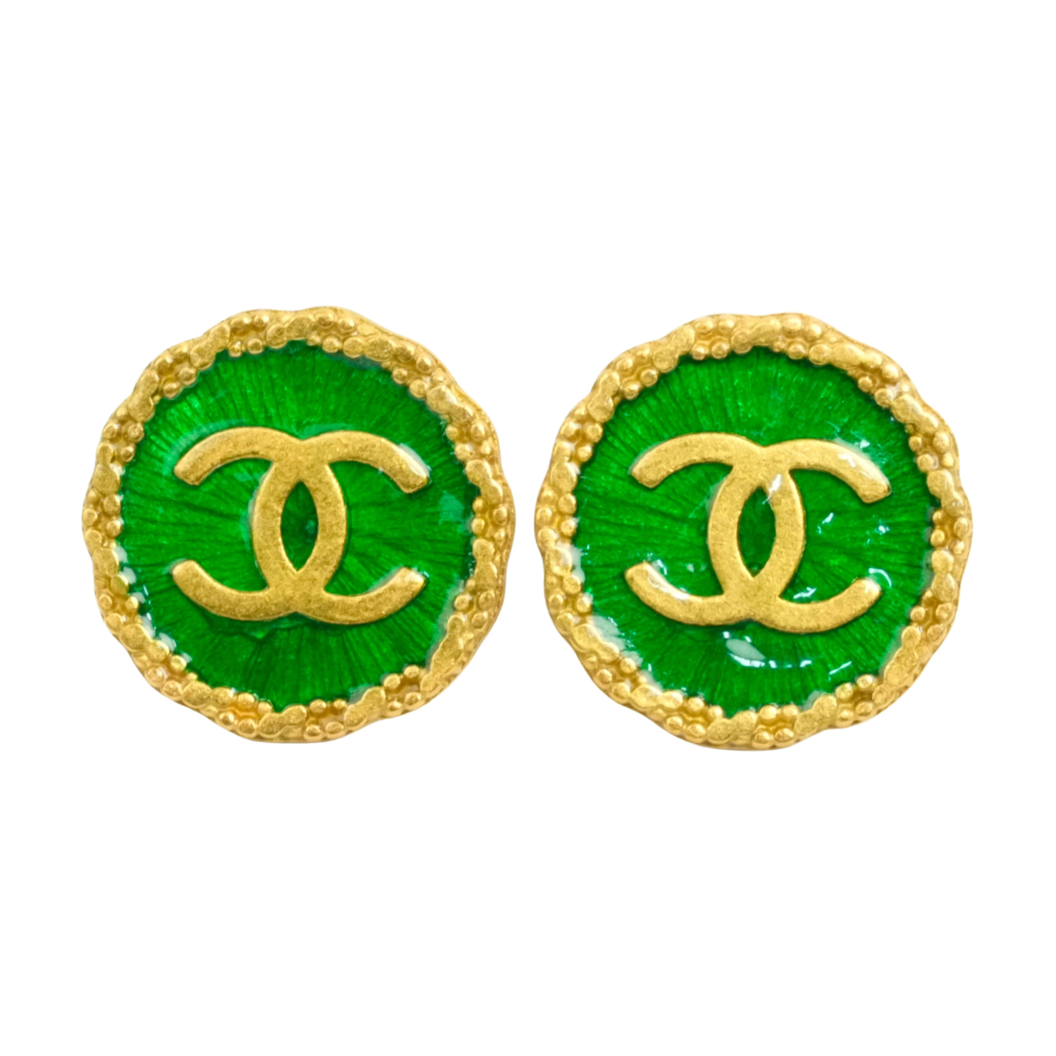 【中古・VINTAGE】 CHANEL シャネル ボタン ココマーク イヤリング グリーン ゴールド ヴィンテージ Button Coco Mark Earrings