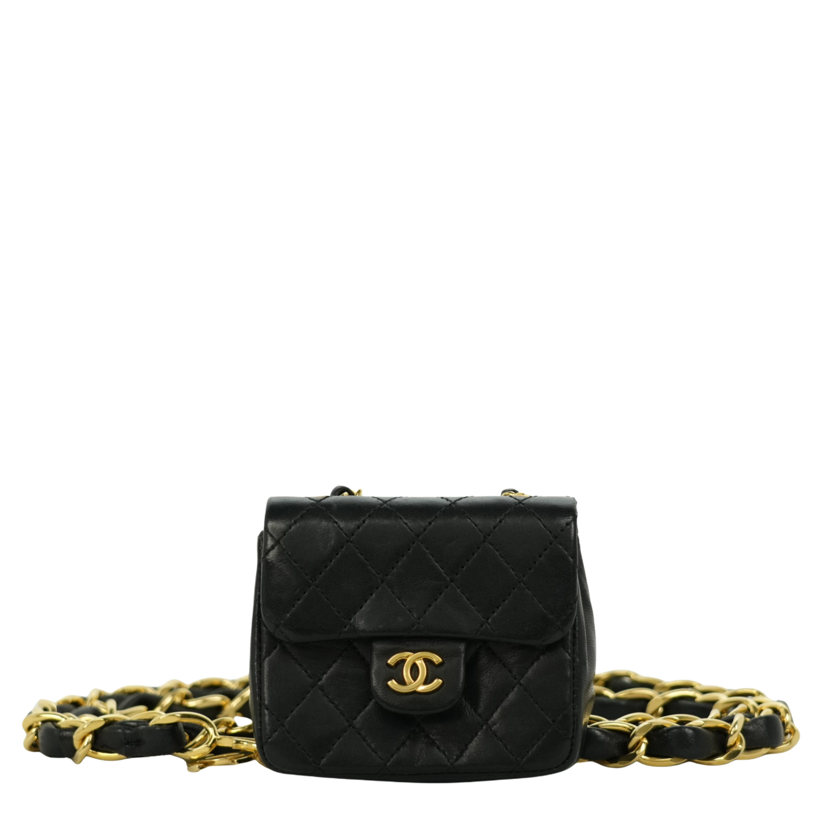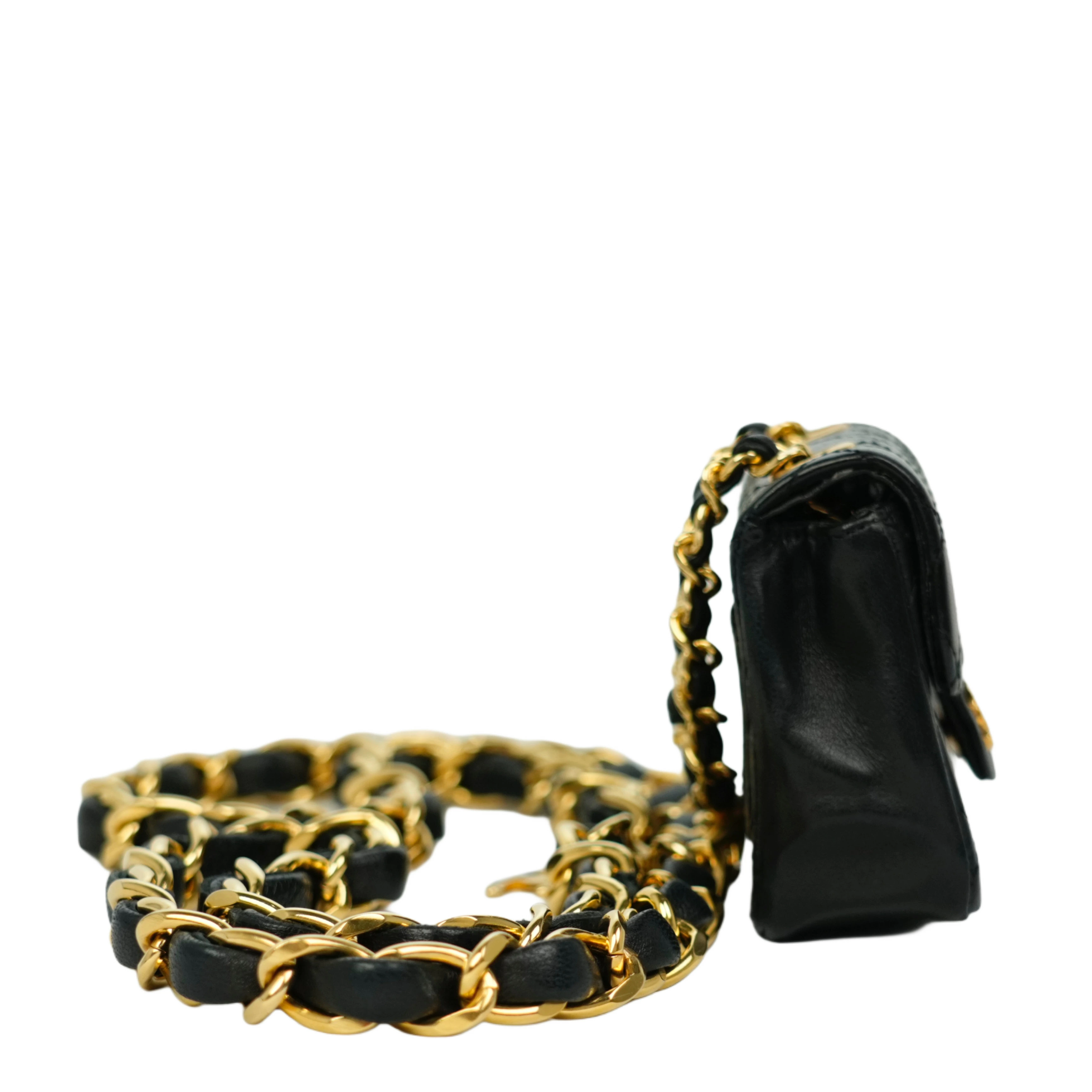 【中古・VINTAGE】 CHANEL シャネル ミニミニマトラッセ ラムスキン ベルトバッグ ブラック レザー ヴィンテージ Mini Mini Matelass? Lambskin Belt Bag