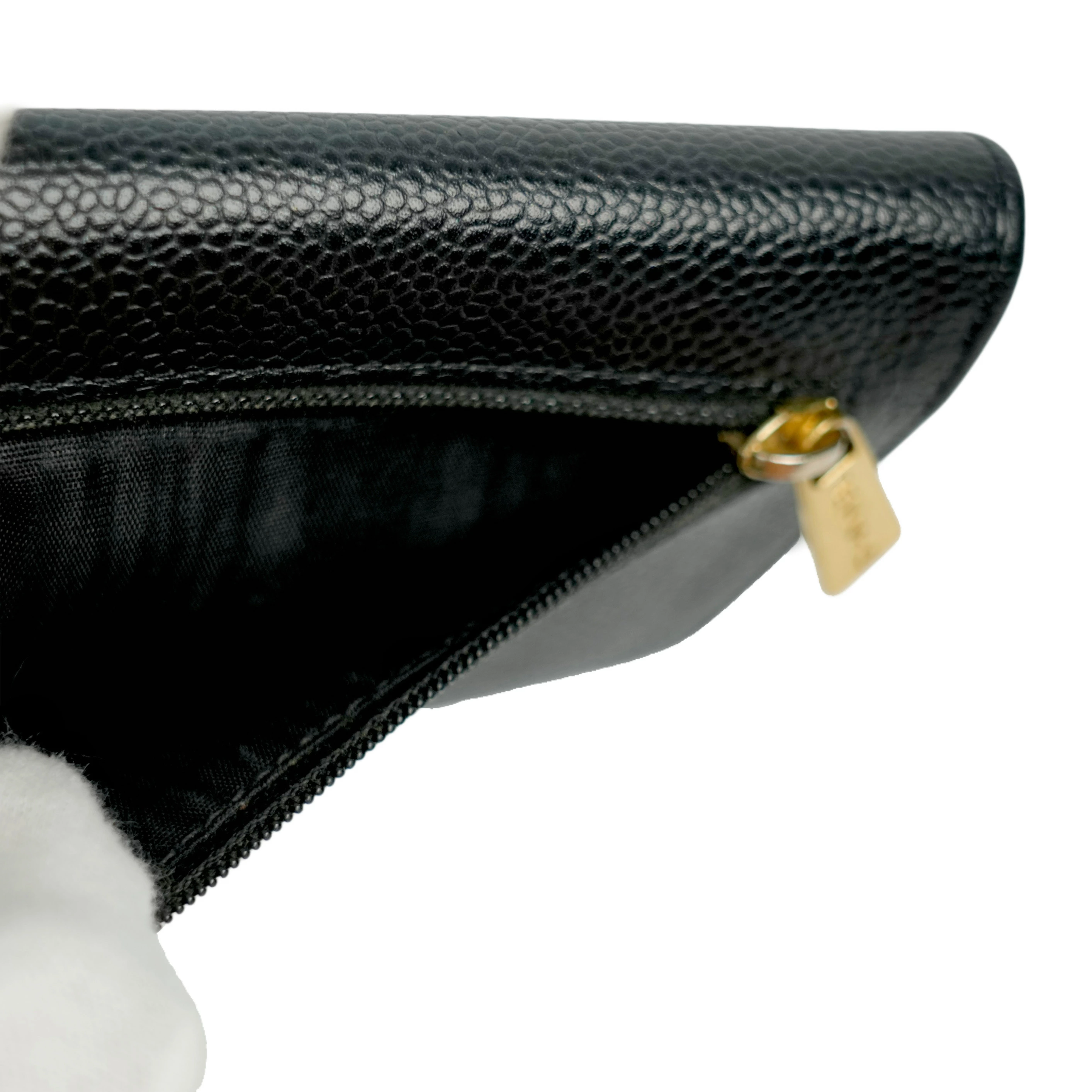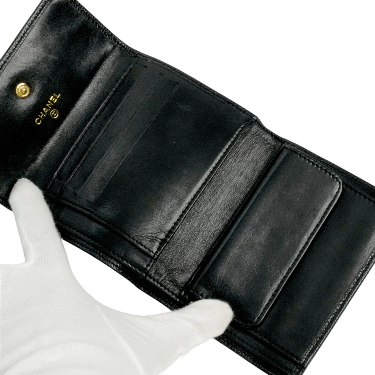 【中古・VINTAGE】 CHANEL シャネル 2003-2004 キャビアスキン 三つ折り財布 ブラック ゴールド レザー ヴィンテージ Caviar Leather Tri-Fold Wallet