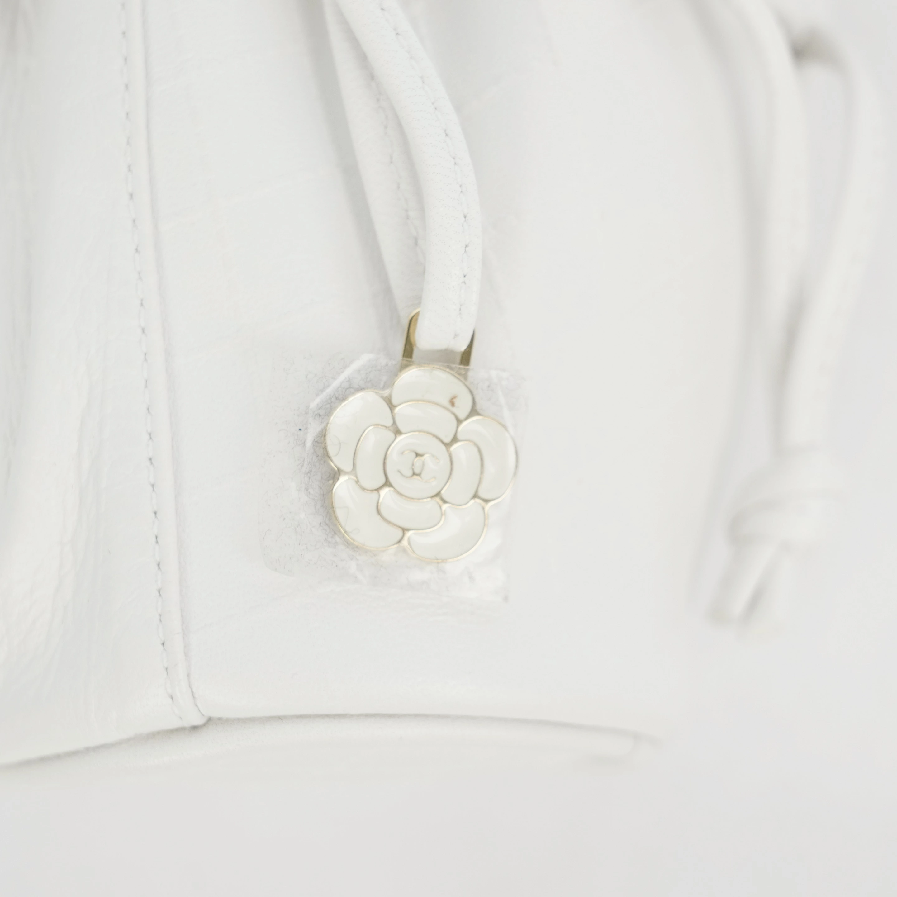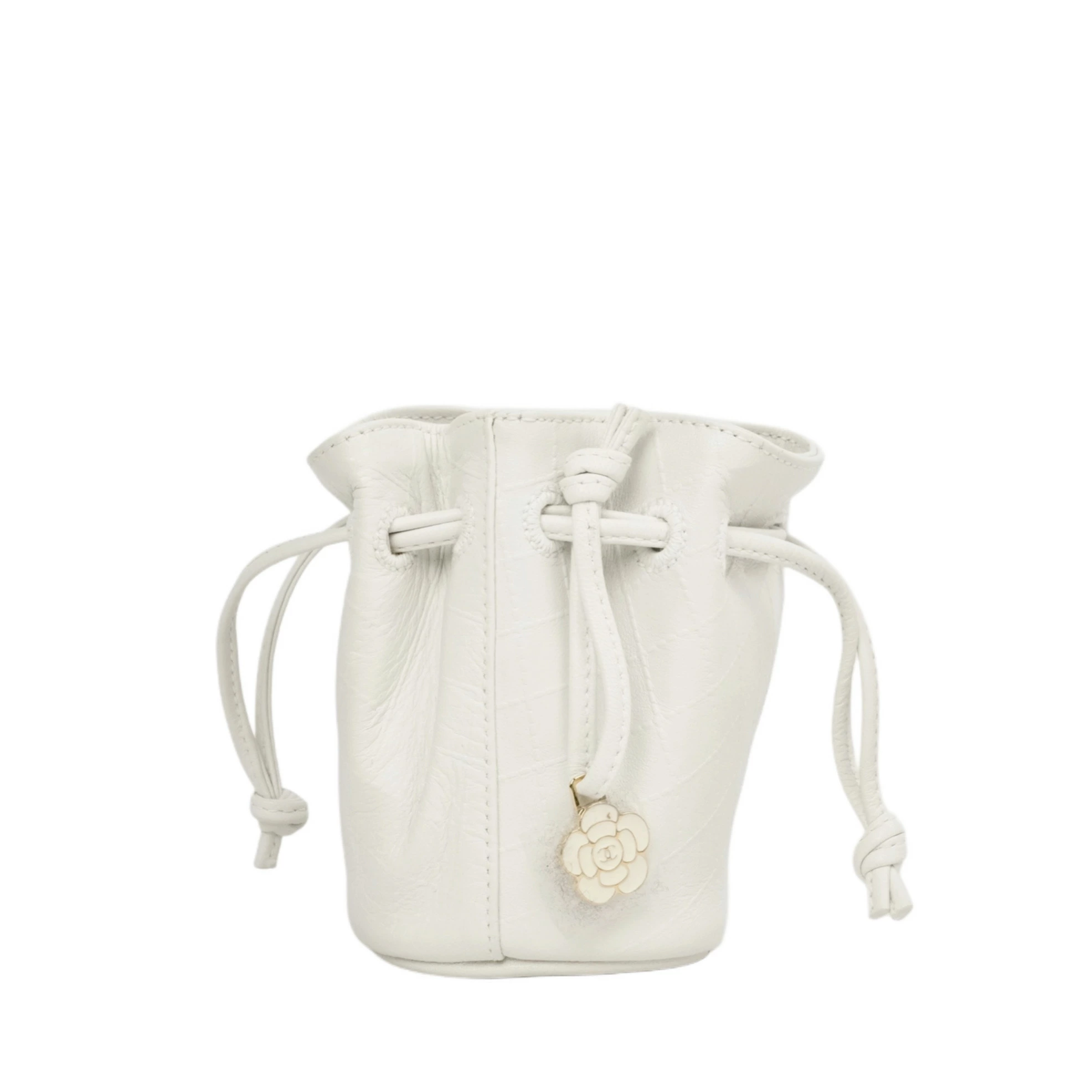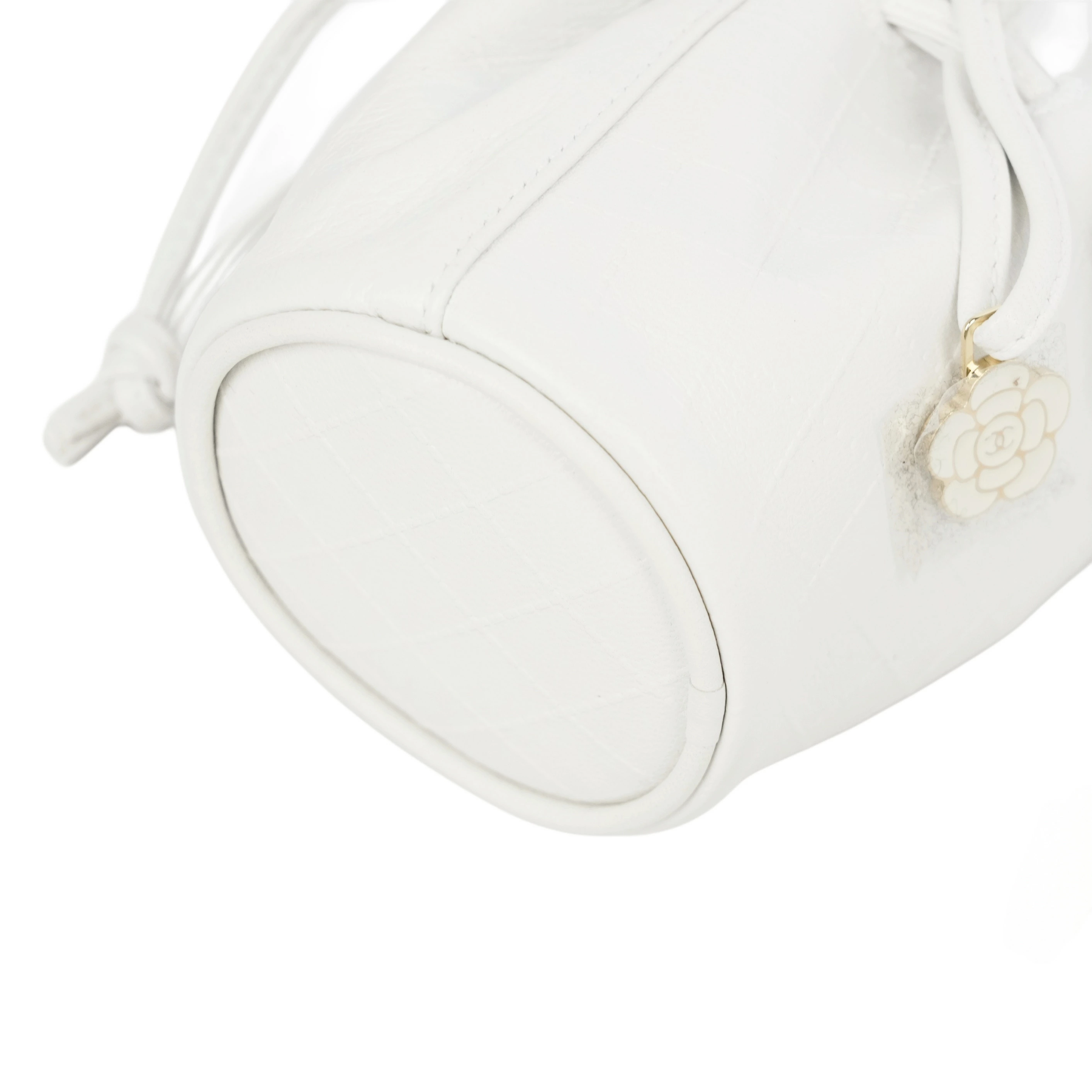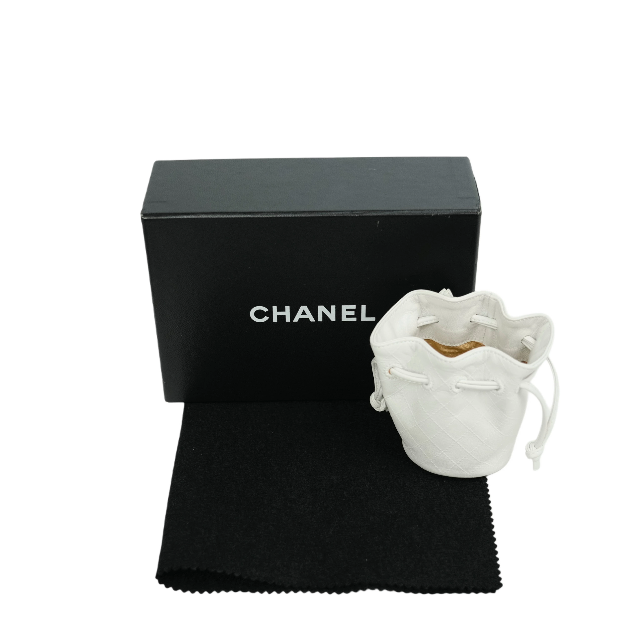 【中古・VINTAGE】 CHANEL シャネル 2004-2005 巾着型 キーケース ホワイト レザー ヴィンテージ 2004-2005 Drawstring Key Case