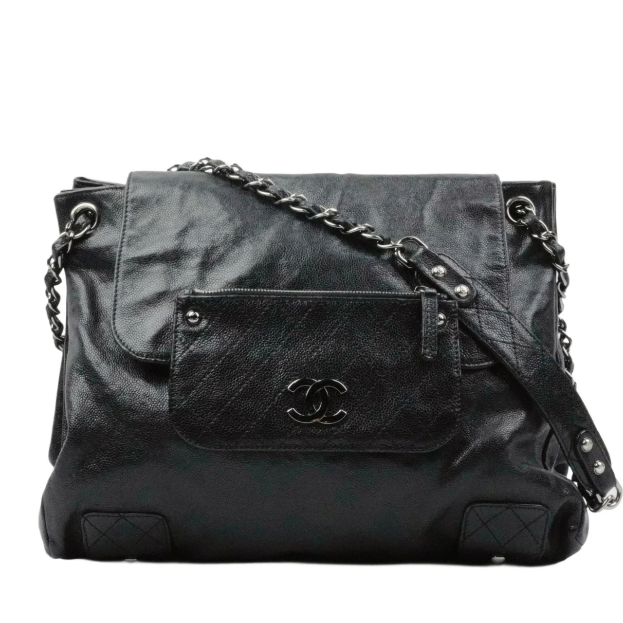 【中古・VINTAGE】 CHANEL シャネル 2006-2008 キャビアスキン トートバッグ/ショルダーバッグ ブラック シルバー レザー ヴィンテージ Caviar Skin Tote Bag / Shoulder Bag