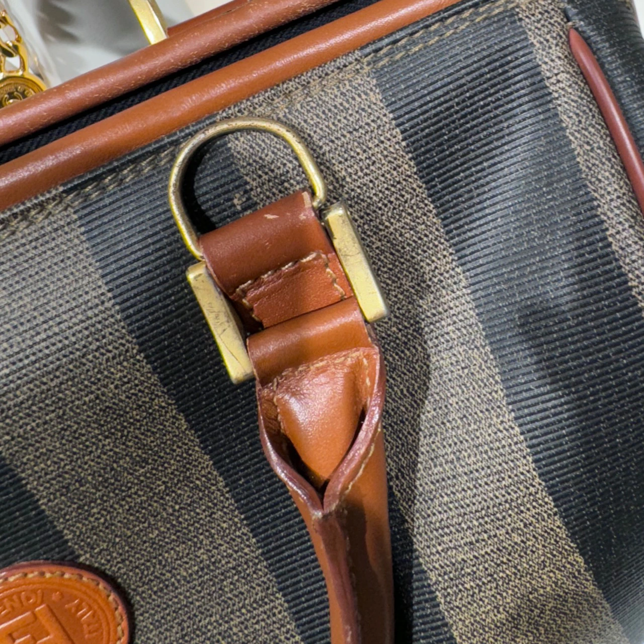 【中古・VINTAGE】 FENDI フェンディ ペカン ハンドバッグ ブラウン カーキ ブラック マルチカラー ヴィンテージ Pebbled Pattern Handbag