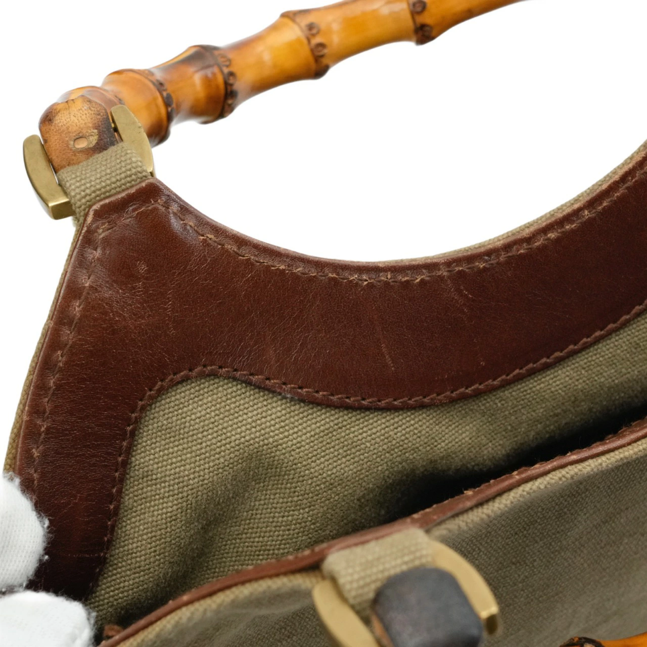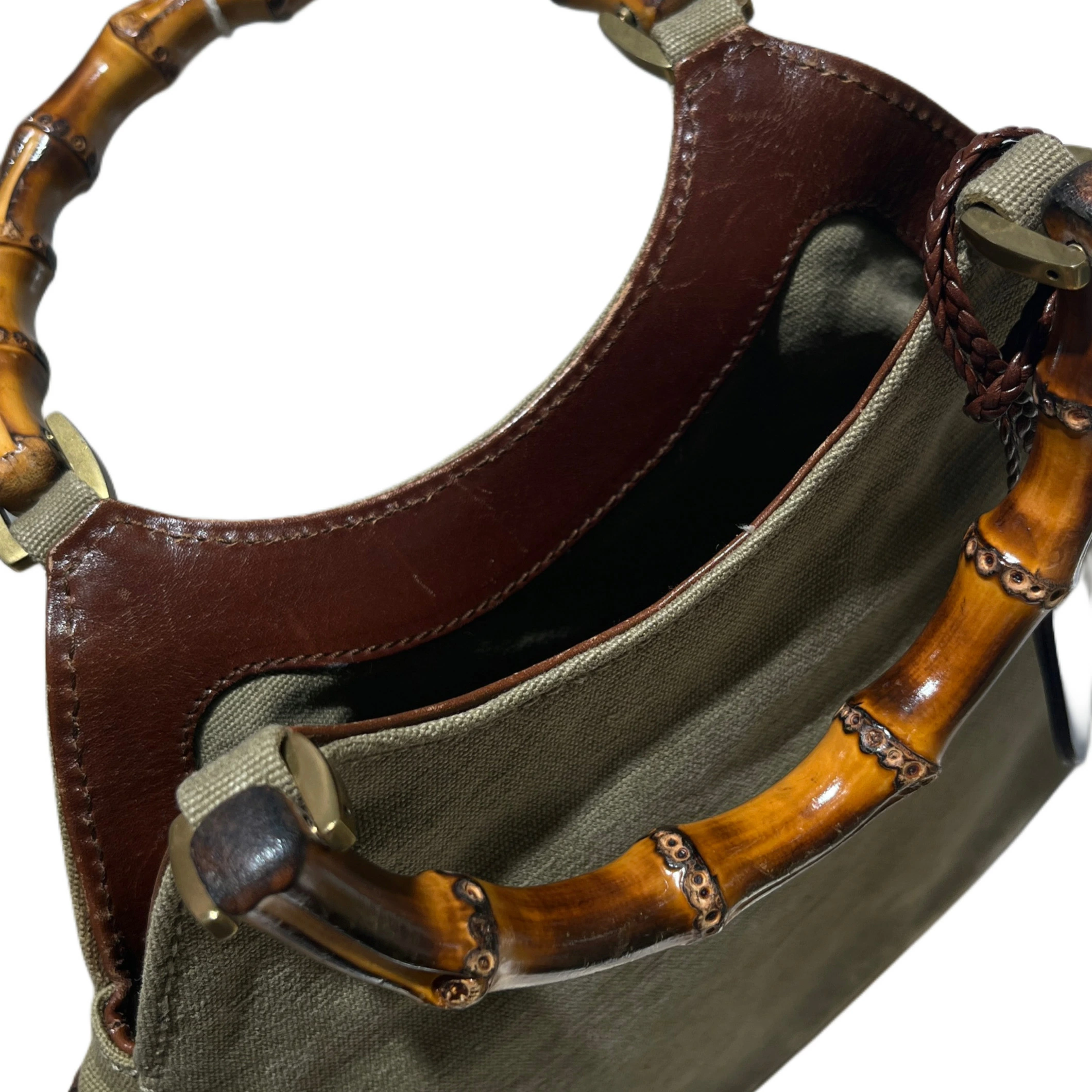 【中古・VINTAGE】 GUCCI グッチ バンブーハンドバッグ カーキ ブラウン ヴィンテージ Bamboo Handbag