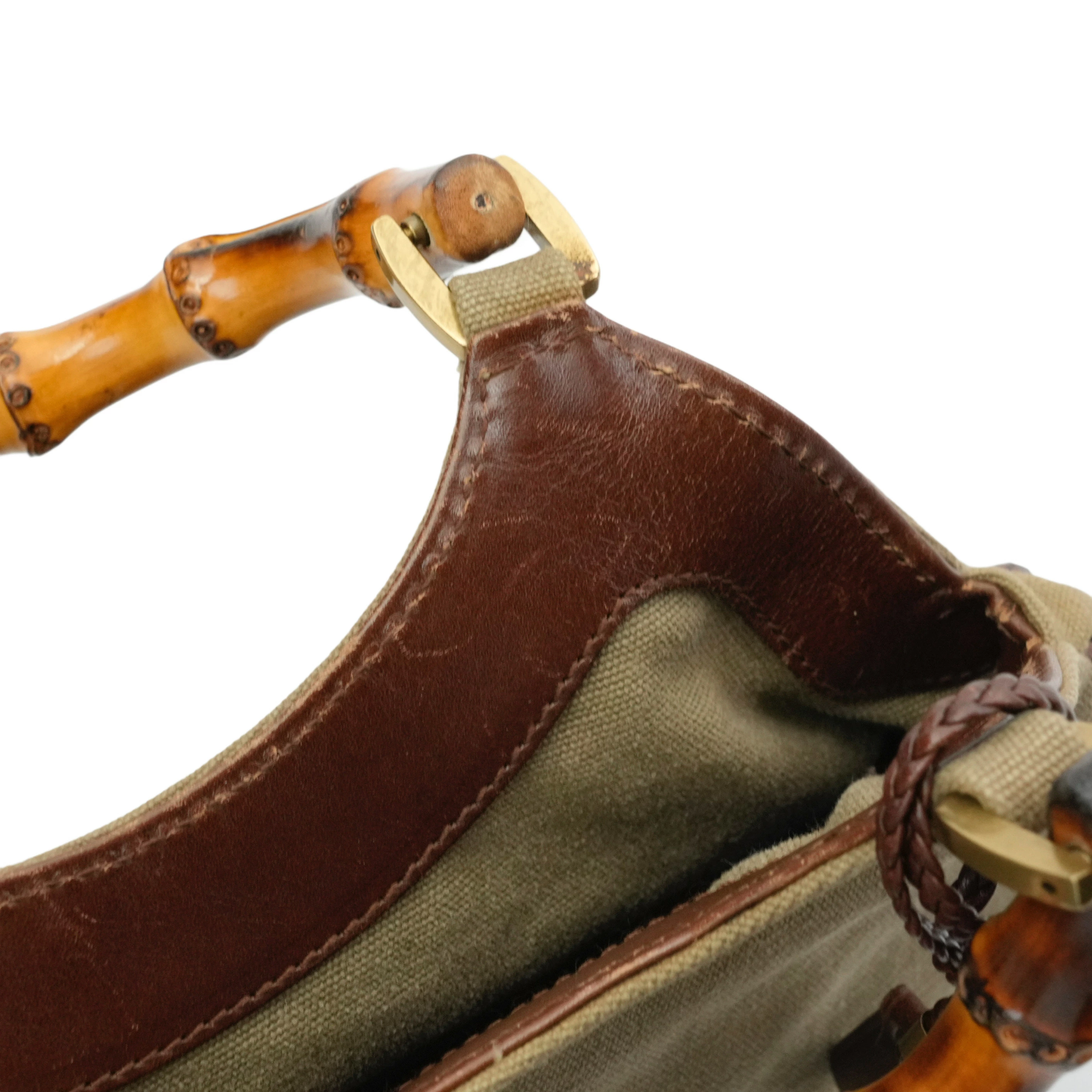 Pre-owned Vintage Gucci Bamboo Handbag in Khaki and Brown
