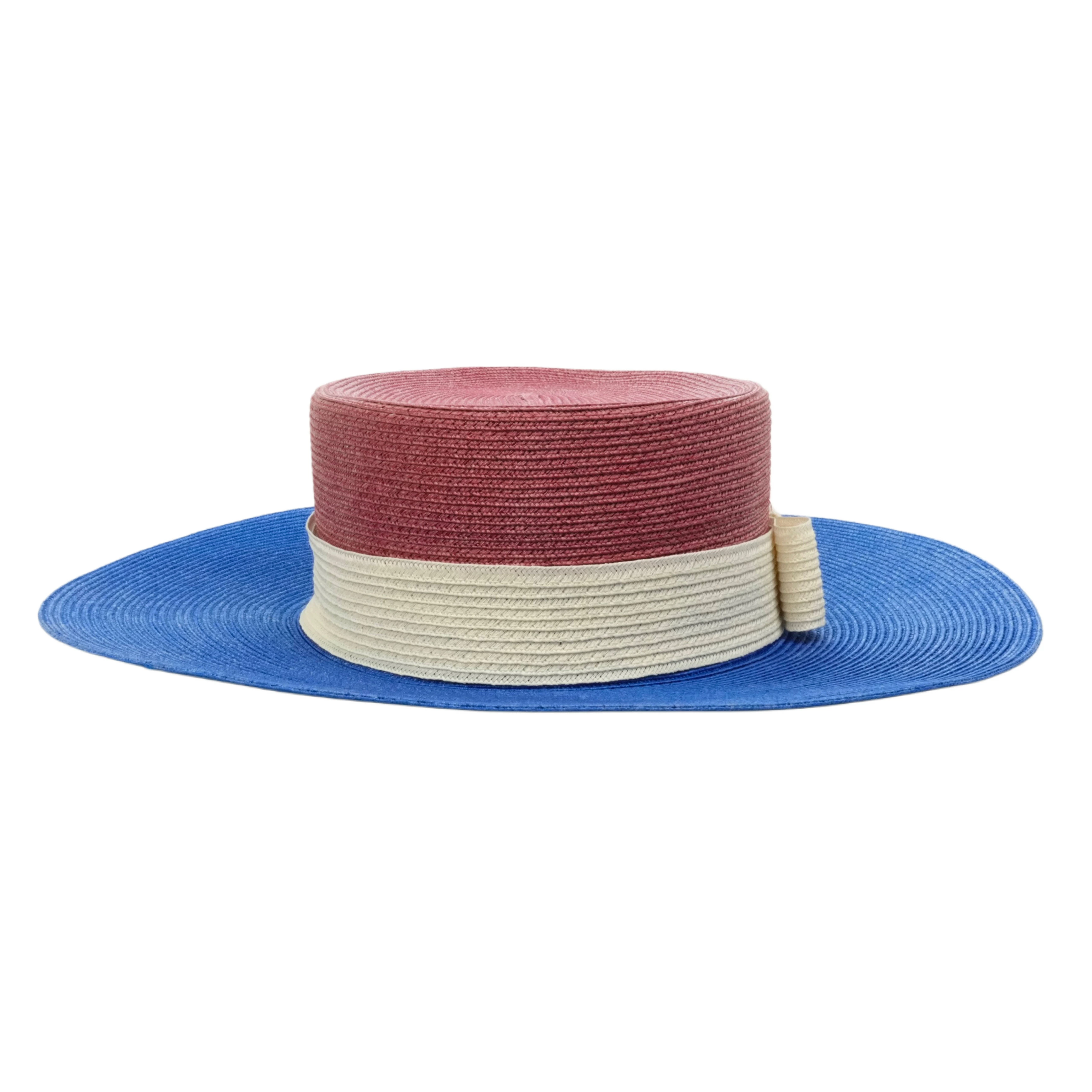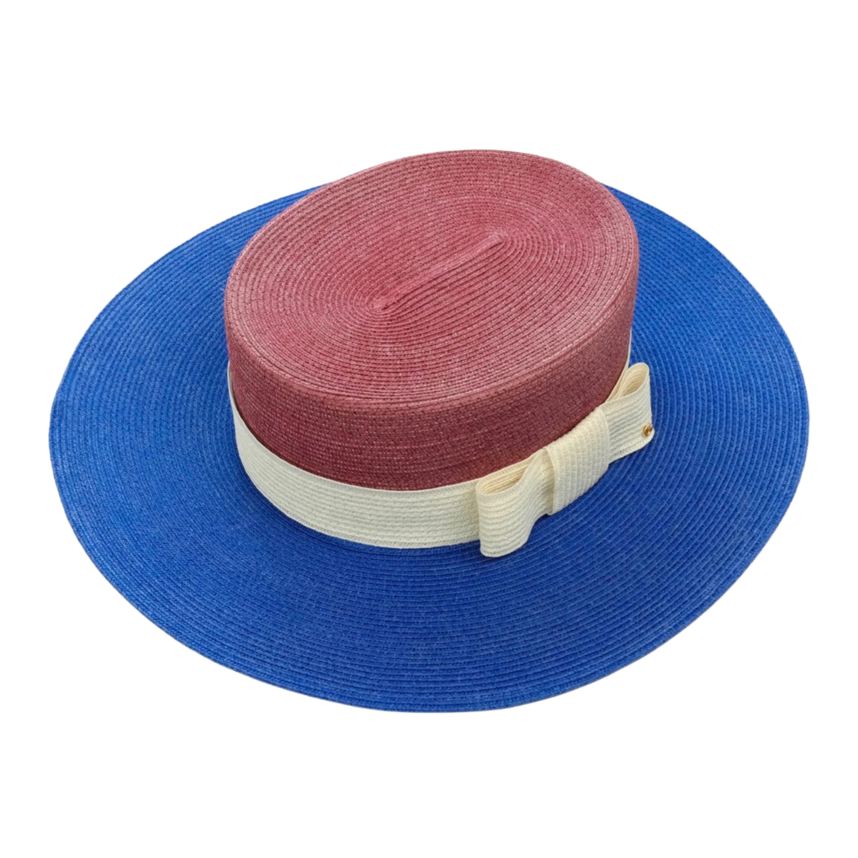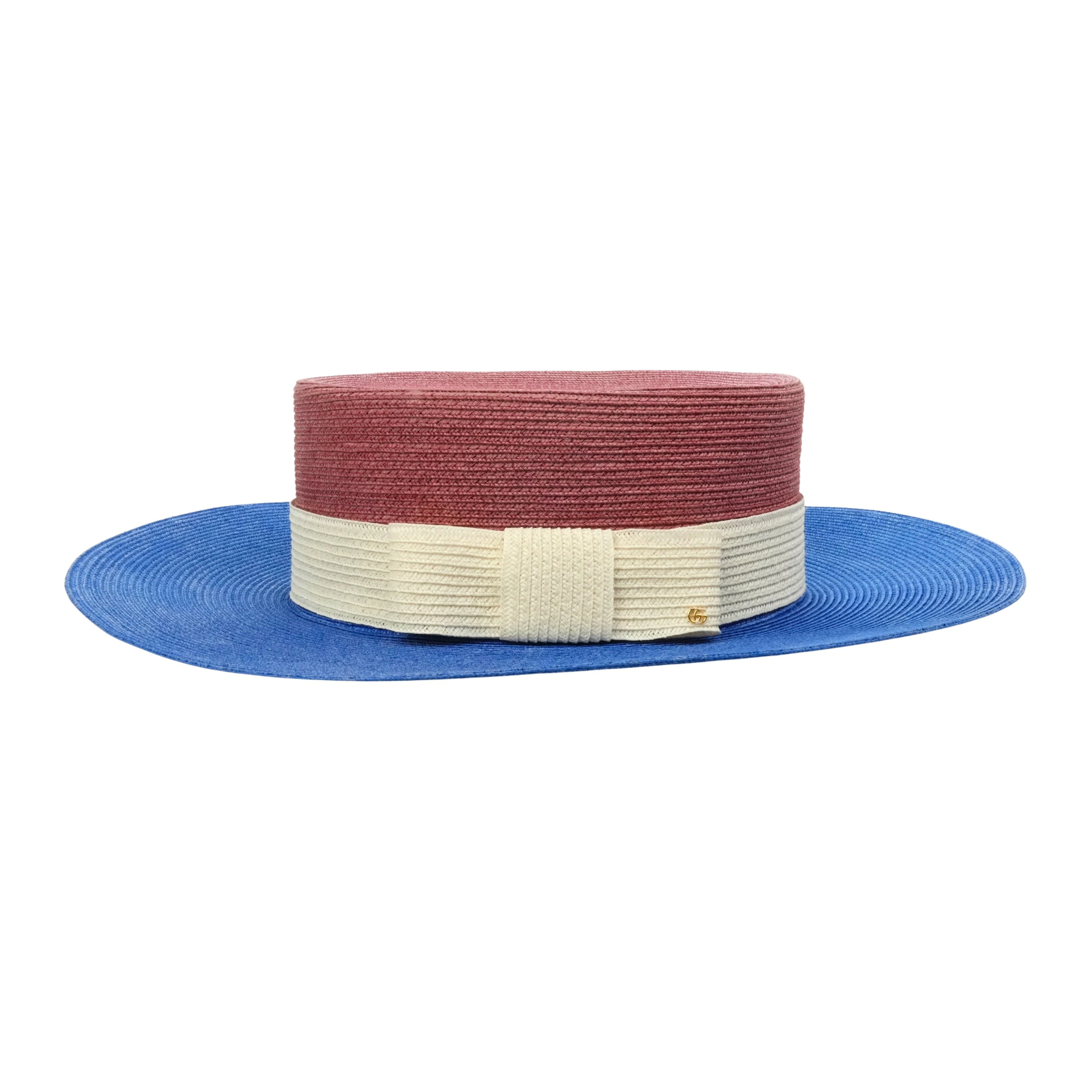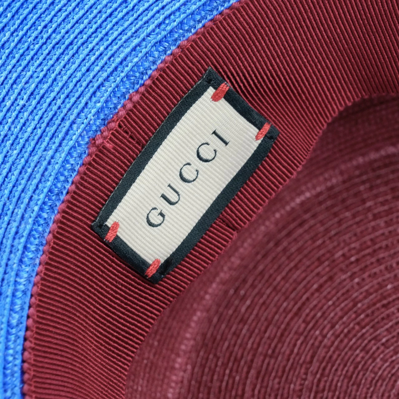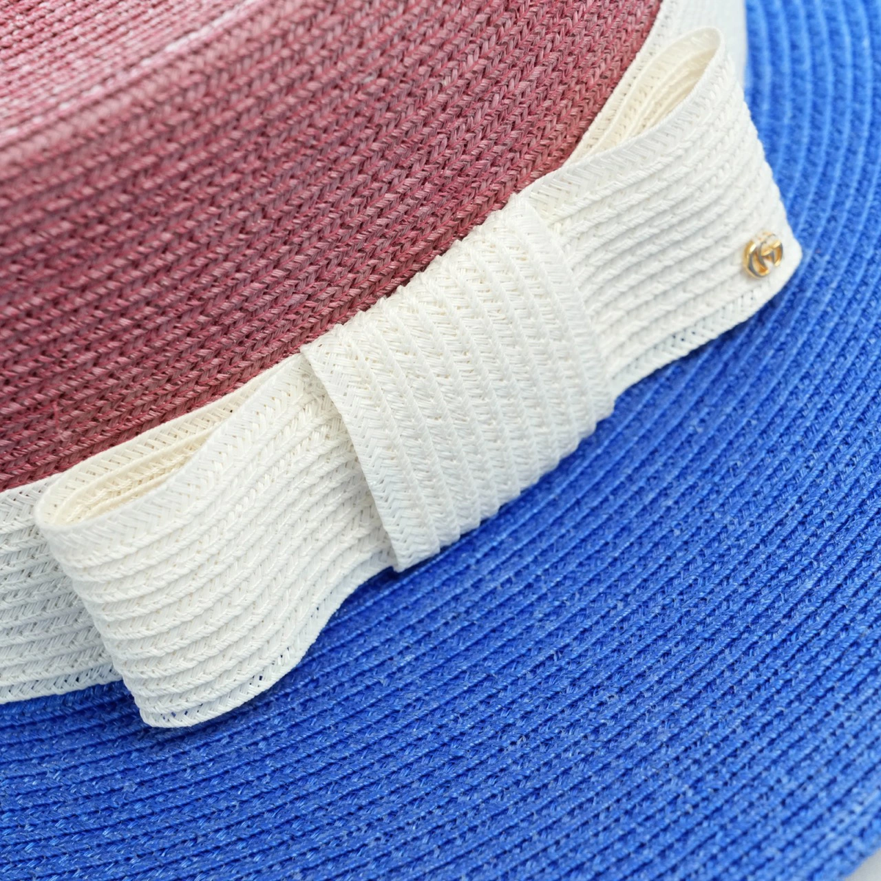 【中古・VINTAGE】 GUCCI グッチ 帽子 ハット リボン ストロー レッド ブルー ホワイト トリコロールカラー ヴィンテージ Hat