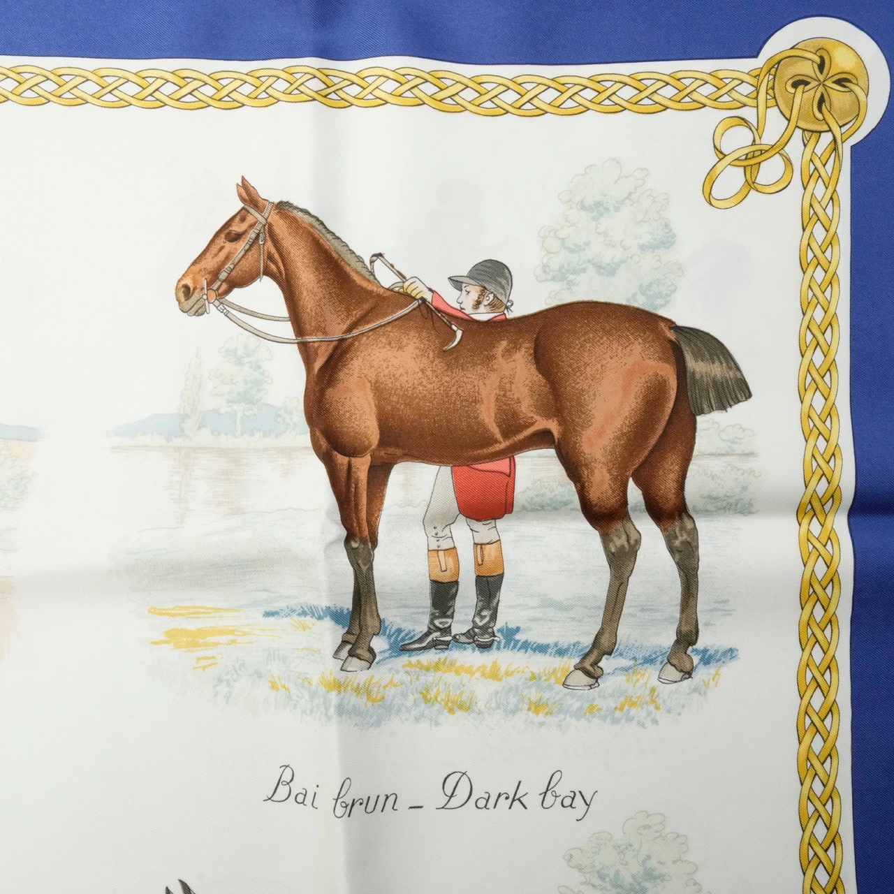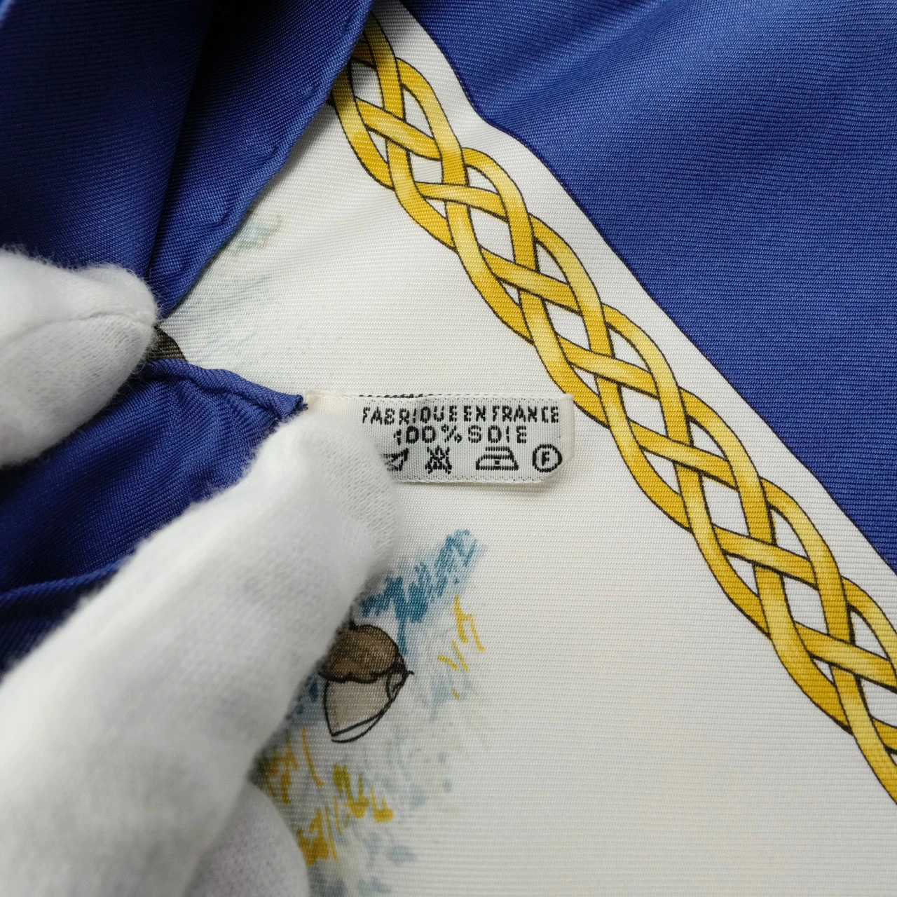 【中古・VINTAGE】 HERMES エルメス シルク スカーフ カレ90 ブルー ホワイト シルク ヴィンテージ Silk Scarf Carre 90