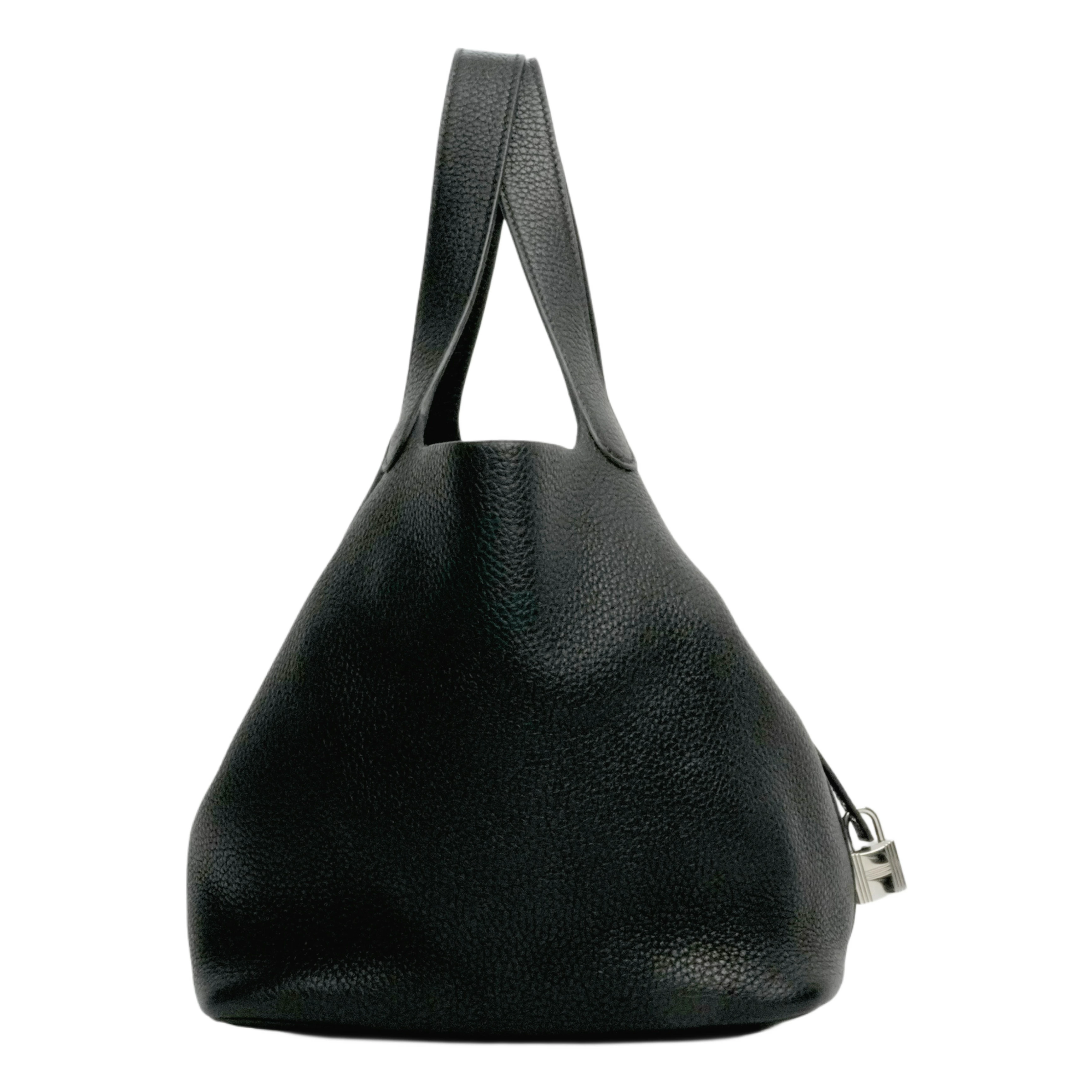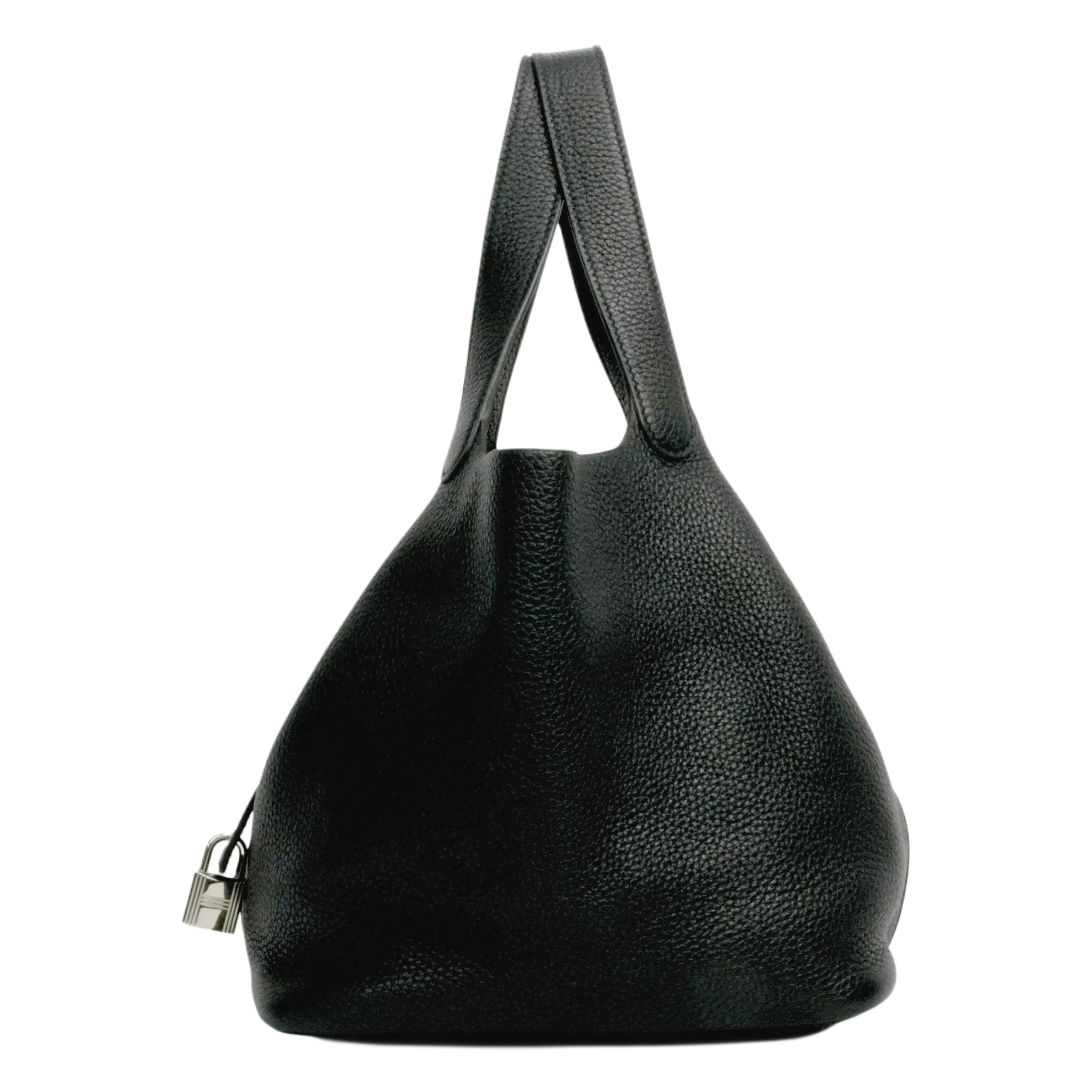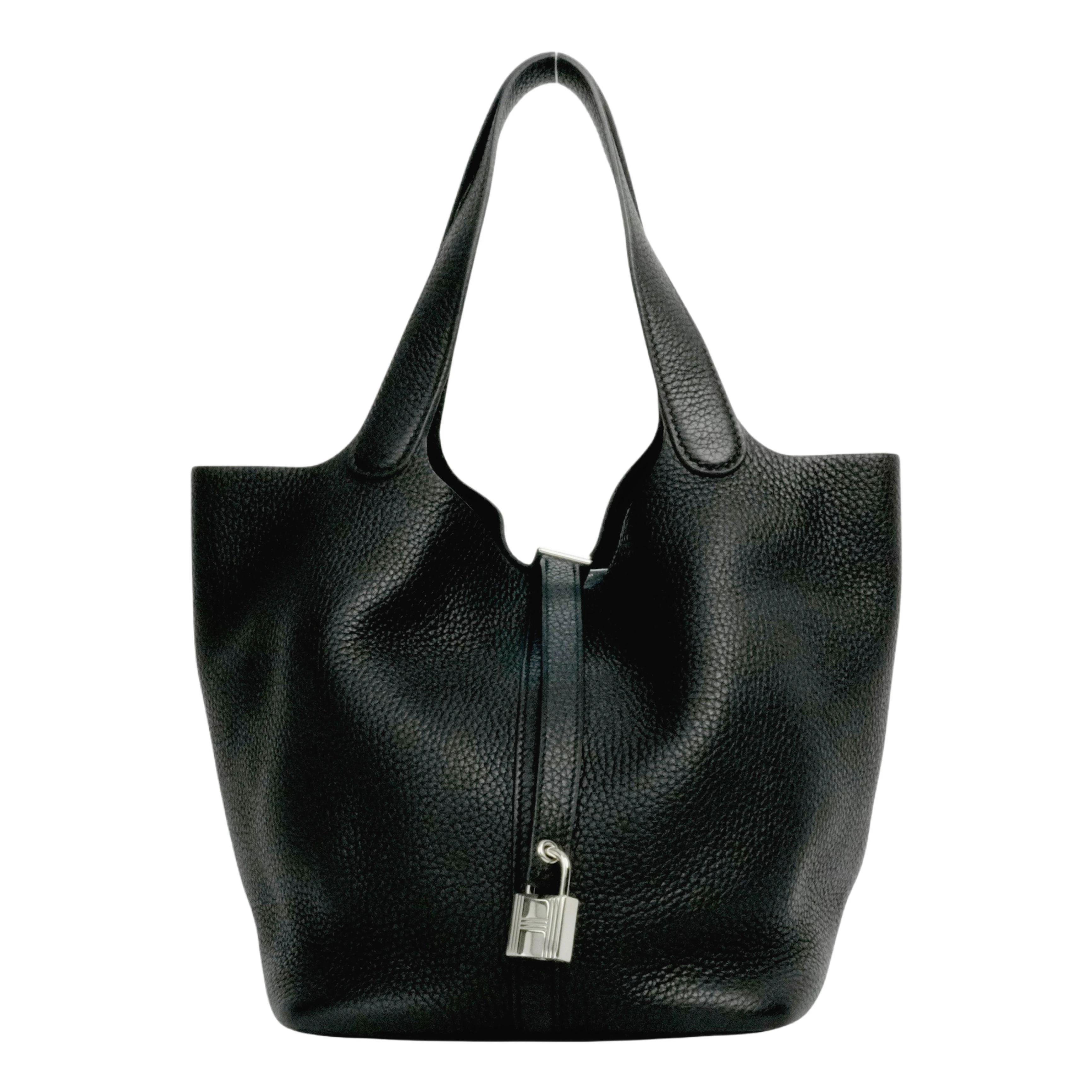 【中古・VINTAGE】 HERMES エルメス ピコタンロックMM ハンドバッグ ブラック シルバー レザー ヴィンテージ Picotin Lock MM Handbag