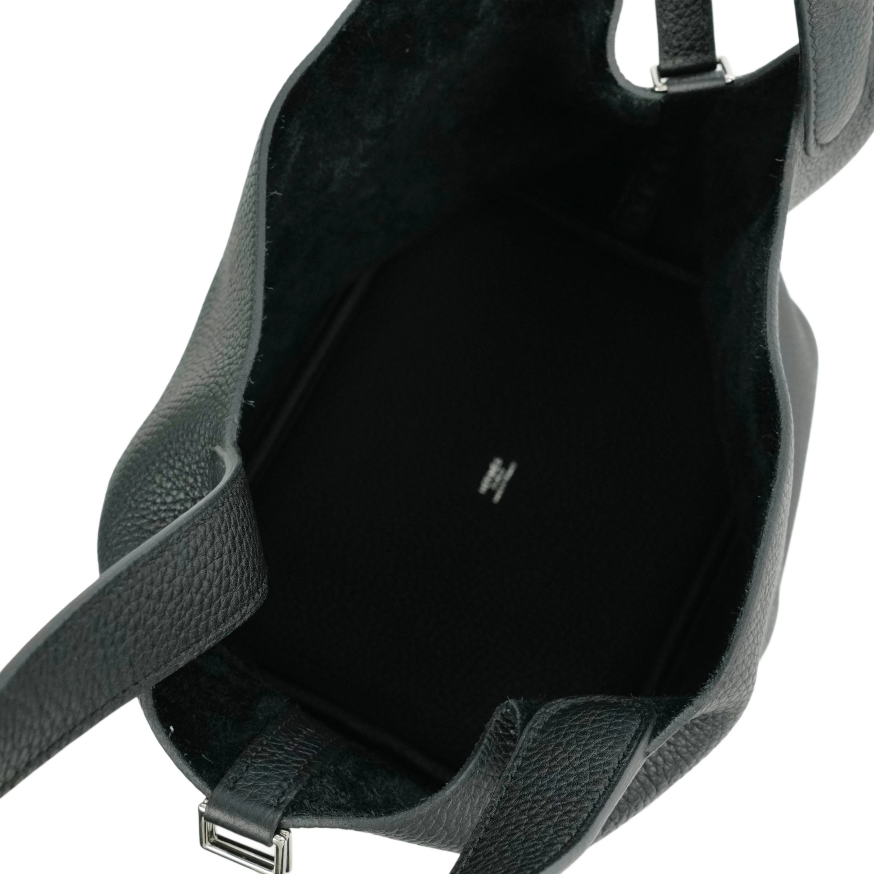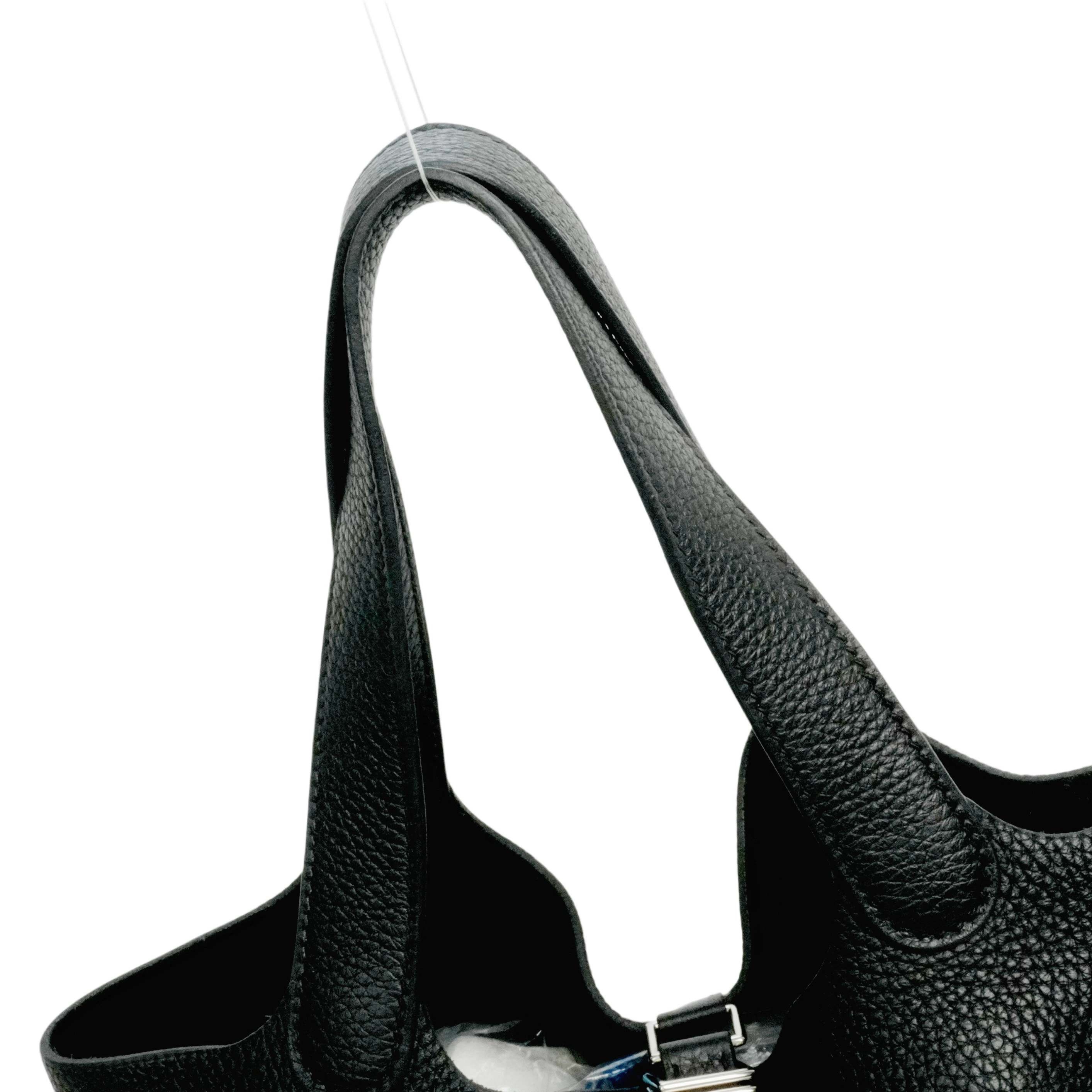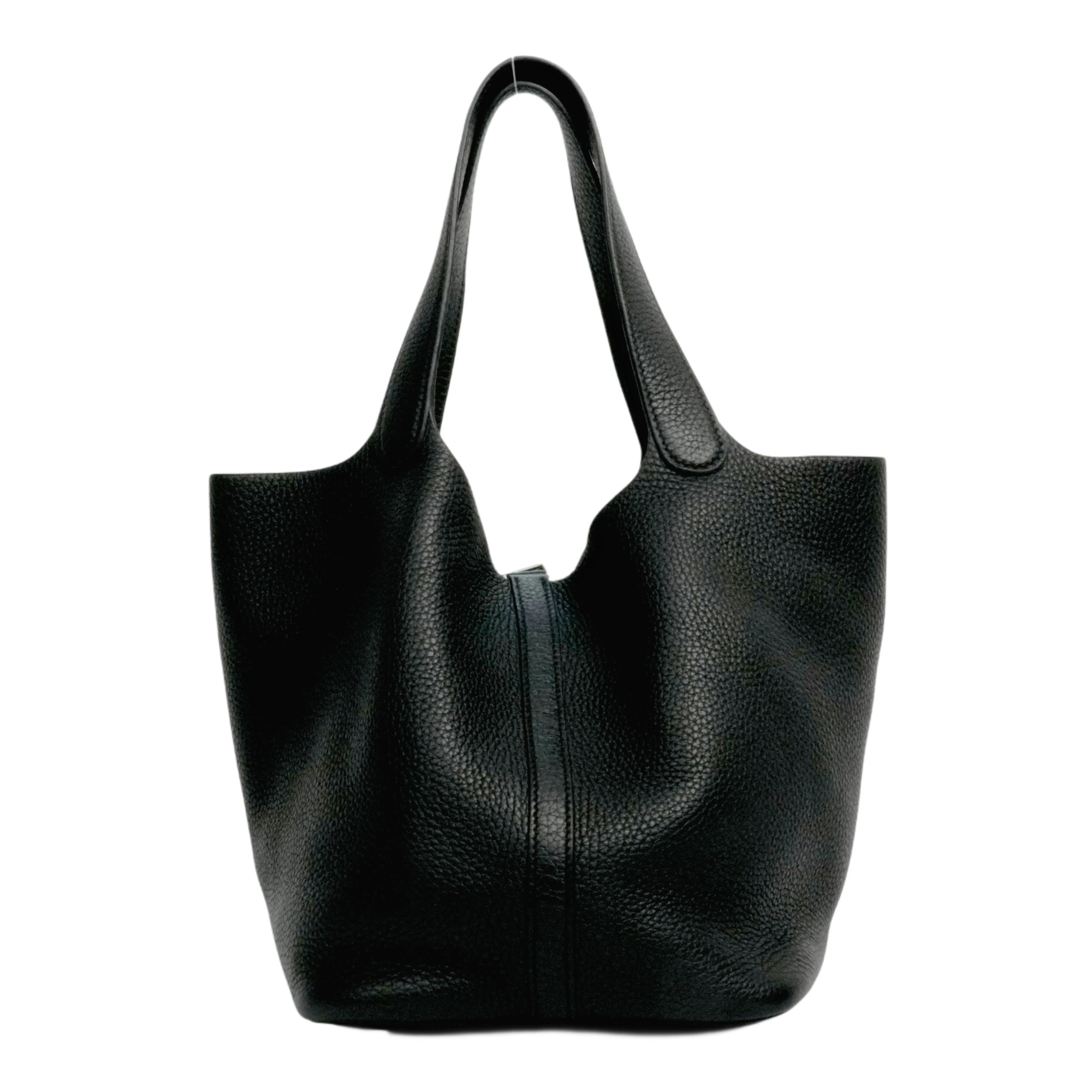 【中古・VINTAGE】 HERMES エルメス ピコタンロックMM ハンドバッグ ブラック シルバー レザー ヴィンテージ Picotin Lock MM Handbag