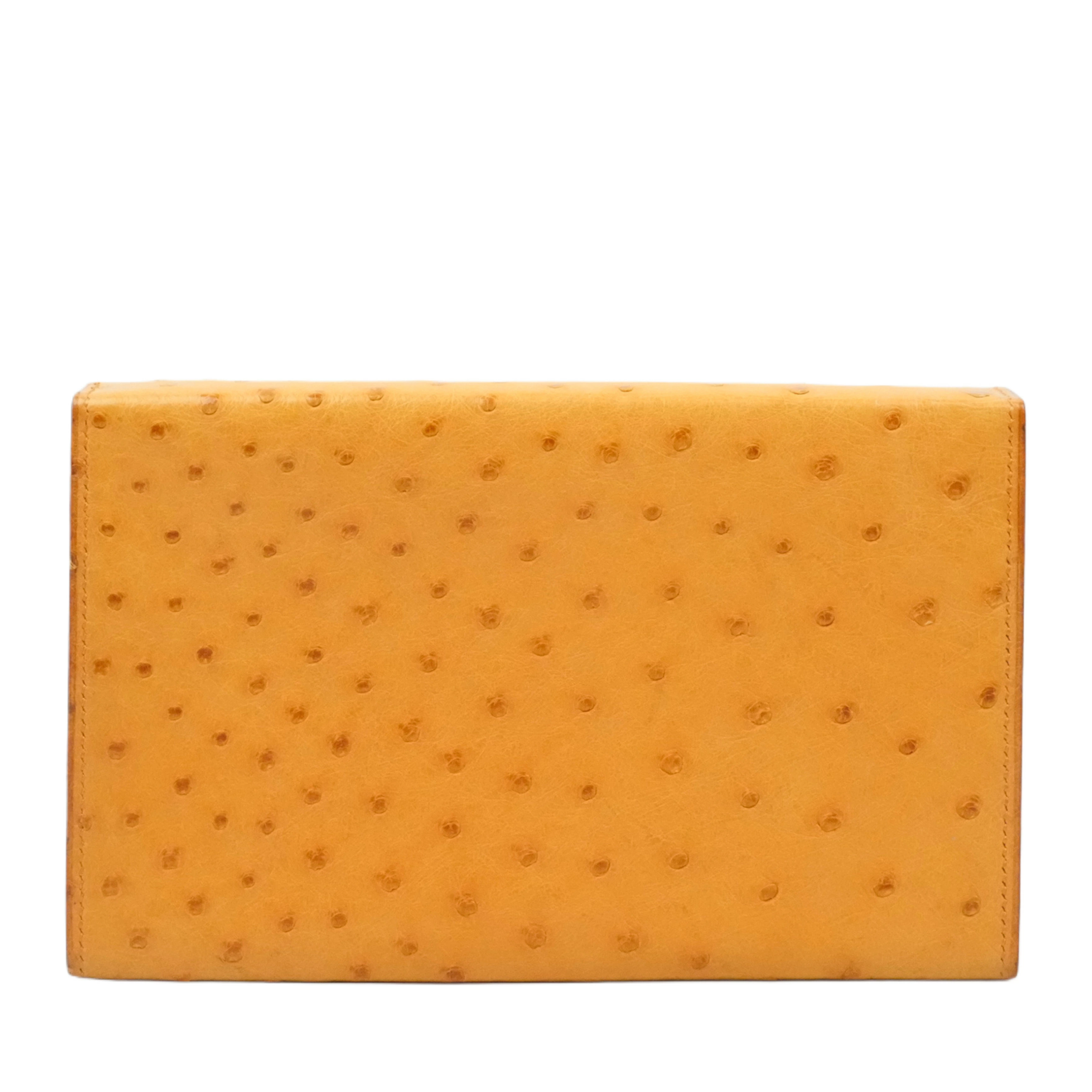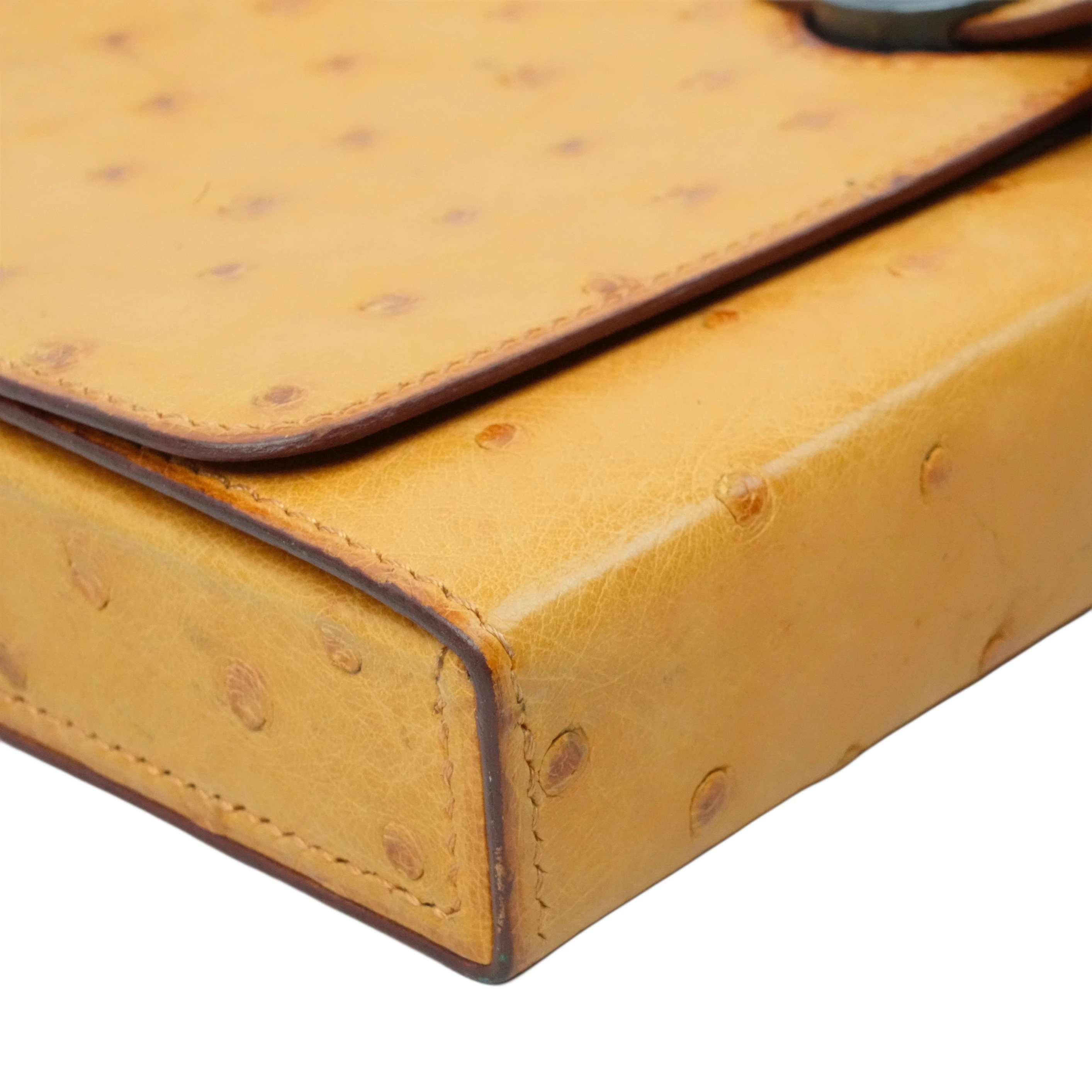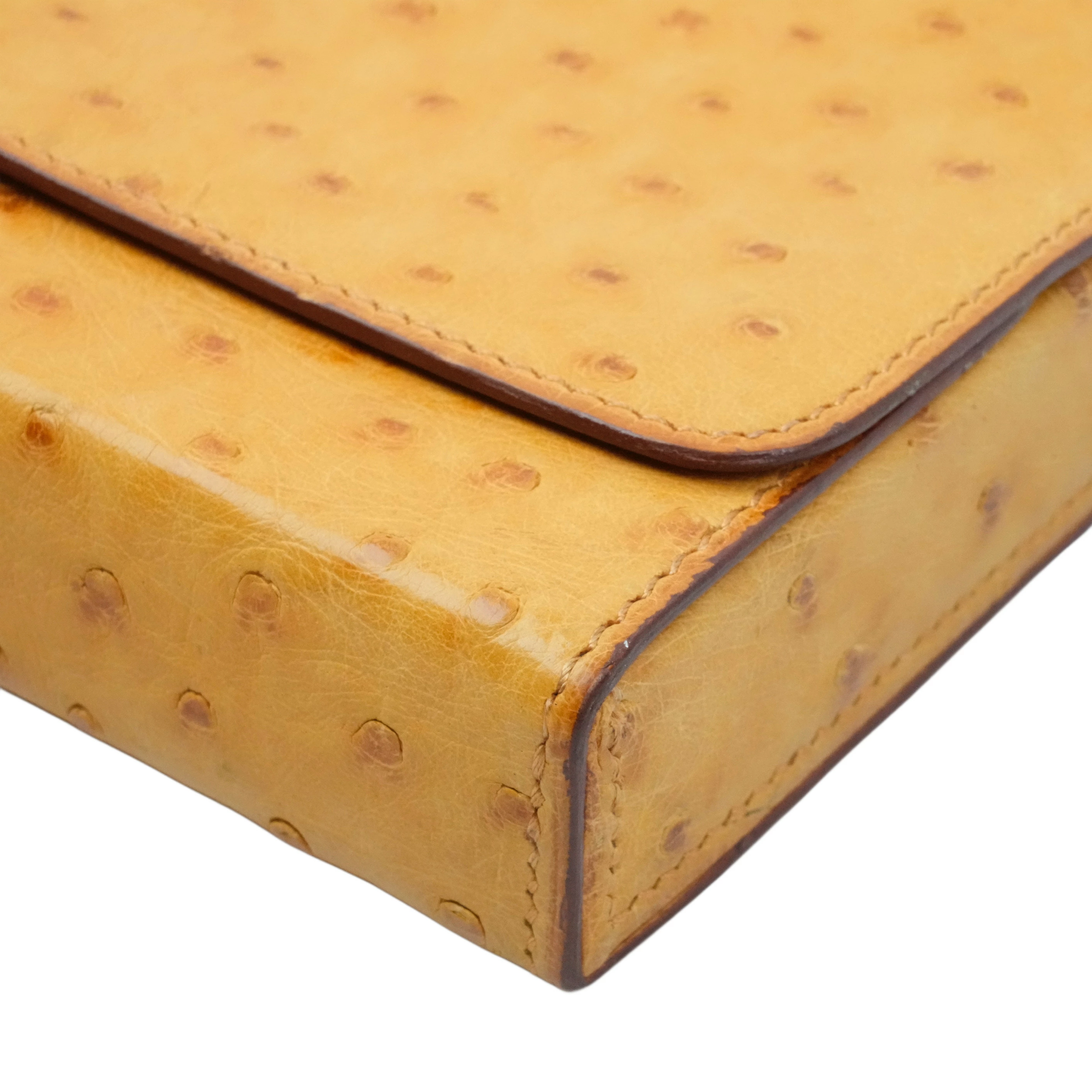 【中古・VINTAGE】 HERMES エルメス ボックス型クラッチバッグ ハンドバッグ イエロー オーストリッチ ヴィンテージ Box-shaped Clutch Bag/Handbag