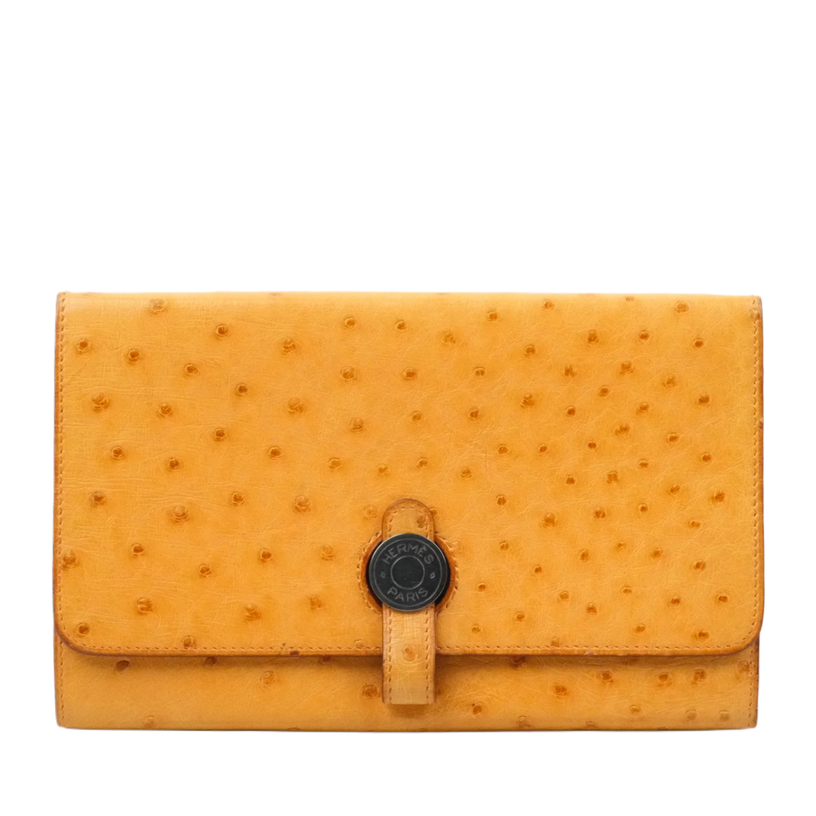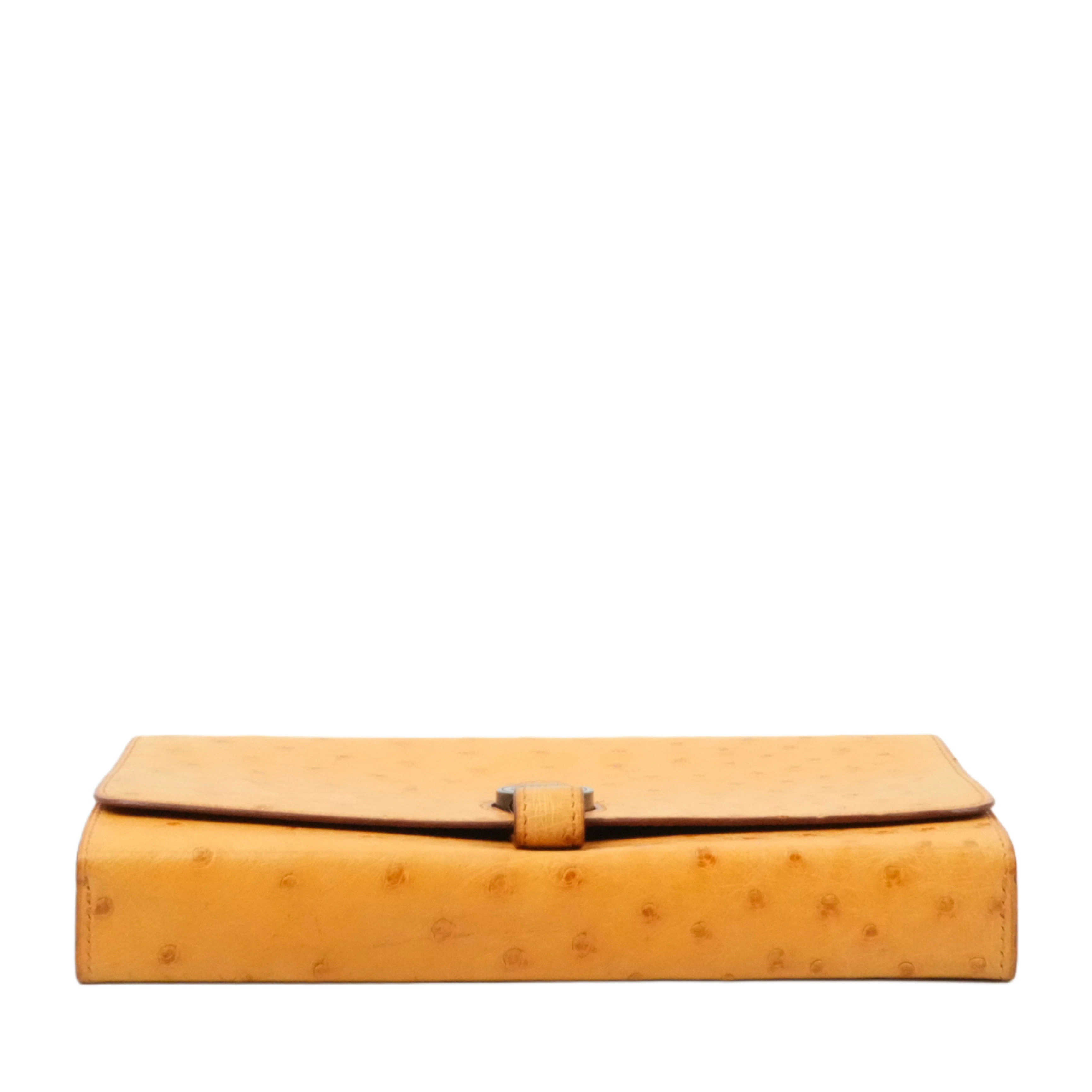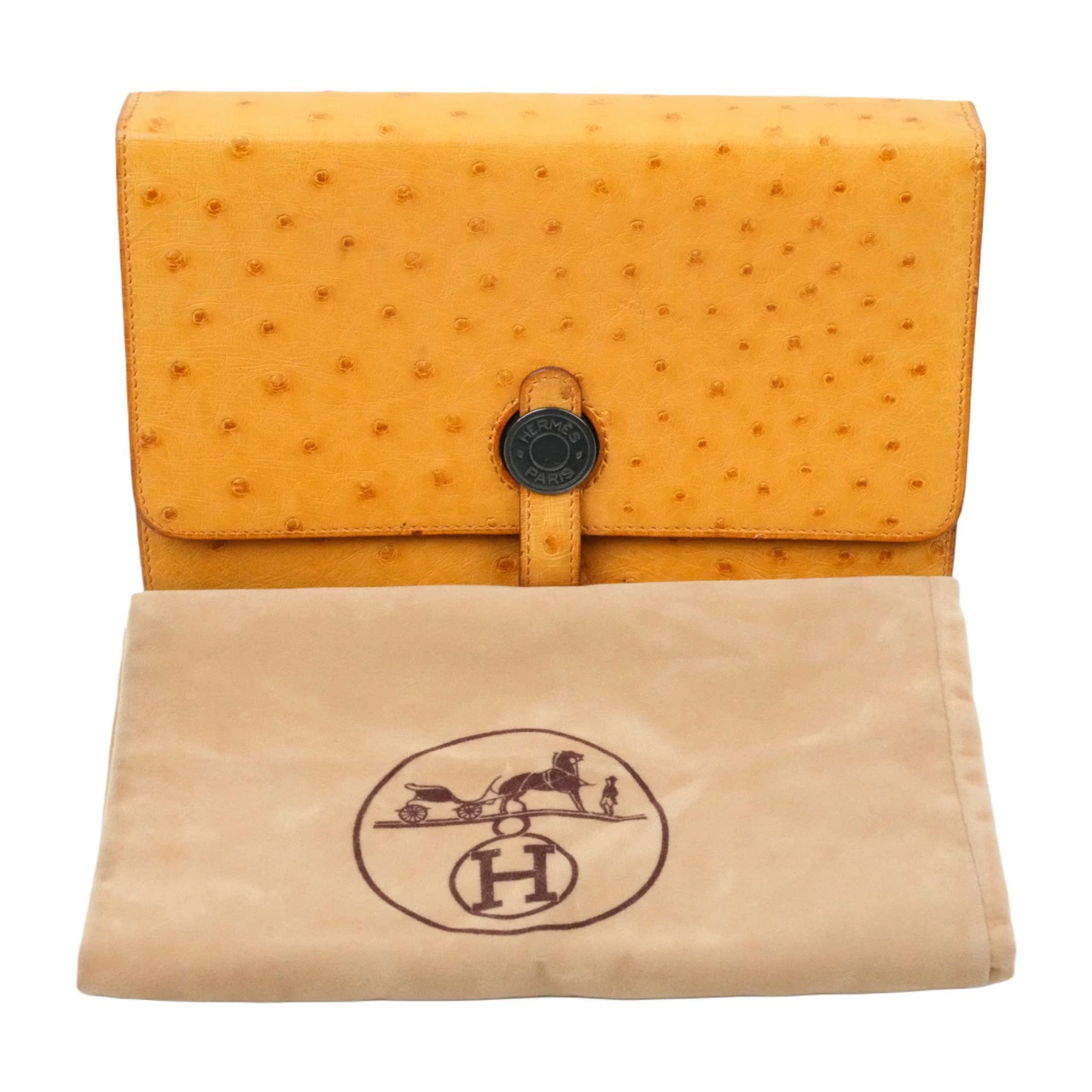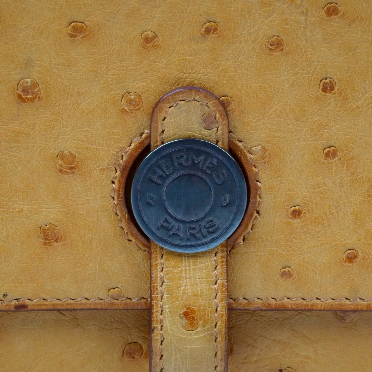 【中古・VINTAGE】 HERMES エルメス ボックス型クラッチバッグ ハンドバッグ イエロー オーストリッチ ヴィンテージ Box-shaped Clutch Bag/Handbag