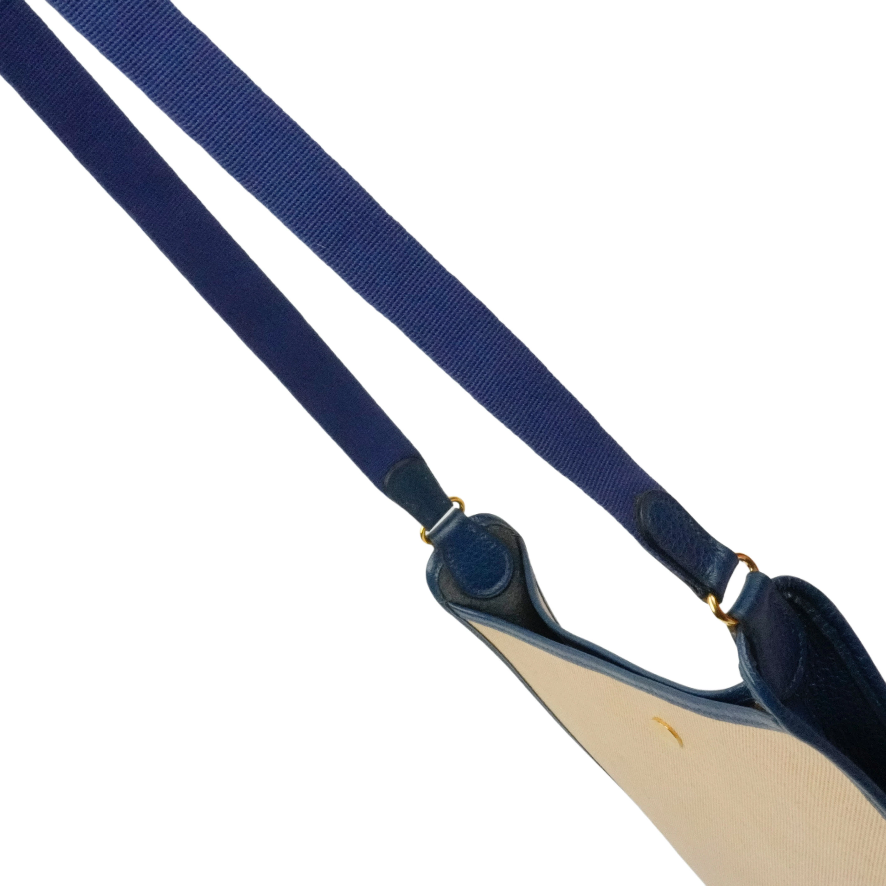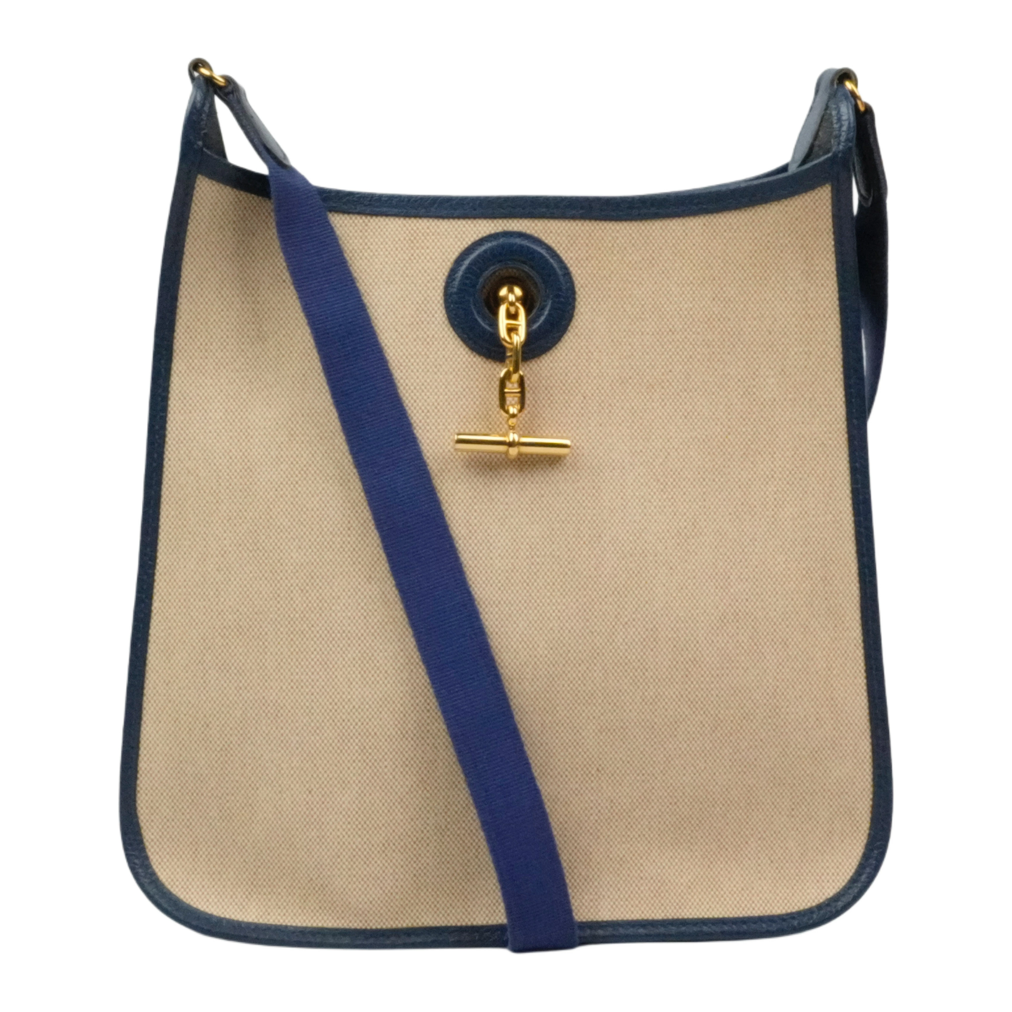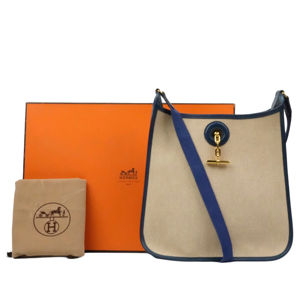 【中古・VINTAGE】 HERMES エルメス ヴェスパPM キャンバス ショルダーバッグ ブルー ベージュ ゴールド ヴィンテージ Vespa PM Canvas Shoulder Bag