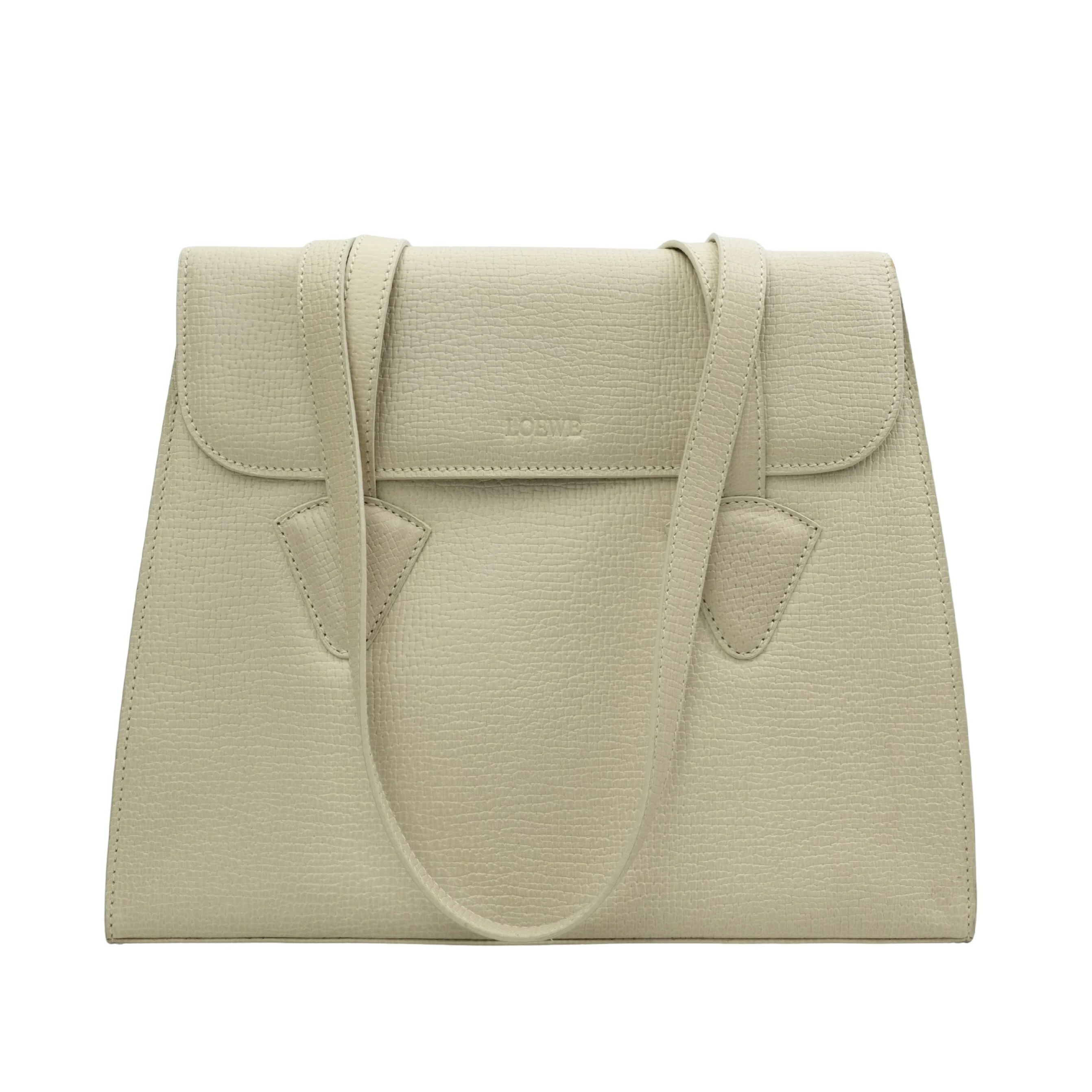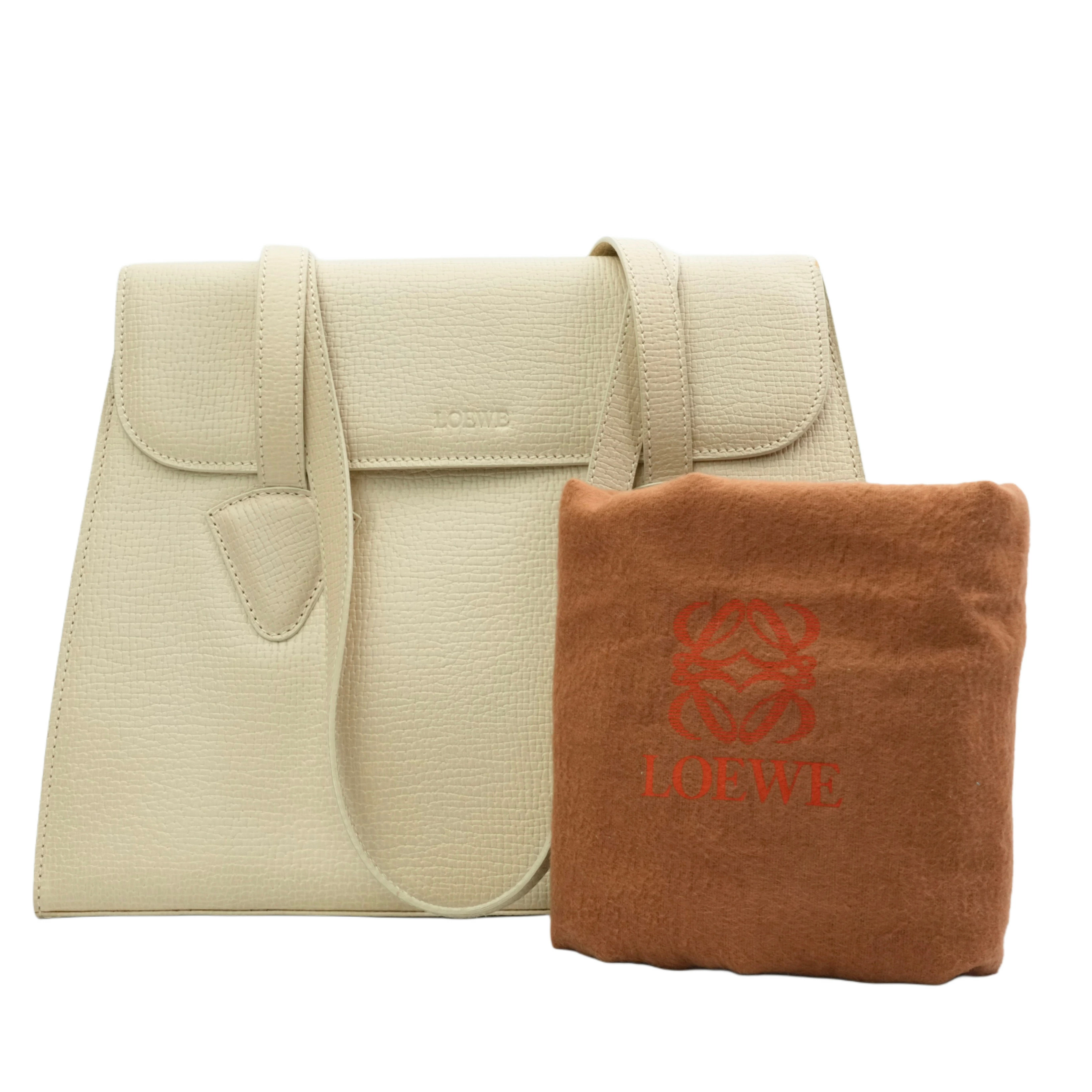 【中古・VINTAGE】 LOEWE ロエベ ショルダーバッグ ロゴ型押し レザー ベージュ ヴィンテージ Embossed Logo Shoulder Bag